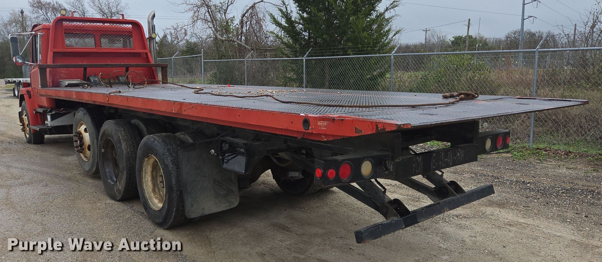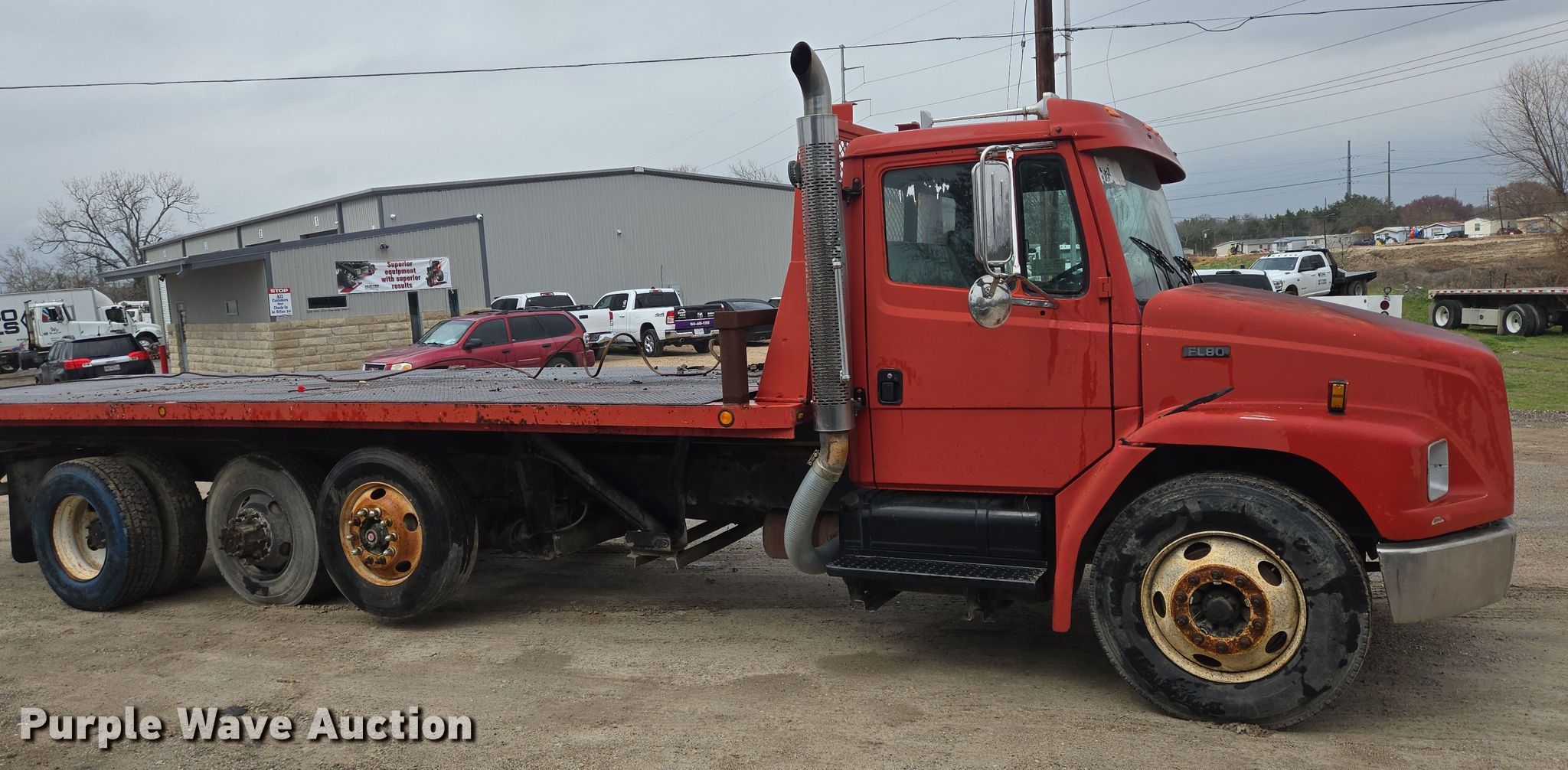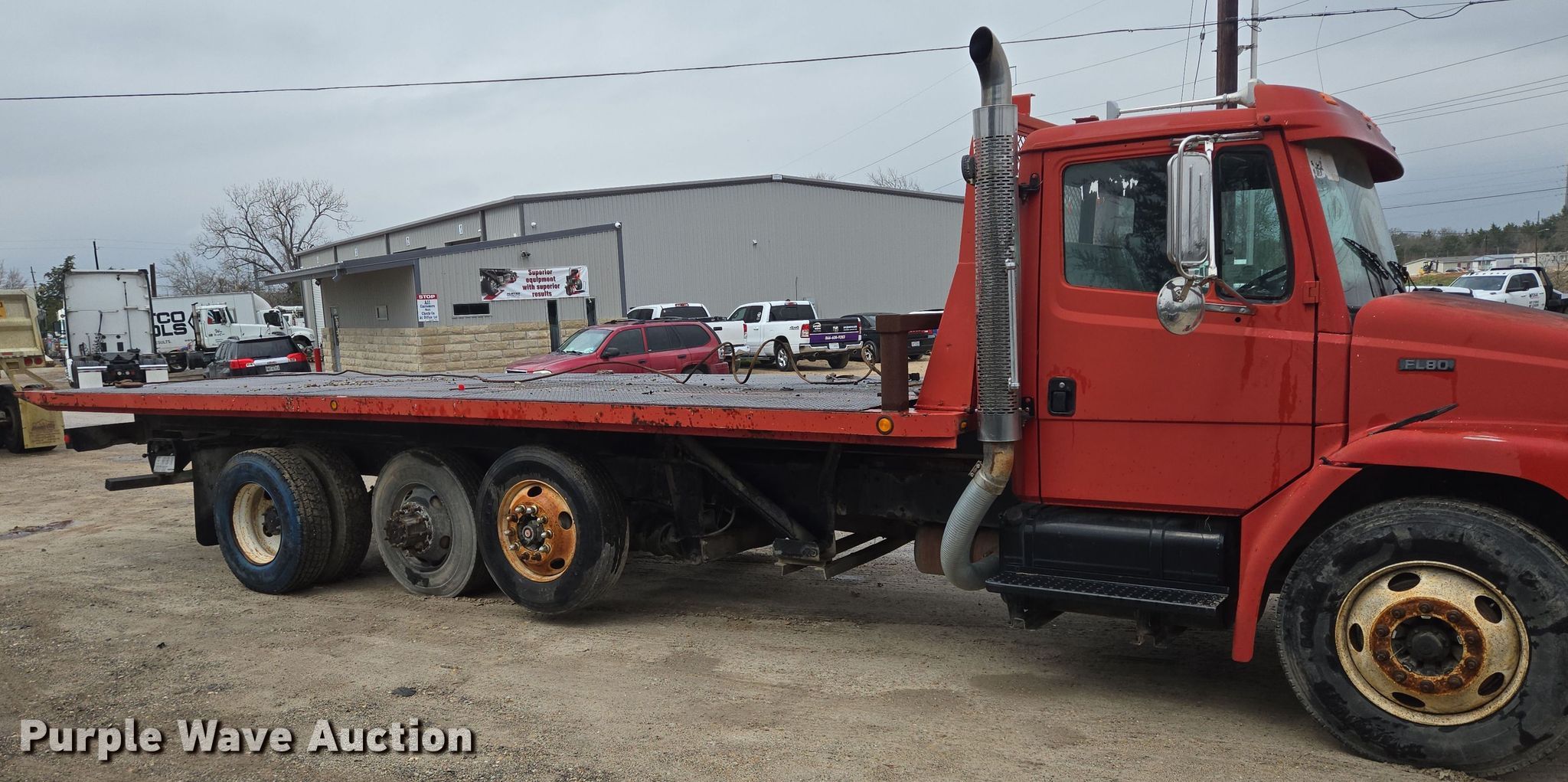 2001 Freightliner FL80 rollback truck. Miles: 649,900 on odometer, VIN: 1FVMBXAK11HJ62425. Engine Caterpillar 3126, Displacement: 7.2L, Cylinders: 6, Fuel type: Diesel, HP: 300. Transmission Eaton Fuller RTO-11908LL, Manual. Chassis Axles: Triple, Pusher axle, Suspension: Air, Brakes: Air, PTO, GVWR: 64,768 lbs, Wheelbase: 252". Interior AC, Heat, Heated mirrors, Cruise control. Features Rollback bed 28' L x 95" W, Ram: Dual, Winch. Tires Front: 295/75R22.5, Rear: 11R22.5, Lift axle: 295/75R22.5. Notes Dead battery. Texas title. Title distribution may be delayed up to 30 days from verification of funds. Cypress Four Property Ventures LLC. Bryan, TX 77807