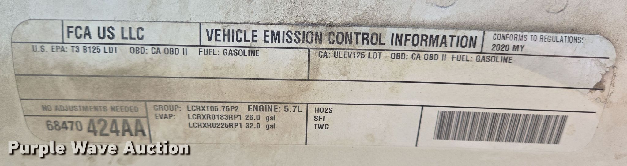 This 2020 Dodge Ram 1500 Crew Cab pickup truck will sell to the highest bidder regardless of price.