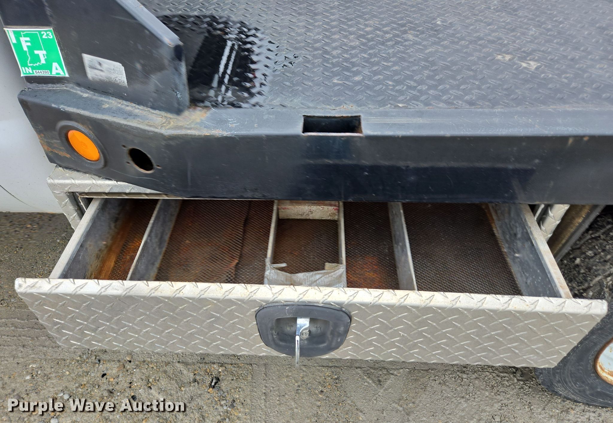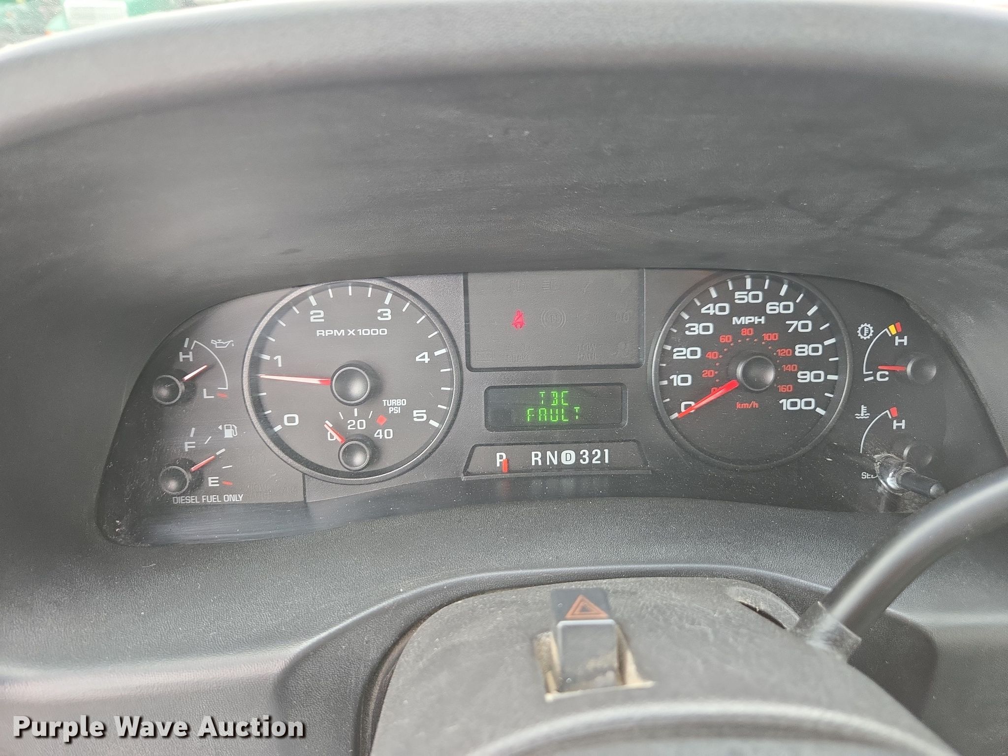 2007 Ford F450 Super Duty Crew Cab flatbed truck. Miles: 142,100 on odometer, VIN: 1FDXW47P07EA27313. Engine Displacement: 6.0L, Cylinders: 8, Fuel type: Diesel. Transmission Automatic. Chassis Four wheel drive, Axles: Single, Suspension: Spring, Brakes: Hydraulic. Interior AC, Heat, Cruise control, Auxiliary controls. Features Flatbed CM, 9' L x 94" W, Hitch: Gooseneck. Tires Size: 225/70R19.5. Notes Dash warning indicator: TBC fault, Intermittent fuel issues. Ohio title. Keystone Cooperative. Covington, OH 45318