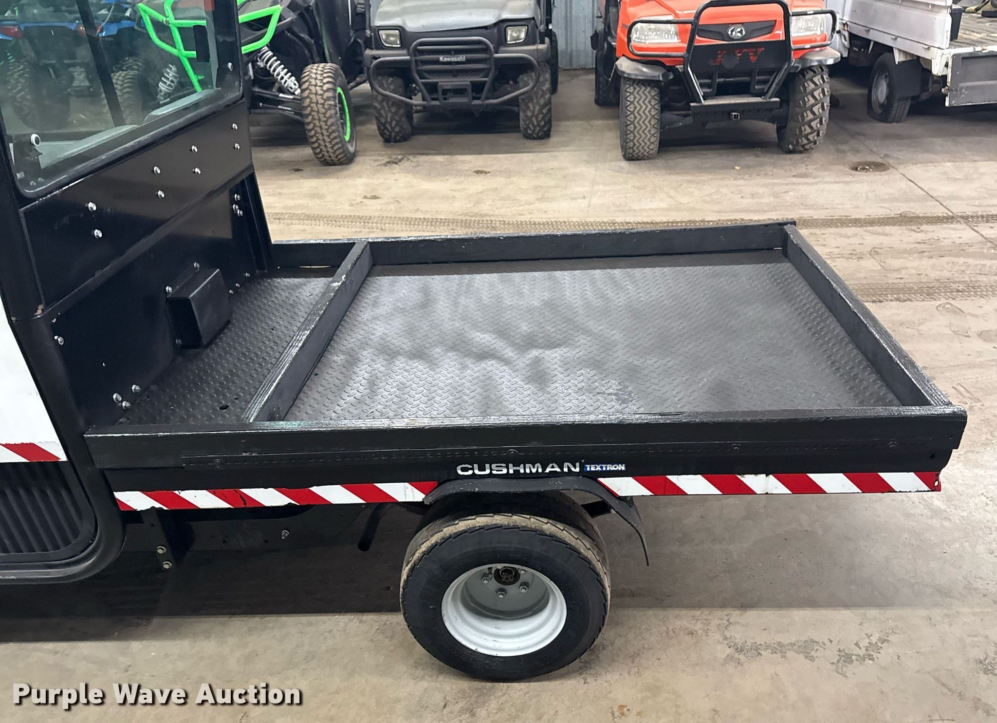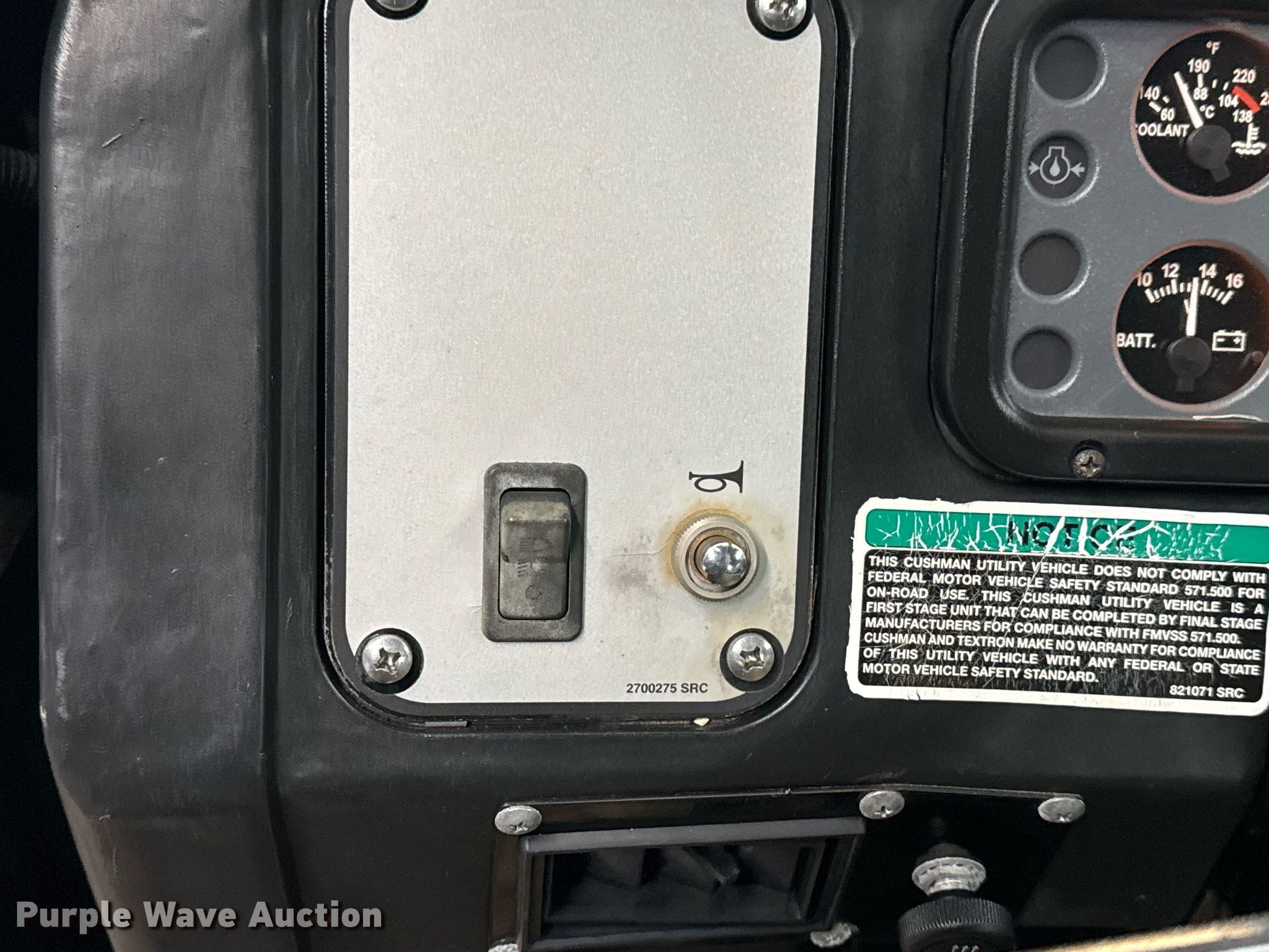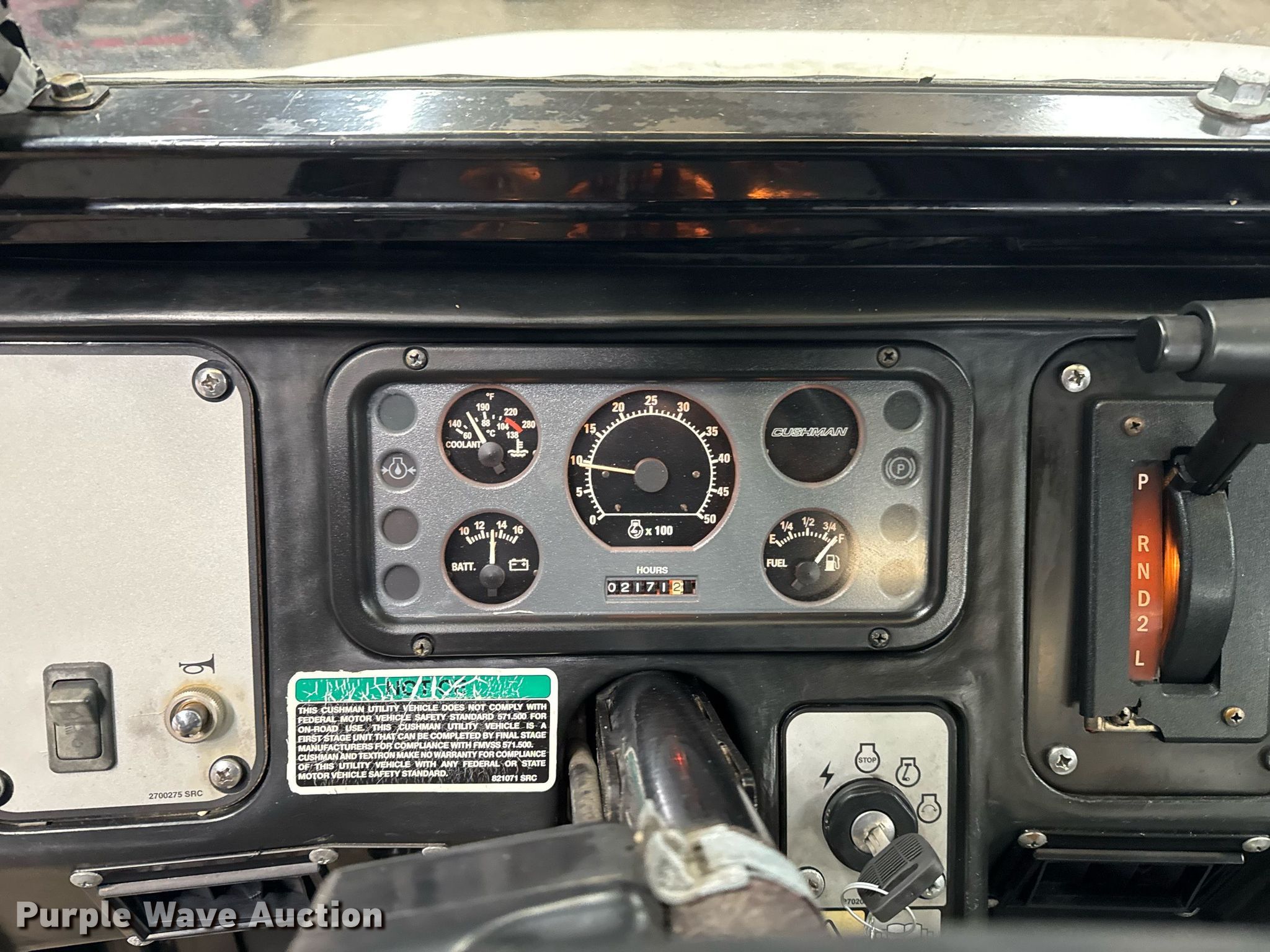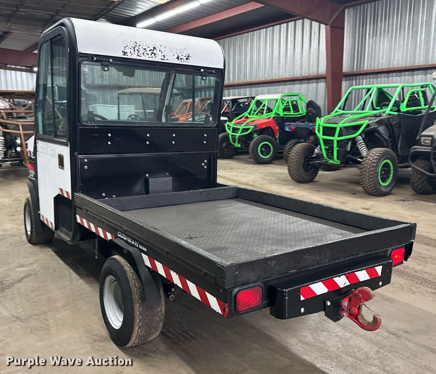 2015 Cushman Haulster utility vehicle. Hours: 2,171 on meter, Serial: 840710002058. Engine Cylinders: 3, Fuel type: Gas, Electric start. Transmission Automatic. Operators station Enclosed cab. Features Box bed 69" L x 48" W, Hitch: Pintle. Tires Size: 205/65-10. Notes Passenger side headlight missing. Transfer of ownership documentation will be a bill of sale. Collinsville, OK 74021