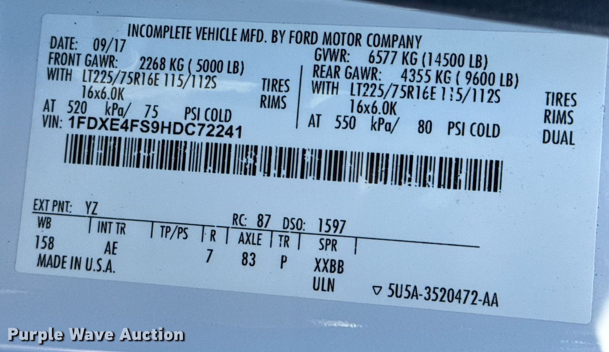 - VIN: 1FDXE4FS9HDC72241