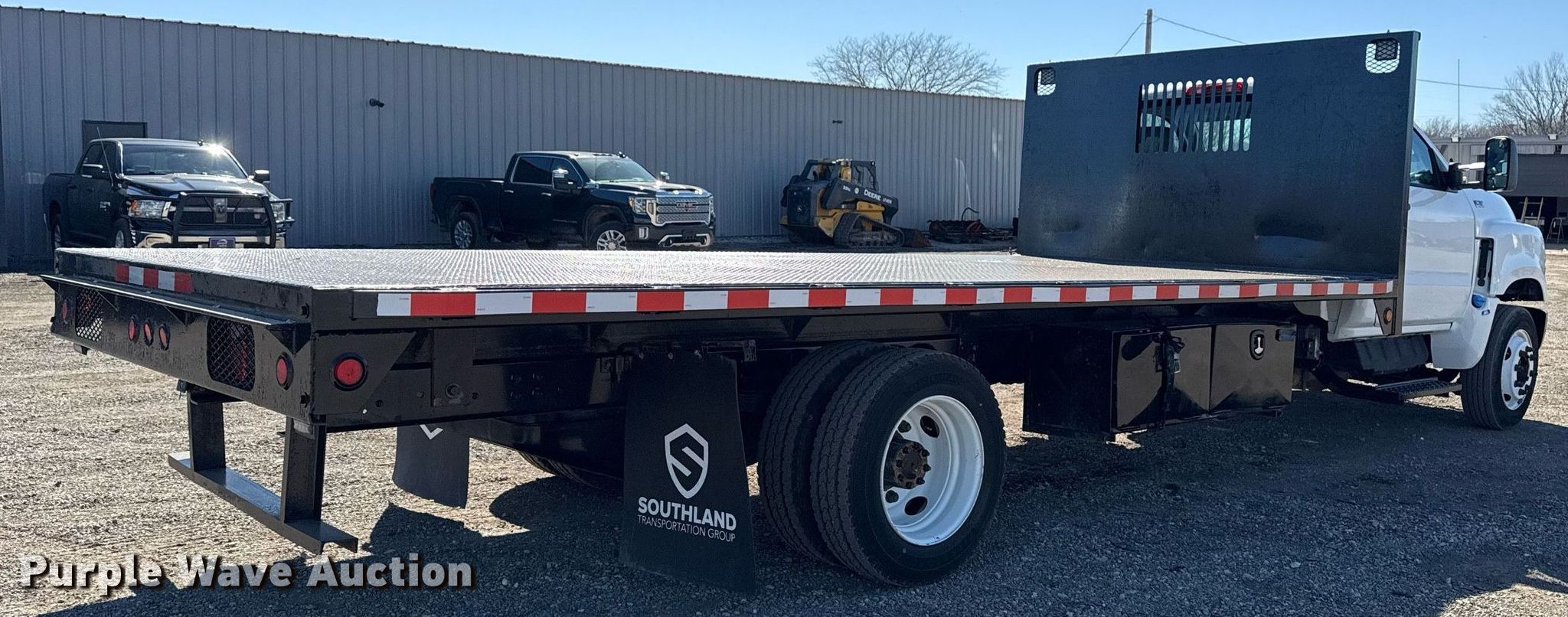 2019 International CV515 flatbed truck. Miles: 113,711 on odometer, VIN: 1HTKSSWM6KH521403. Engine Navistar 350, Displacement: 6.6L, Cylinders: 8, Fuel type: Diesel, HP: 350. Transmission Automatic. Chassis Axles: Single, Suspension: Spring, Brakes: Hydraulic, GVWR: 22,940 lbs. Interior AC, Heat, Power locks, Cruise control, Auxiliary controls. Features Flatbed 18' 3" L x 97" W. Tires Size: 225/70R19.5. Oklahoma title. Seller is an Oklahoma licensed motor vehicle dealer. Title will be assigned and distributed by the dealer. Please contact the seller for distribution questions. Title distribution may be delayed up to 30 days from verification of funds. Collinsville, OK 74021