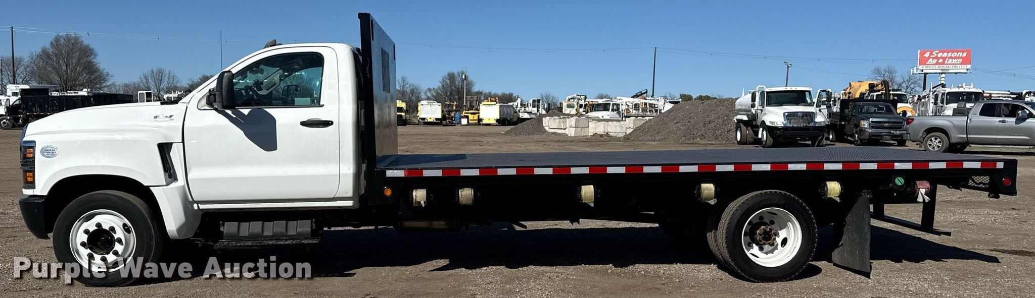 This 2019 International CV515 flatbed truck will sell to the highest bidder regardless of price.