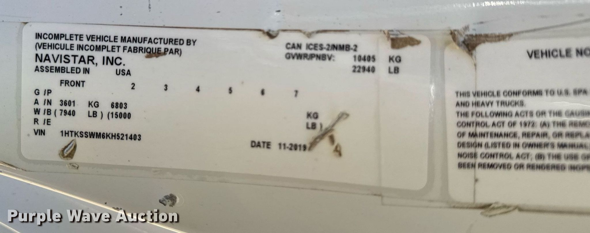 Purple Wave is selling a used Flat Bed Truck in Oklahoma. This item is a 2019 International CV515 flatbed truck with the following: Miles: 113,711 on odometer, VIN: 1HTKSSWM6KH521403