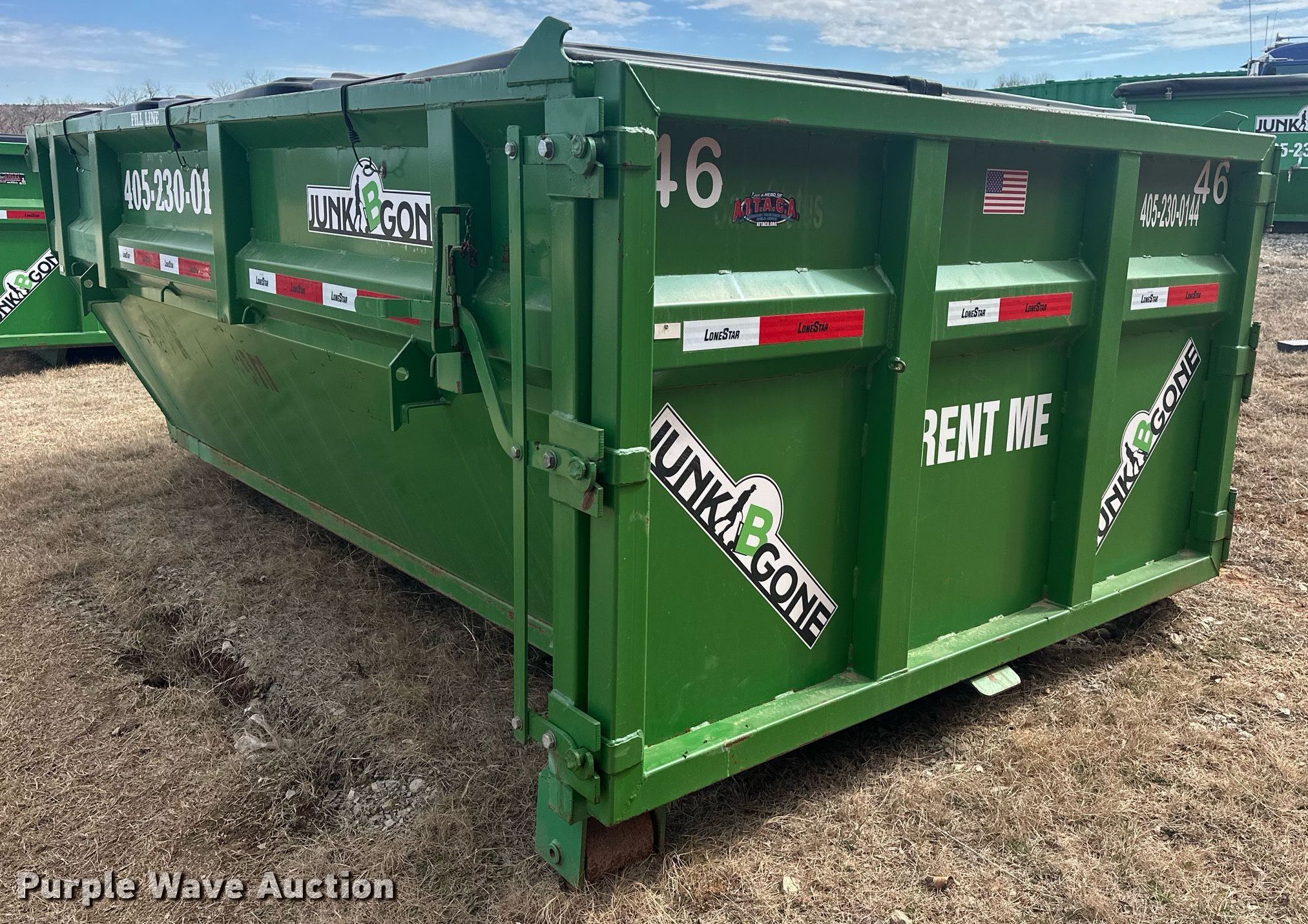 Purple Wave is selling a used Refuse or Compaction Equip. in Oklahoma. This item is a LoneStar roll-off container with the following: 13' 2" L x 90" W x 50" H, Capacity: 12 cu.yd.