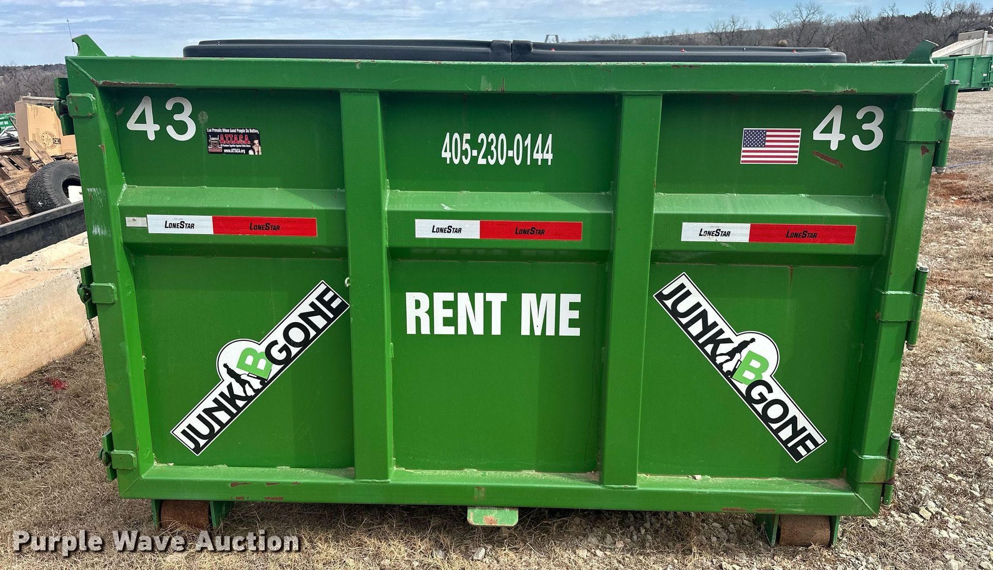 Purple Wave is selling a used Refuse or Compaction Equip. in Oklahoma. This item is a LoneStar roll-off container with the following: 13' 2" L x 90" W x 50" H, Capacity: 12 cu.yd.