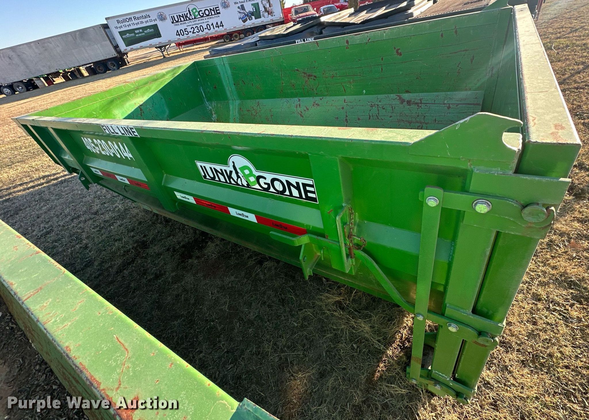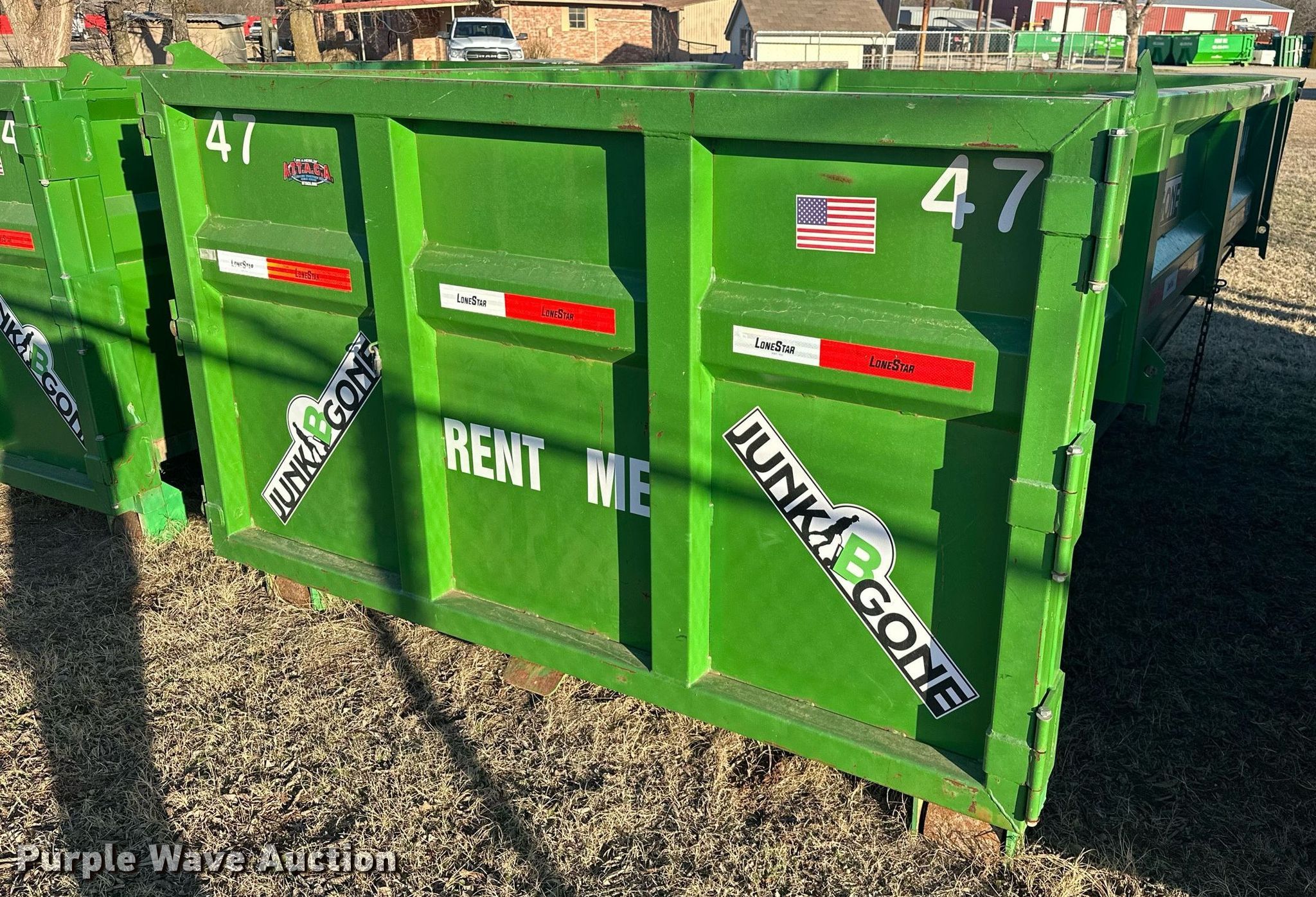Purple Wave is selling a used Refuse or Compaction Equip. in Oklahoma. This item is a LoneStar roll-off container with the following: 13' 2" L x 90" W x 50" H, Capacity: 12 cu.yd.