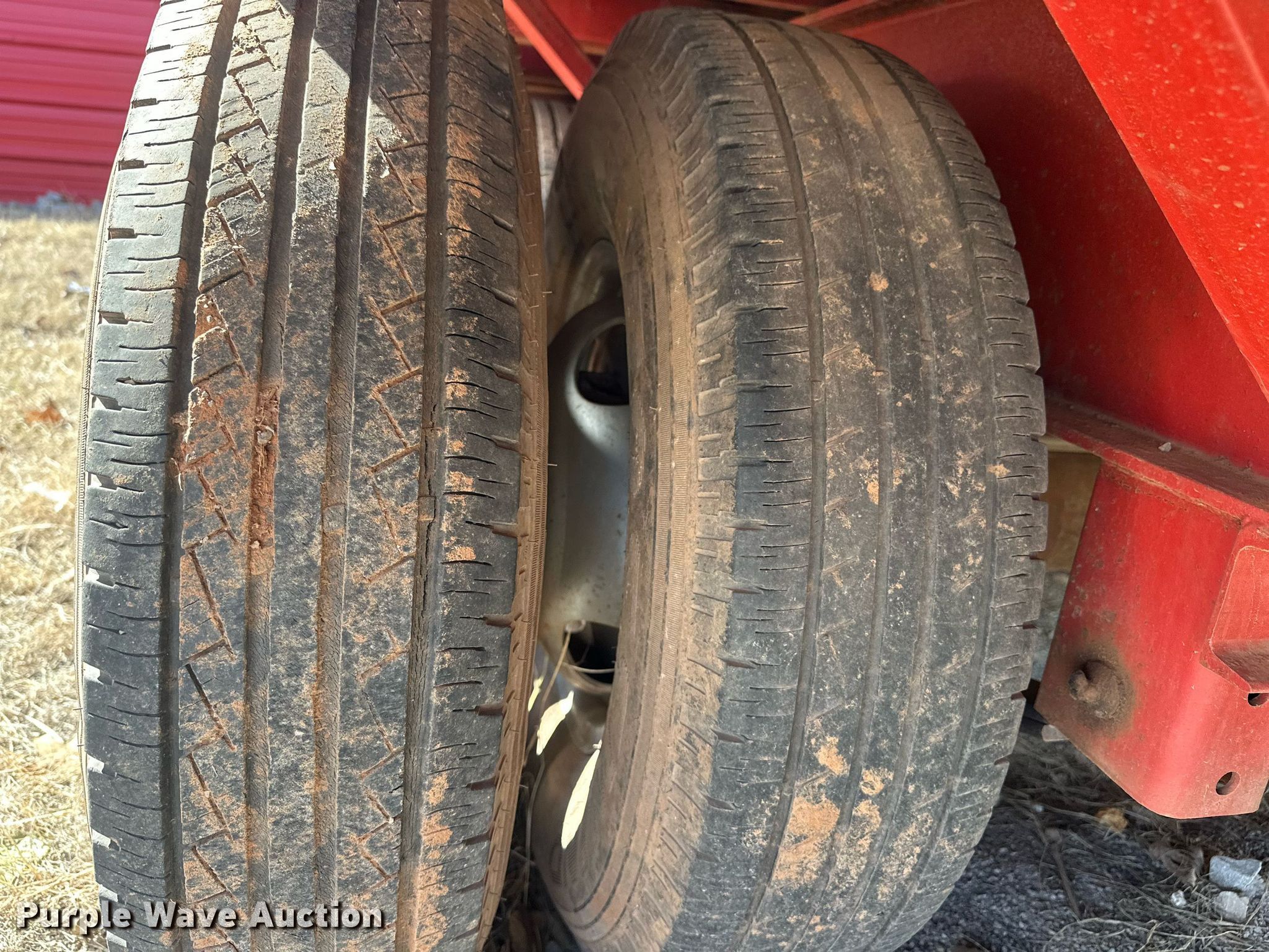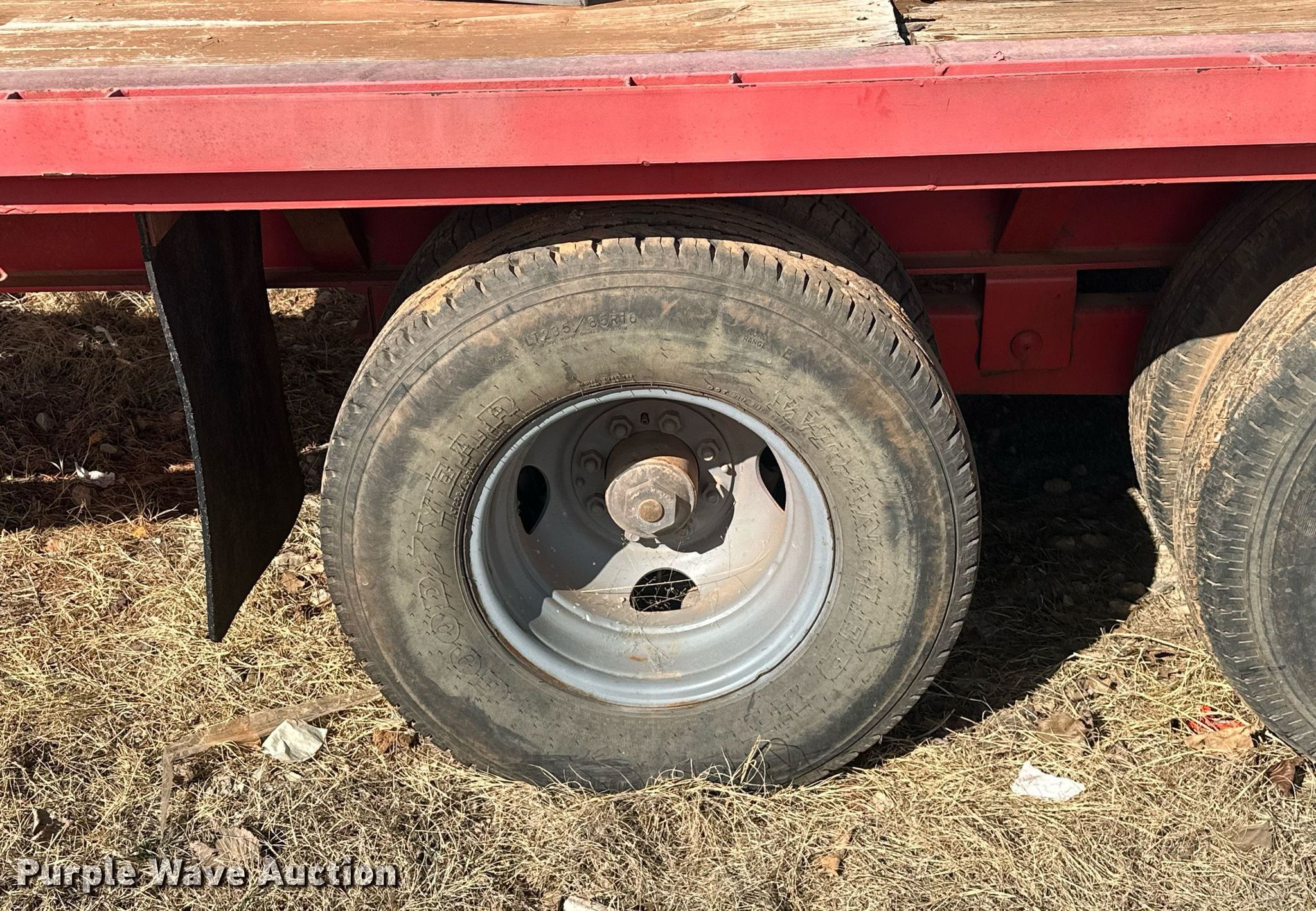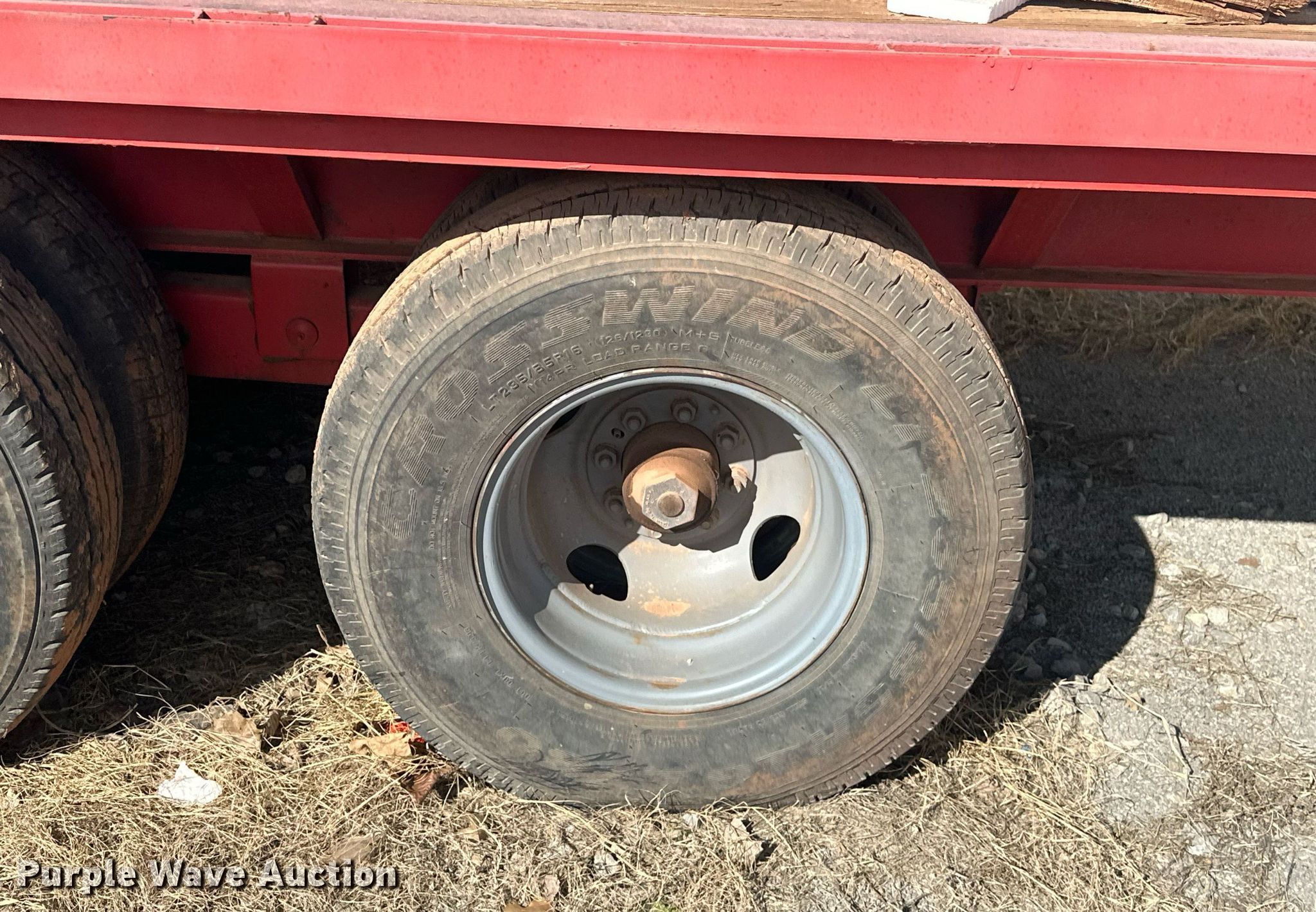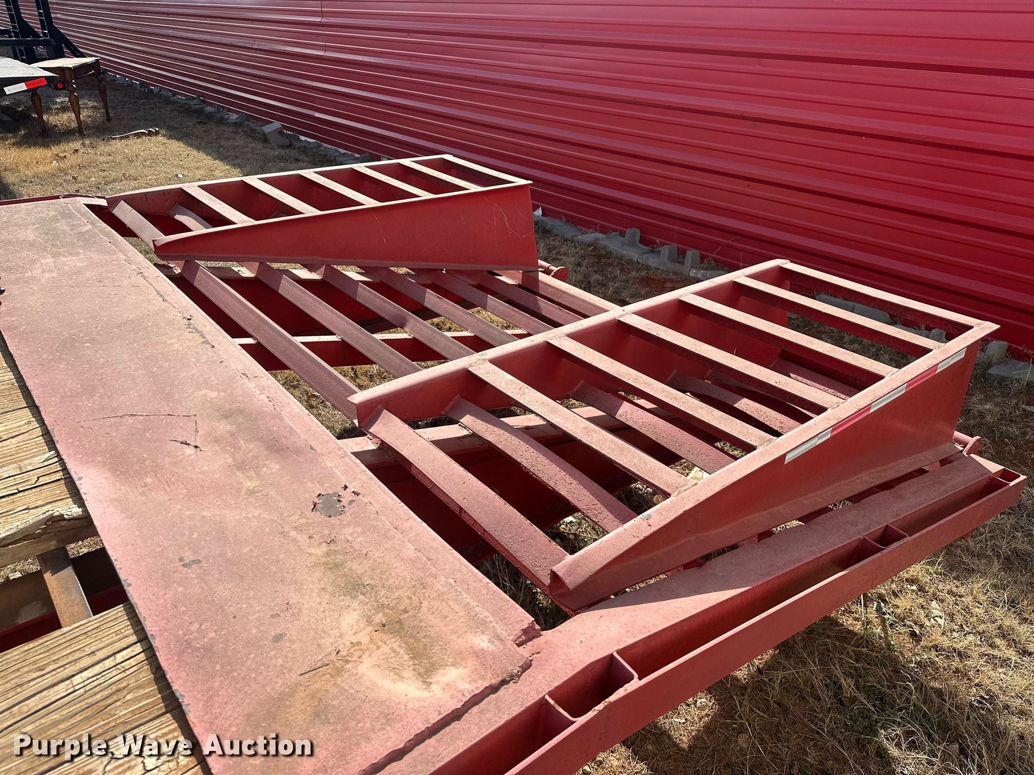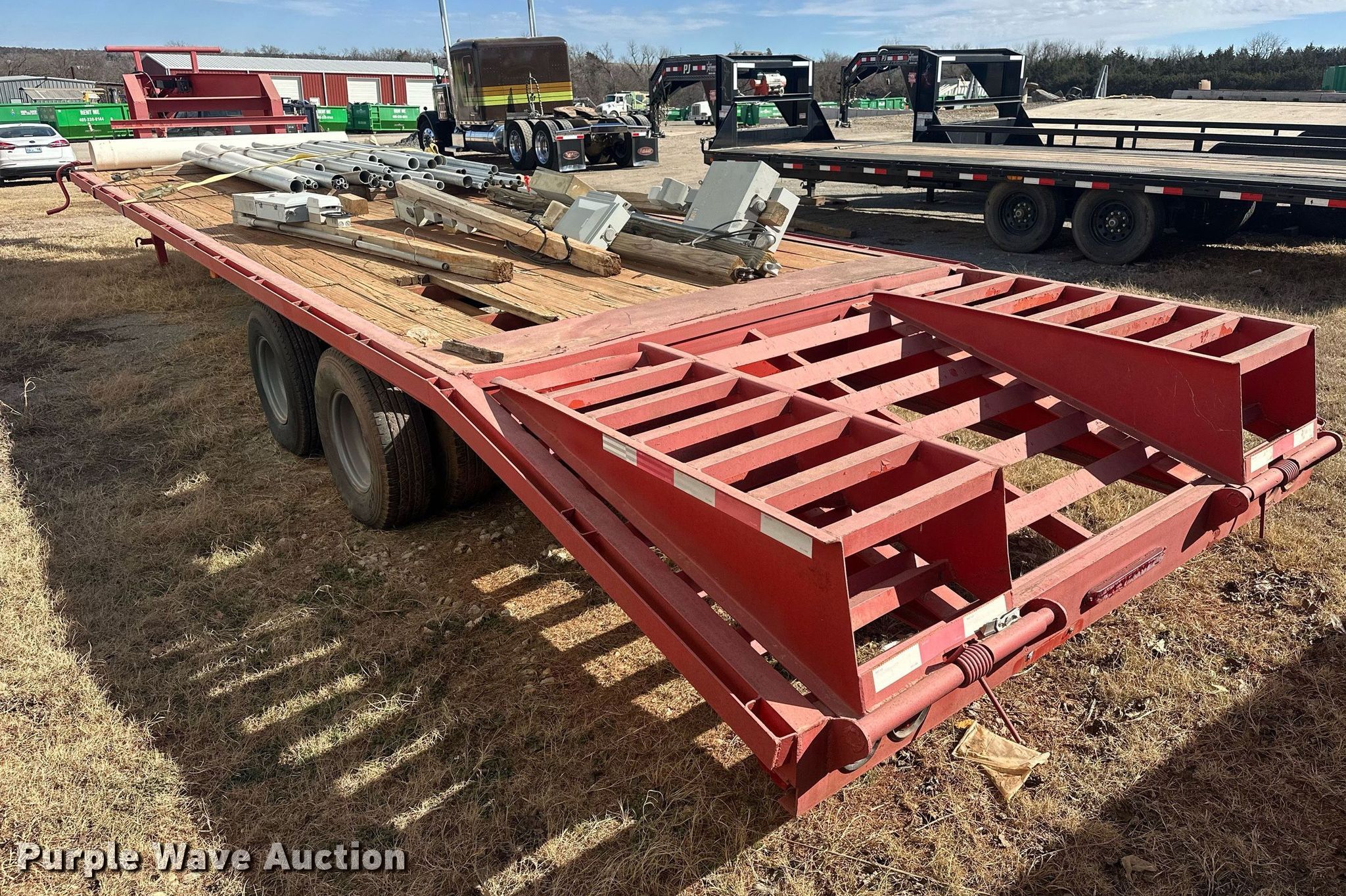 2000 Elite equipment trailer. VIN: 1E9BF3028YS230072. Dimensions Overall: 38' 6" L x 101" W, Deck: 25' L x 96" W, Tail length: 5', Ramps: Manual Length: 5'. Features Deck type: Wood. Chassis Hitch: Gooseneck, Landing gear: Dual, Suspension: Spring, Brakes: Electric, Axles: Tandem, GVWR: 20,000 lbs, GAWR: 6,450 lbs. Tires Steel wheels, Size: 7.50R16, Size: LT235/85R16. Notes Contents not included, Flat tire, Deck boards damaged. Transfer of ownership documentation will be a bill of sale. Guthrie, OK 73044
