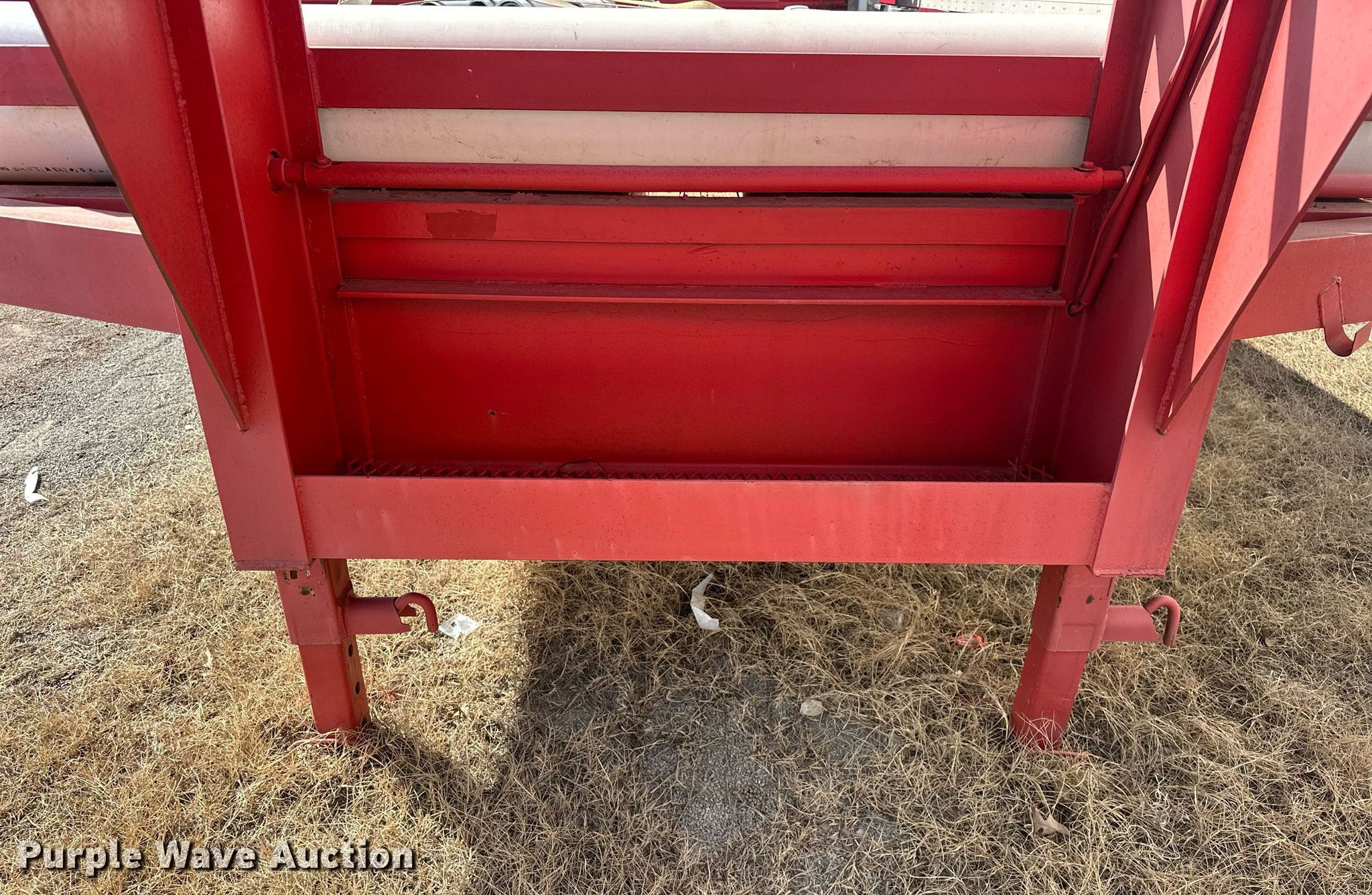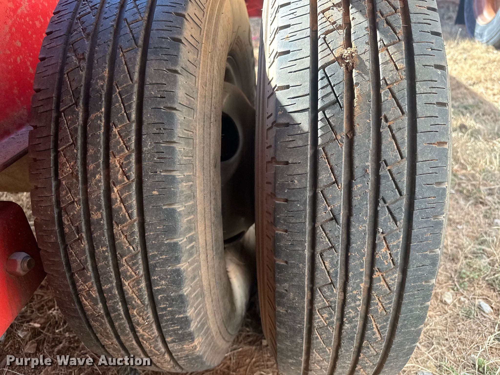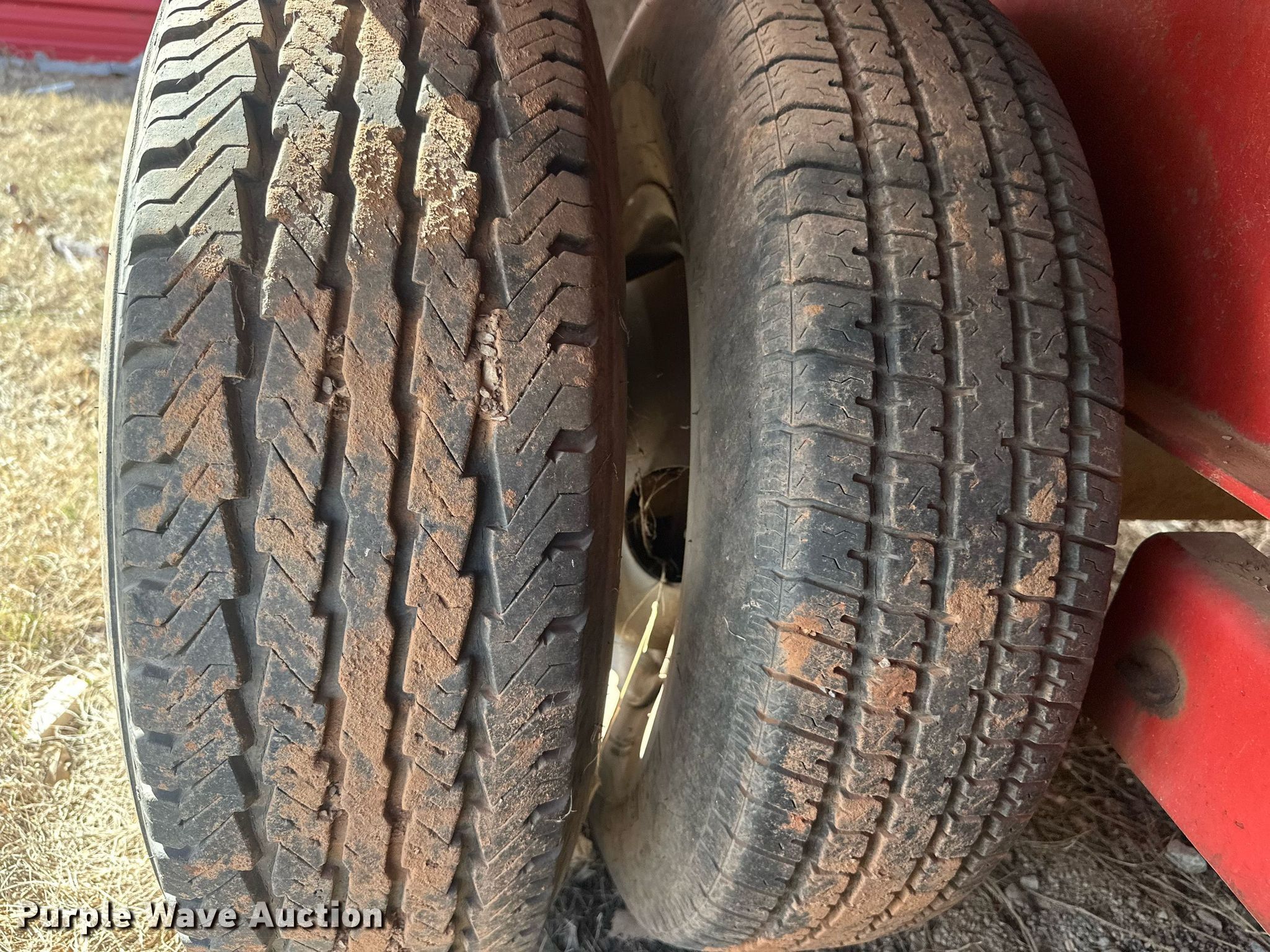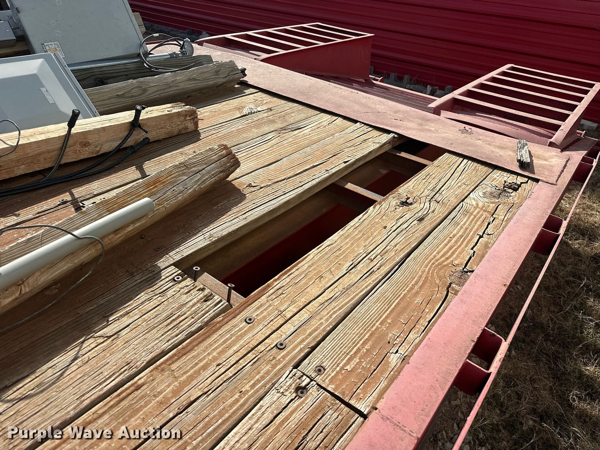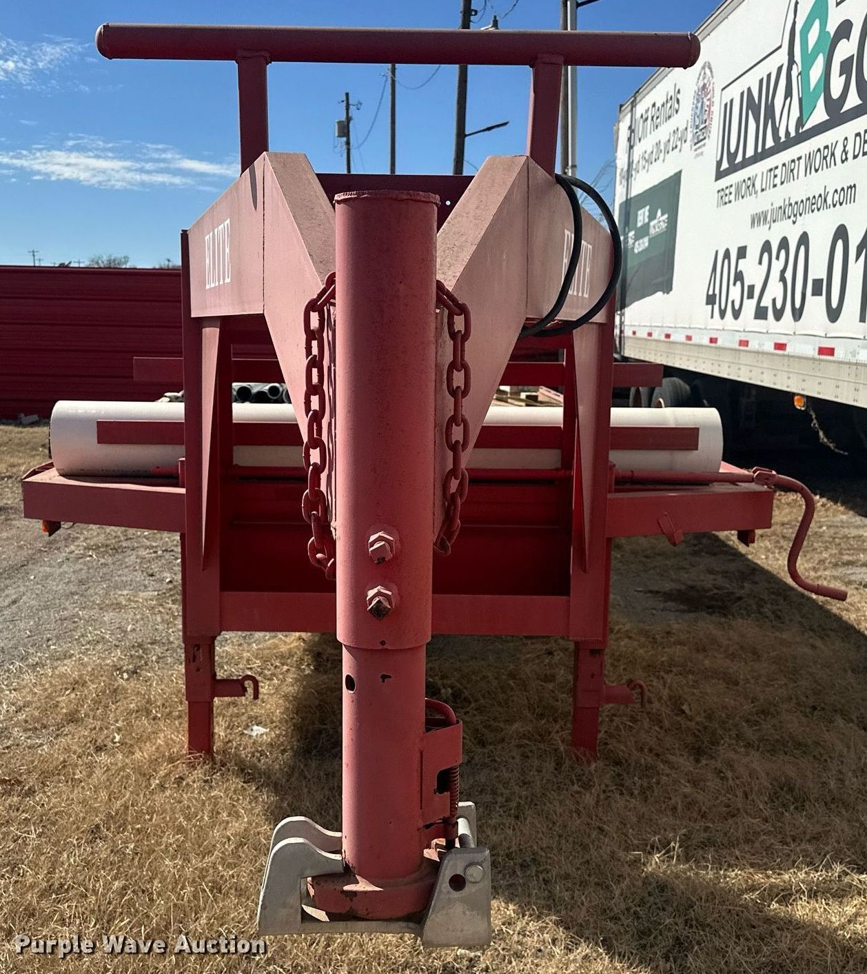 2000 Elite equipment trailer. VIN: 1E9BF3028YS230072. Dimensions Overall: 38' 6" L x 101" W, Deck: 25' L x 96" W, Tail length: 5', Ramps: Manual Length: 5'. Features Deck type: Wood. Chassis Hitch: Gooseneck, Landing gear: Dual, Suspension: Spring, Brakes: Electric, Axles: Tandem, GVWR: 20,000 lbs, GAWR: 6,450 lbs. Tires Steel wheels, Size: 7.50R16, Size: LT235/85R16. Notes Contents not included, Flat tire, Deck boards damaged. Transfer of ownership documentation will be a bill of sale. Guthrie, OK 73044