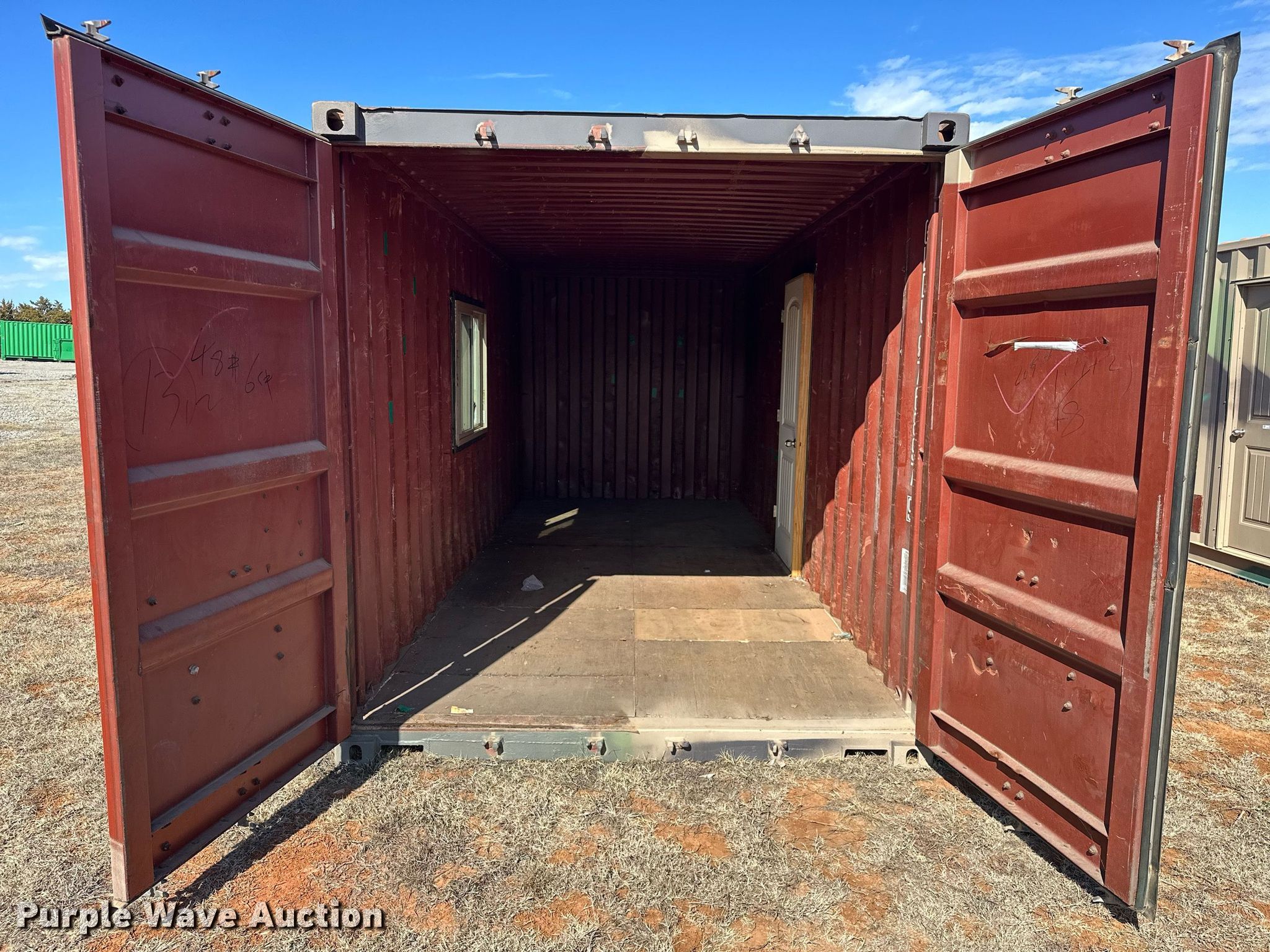 Purple Wave is selling a used Storage or Shipping Container in Oklahoma. This item is a Office container with the following: 19' 10" L x 96" W x 8' 2" H