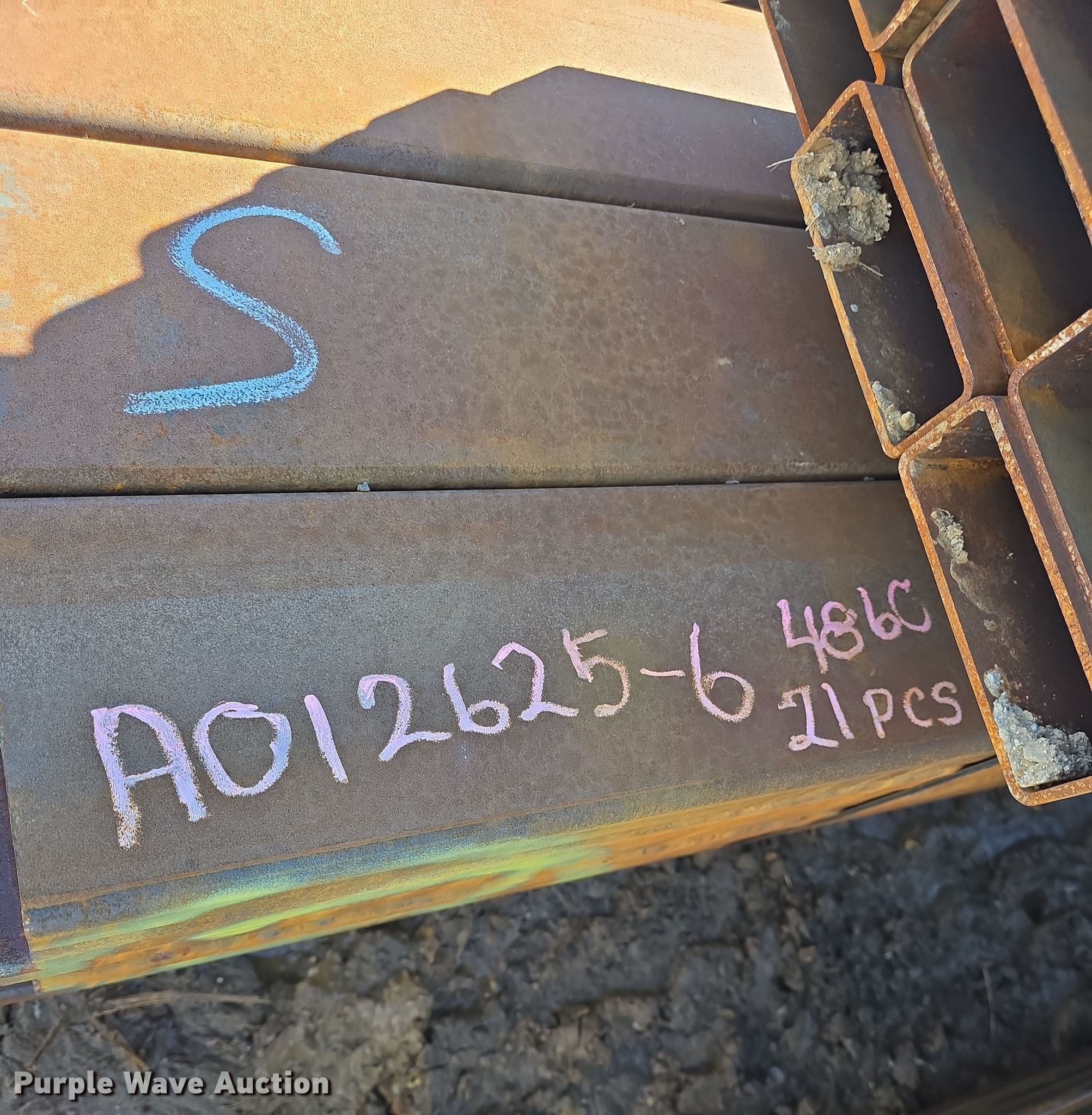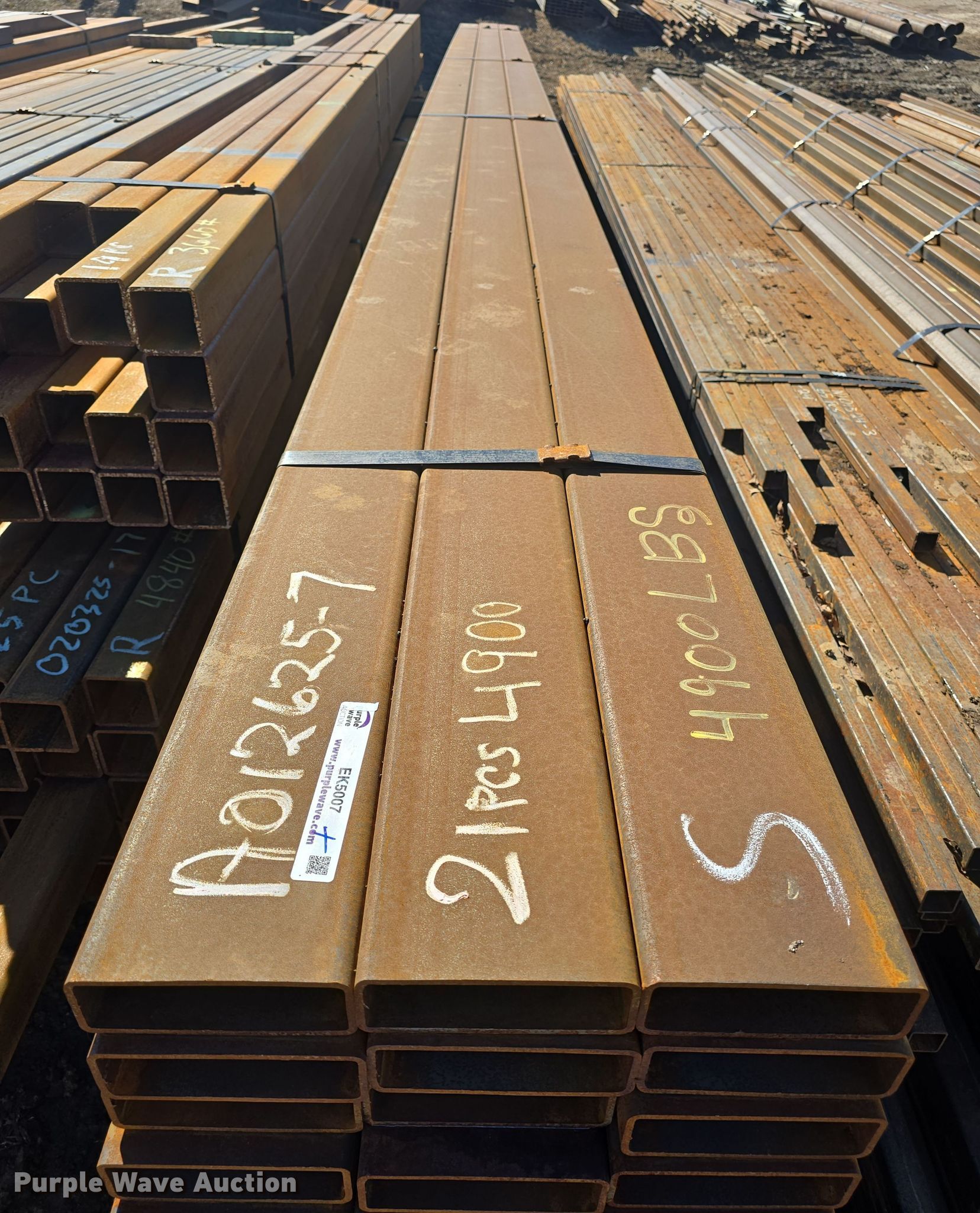 Purple Wave is selling a used Building Materials in Kansas. This item is a (42) pieces of steel with the following: (21) 6" x 2" x 3/16", Length: 26', Weight: 4,900 lbs, (21) 6" x 2" x 3/16", Length: 25', Weight: 4,860 lbs, Serial: 012625-7, 012625-6, Unit #: S