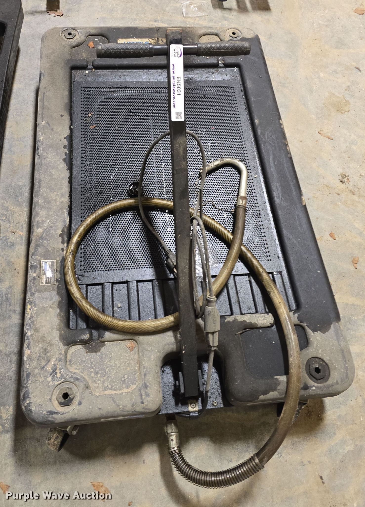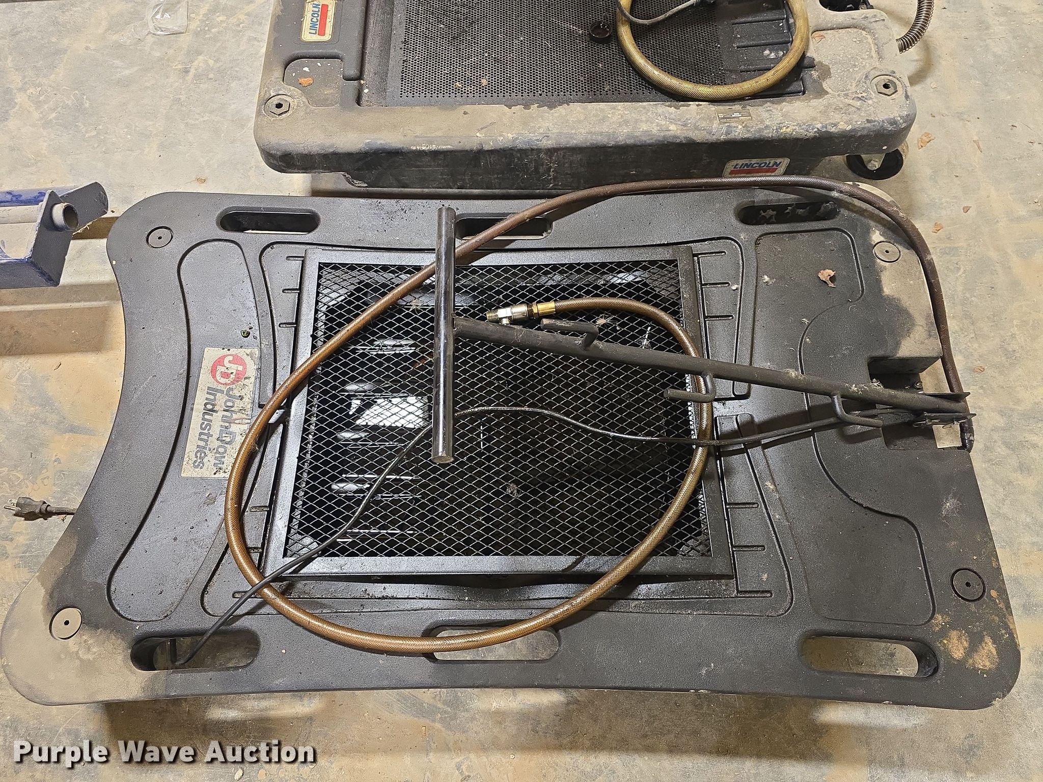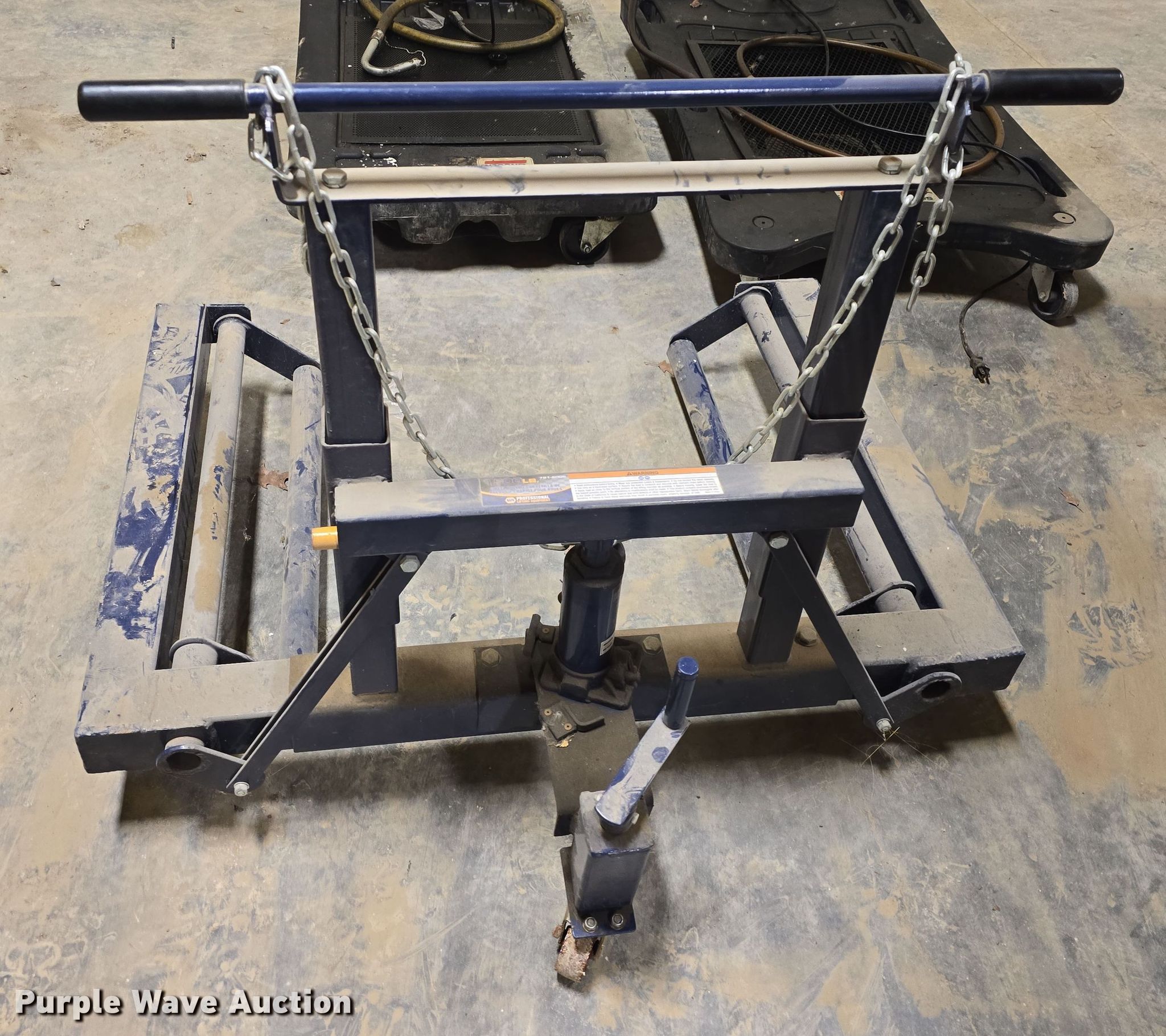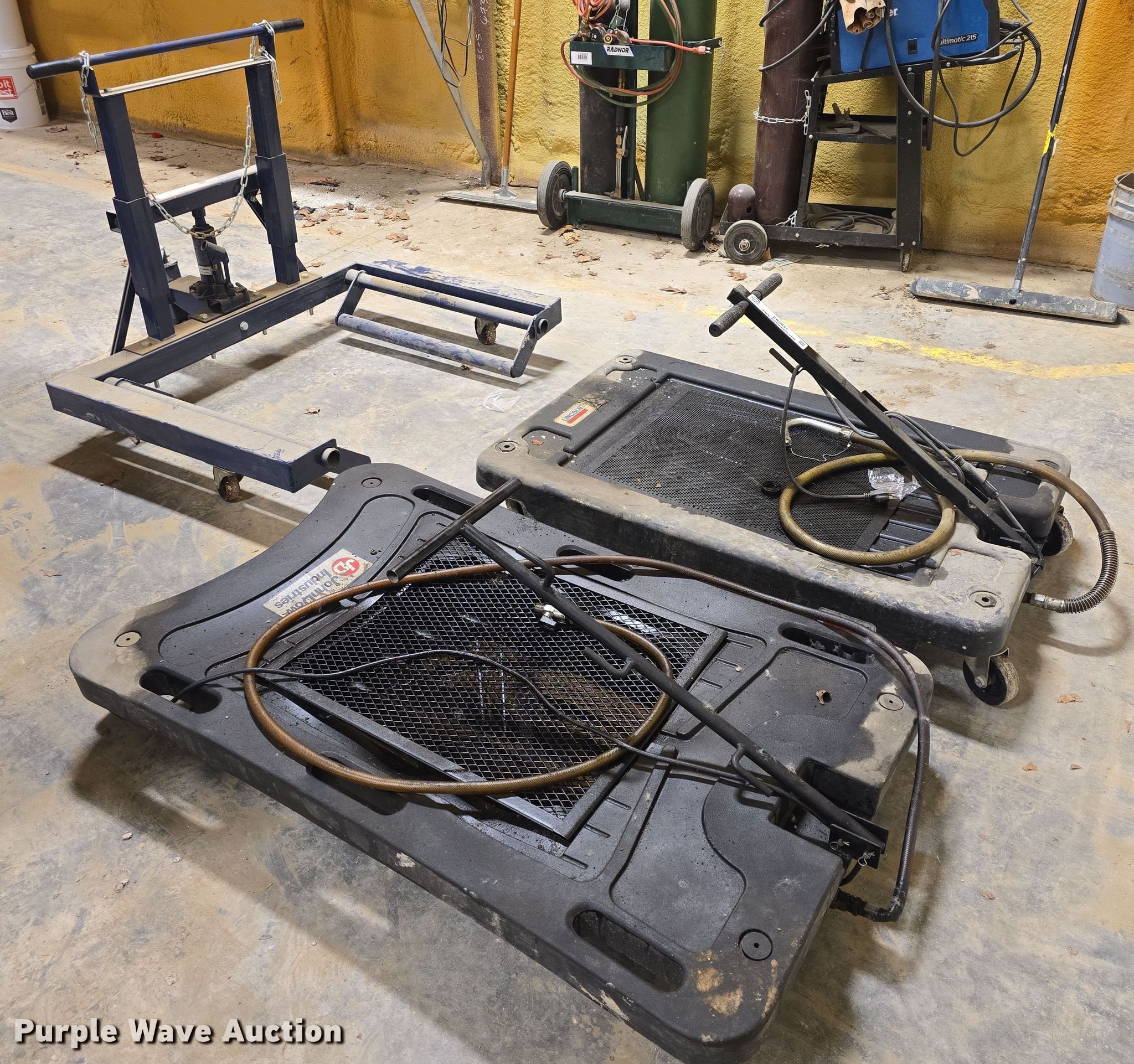 Purple Wave is selling a used Tools in Kansas. This item is a Tools with the following: Wheel dolly, Napa, Capacity: 1,500 lbs, (2) used oil collectors, Lincoln, John Dow