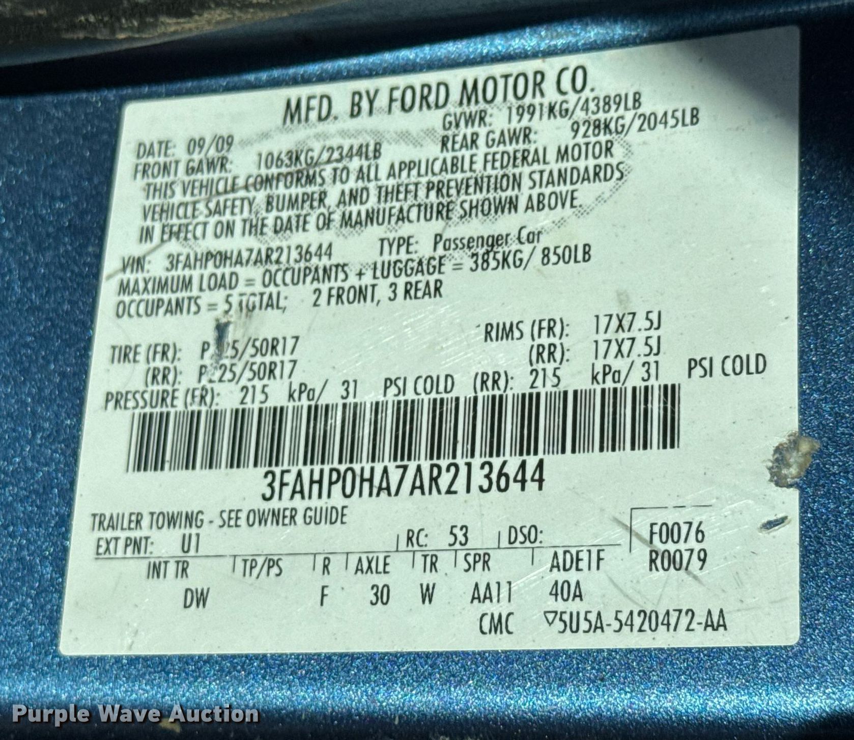 Purple Wave is selling a used Passenger Vehicle in Kansas. This item is a 2010 Ford Fusion with the following: Miles: 198,102 on odometer, VIN: 3FAHP0HA7AR213644