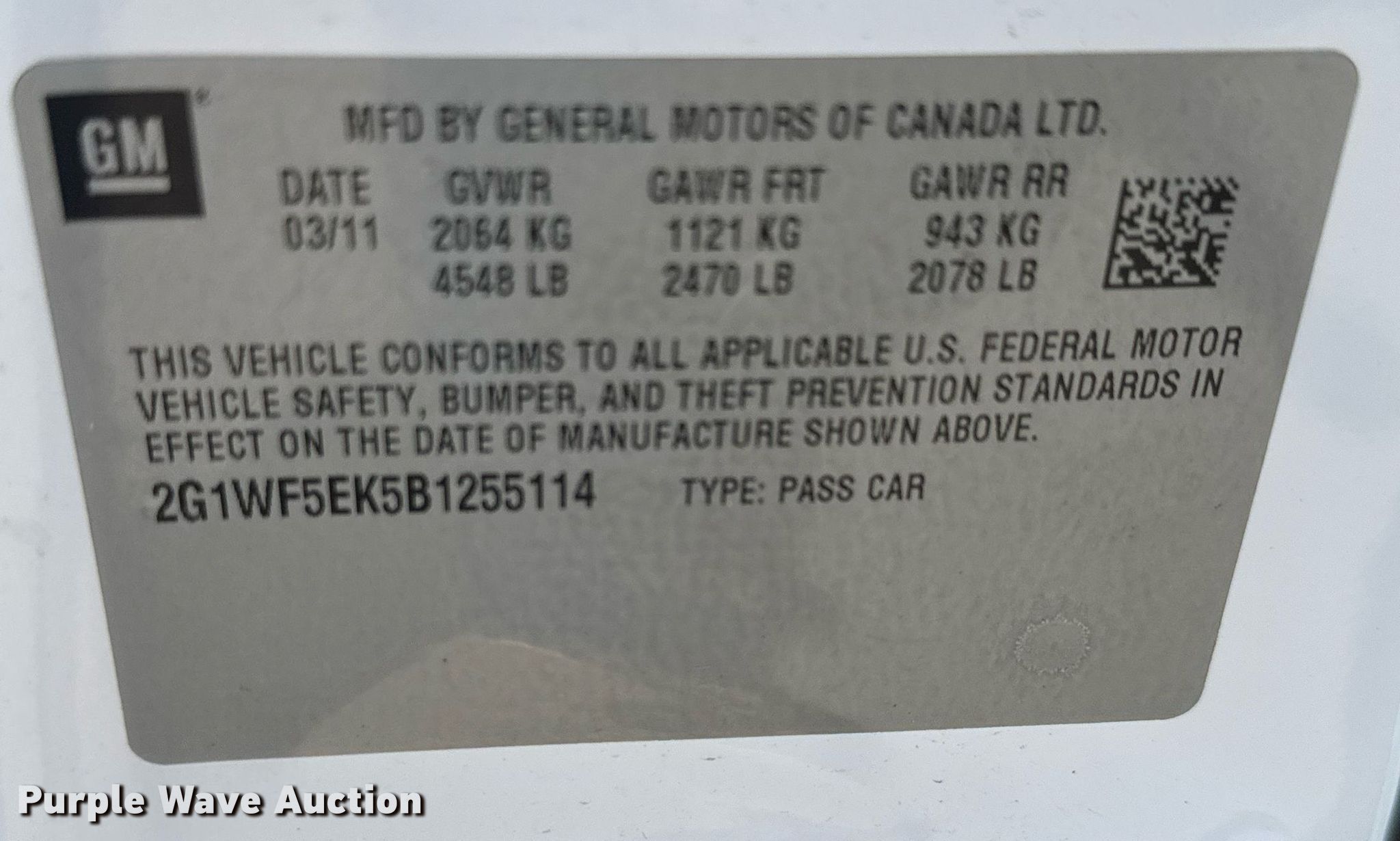 - VIN: 2G1WF5EK5B1255114
