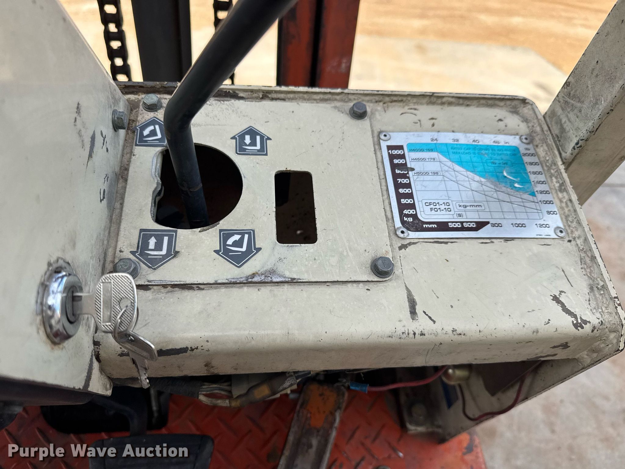 Purple Wave is selling a used Warehouse Forklift in Kansas. This item is a Datsun CF01 Type G forklift with the following: Hours: 4,702 on meter, Serial: CF01-001094