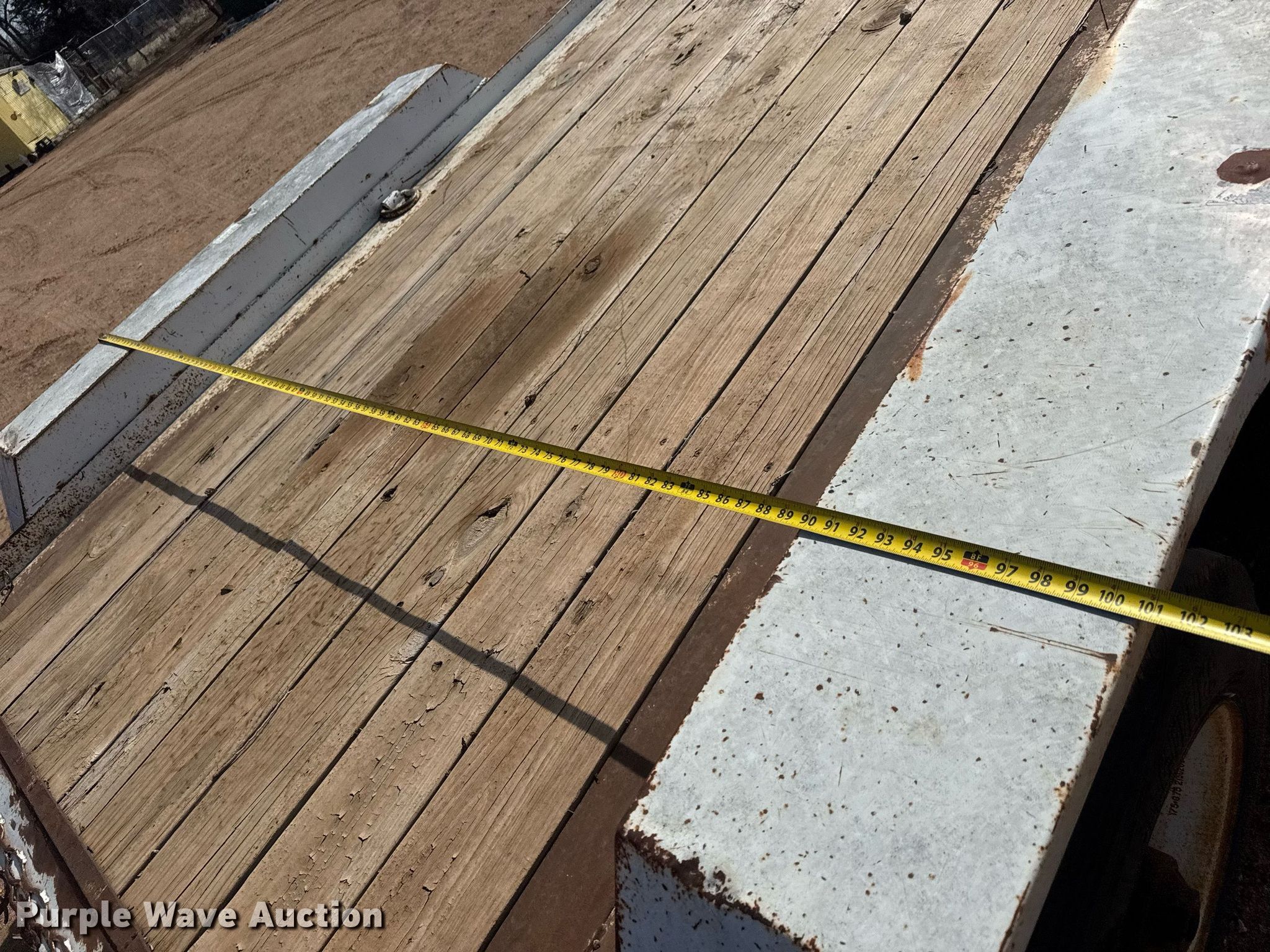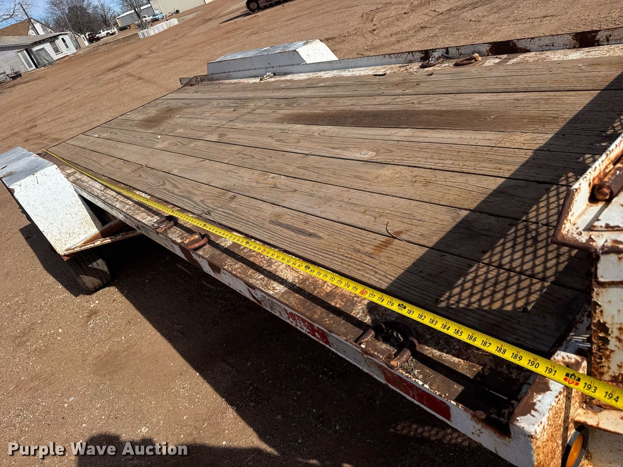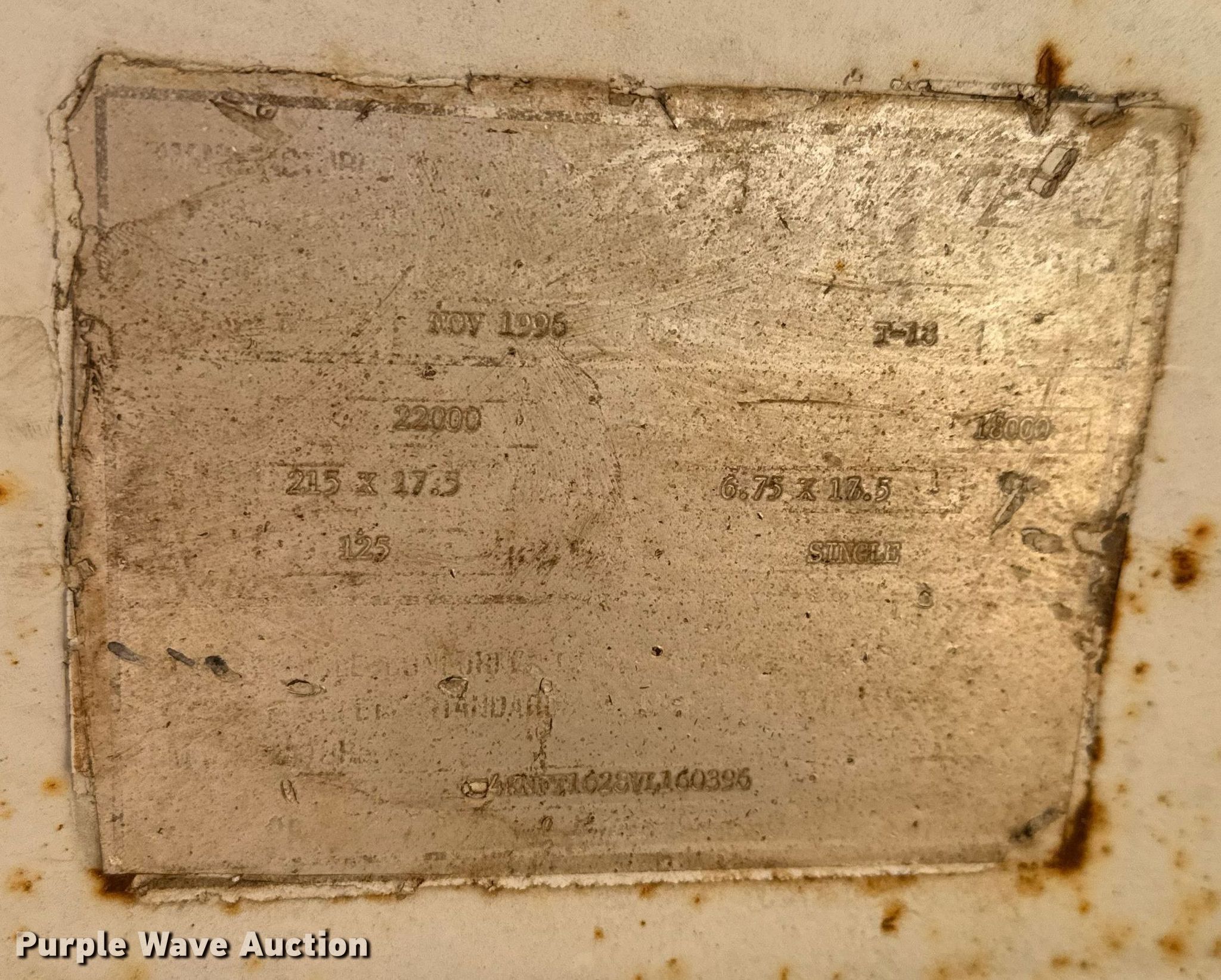 1997 Towmaster T-18 equipment trailer. VIN: 4KNFT1628VL160396. Dimensions Overall: 25' L x 101" W, Deck: 16' L x 78" W, Tail length: 2' 2", Ramps: Manual Length: 6'. Features Deck type: Wood. Chassis Hitch: Pintle, Landing gear: Single, Suspension: Spring, Brakes: Electric, Axles: Tandem, GVWR: 22,000 lbs. Tires Steel wheels, Size: 215/75R17.5. Kansas title. Title distribution may be delayed up to 14 days from verification of funds. Murdock, KS 67111