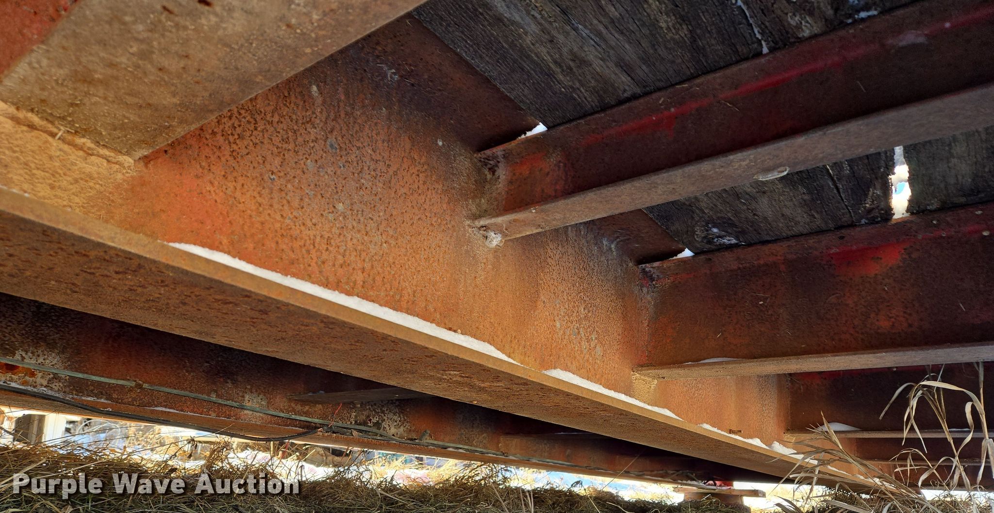 1953 lowboy equipment trailer. VIN: DR147454MO. Dimensions Overall: 36' 8" L x 8" W, Deck: 16' x 8' W, Top deck length: 9', Ramps: Manual Length: 4' 4". Features Deck type: Steel, Wood. Chassis Hitch: 5th wheel, Landing gear: Dual, Suspension: Walking beam, Brakes: Air, Axles: Tandem. Tires Steel wheels, Size: 8.25R15. Notes Deck damage, Flat tires. Missouri title. NGS Farms LLC. Coffey, MO 64636