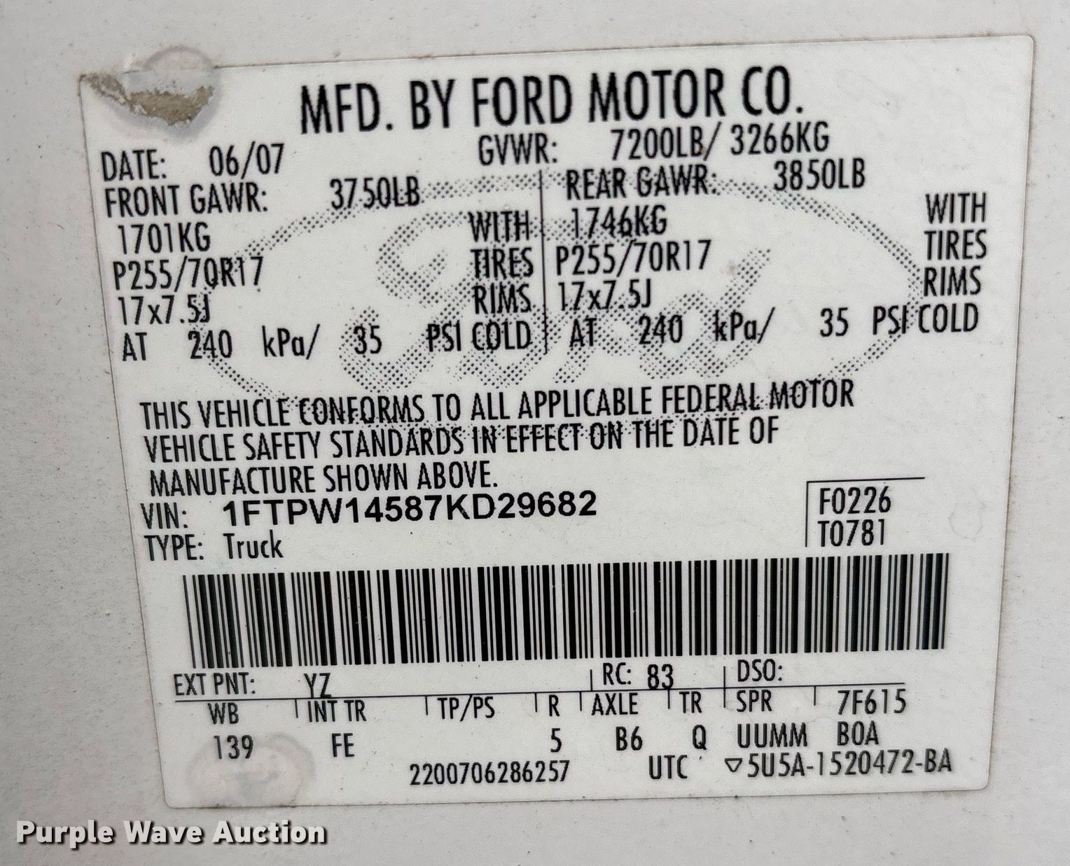 Purple Wave is selling a used 1/2 Ton Pickup or Van in Texas. This item is a 2007 Ford F150 SuperCrew pickup truck with the following: Miles: 202,805 on odometer, Miles or hours may vary, unit still in use, VIN: 1FTPW14587KD29682