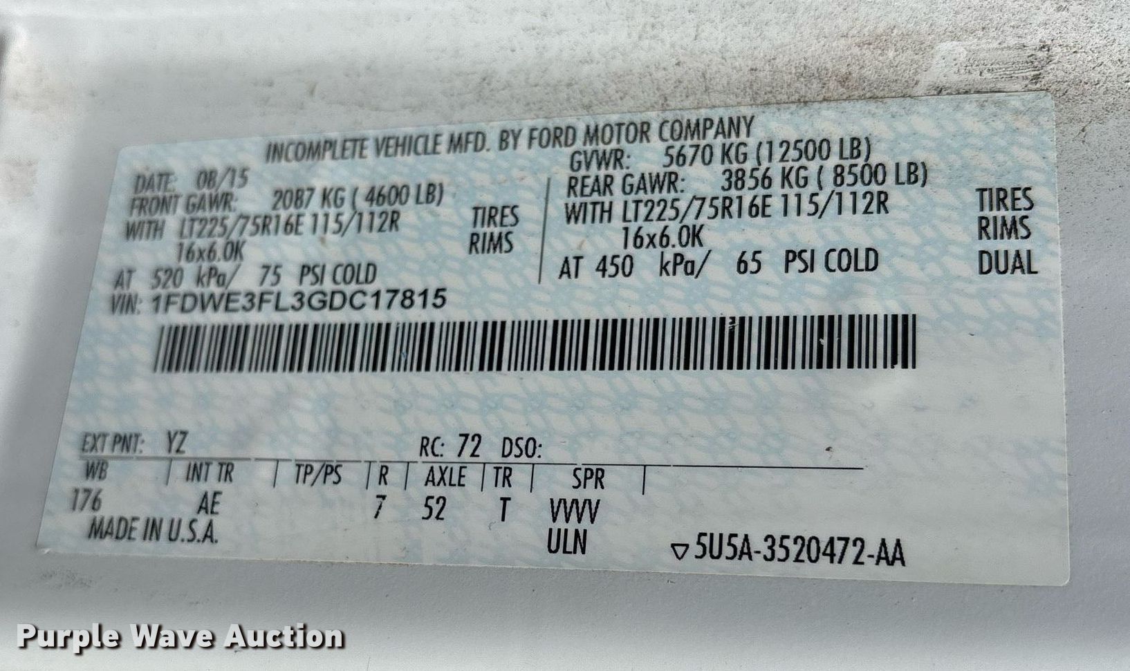 2016 Ford E350 Super Duty box truck. Miles: 200,198 on odometer, VIN: 1FDWE3FL3GDC17815. Engine Displacement: 5.4L, Cylinders: 8, Fuel type: Gas. Transmission Automatic. Chassis Axles: Single, Suspension: Spring, Brakes: Hydraulic, PTO, GVWR: 12,500 lbs, Wheelbase: 176". Interior AC, Heat, Power windows, Power locks, Cruise control. Features Box bed Smyrna CAV160840960, Serial: S0012285, 16' L x 8" W x 88" H, E-track rail system, Floor: Wood, End gate lift, Maxon. Tires Size: LT225/75R16. Notes Dash warning indicator: Check engine, Windshield chipped or cracked, Dead battery, Exhaust issues, leak, Possible head gasket issues. Texas title. Title distribution may be delayed up to 14 days from verification of funds. Timpson, TX 75975
