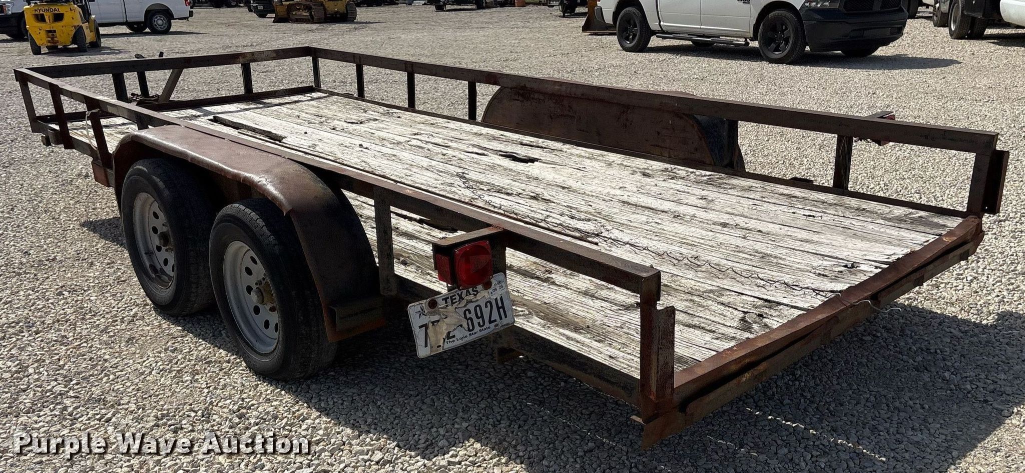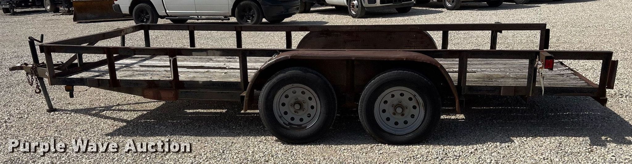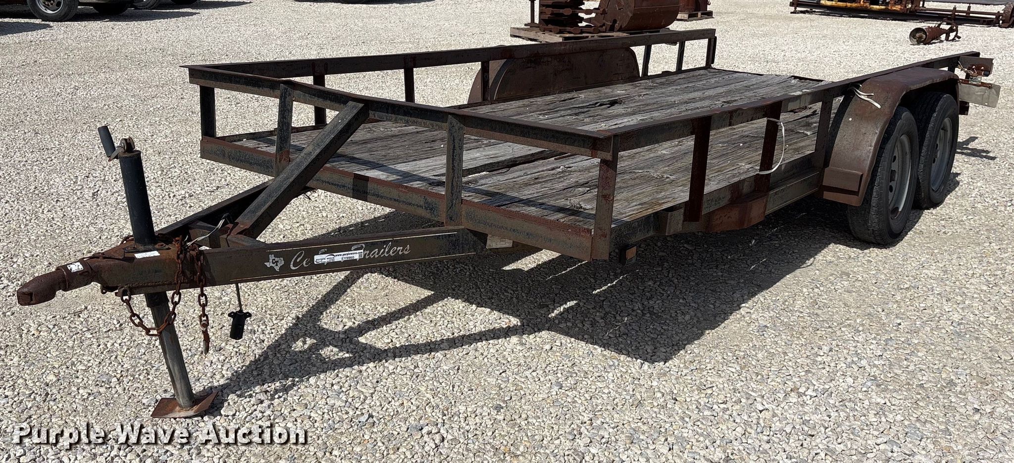 2007 CenTex utility trailer. VIN: 5RBCP16237H005202. Dimensions Overall: 20' L x 8' W, Deck: 16' L x 6' 5" W, Side height: 13", Deck height: 18". Features Deck type: Wood. Chassis Ball hitch: 2", Landing gear: Single, Suspension: Spring, Axles: Tandem, GVWR: 7,000 lbs, GAWR: 3,500 lbs. Tires Steel wheels, Size: ST205/75R15. Notes Deck boards damaged. Transfer of ownership documentation will be a bill of sale. Silas White Construction. Garland, TX 75042