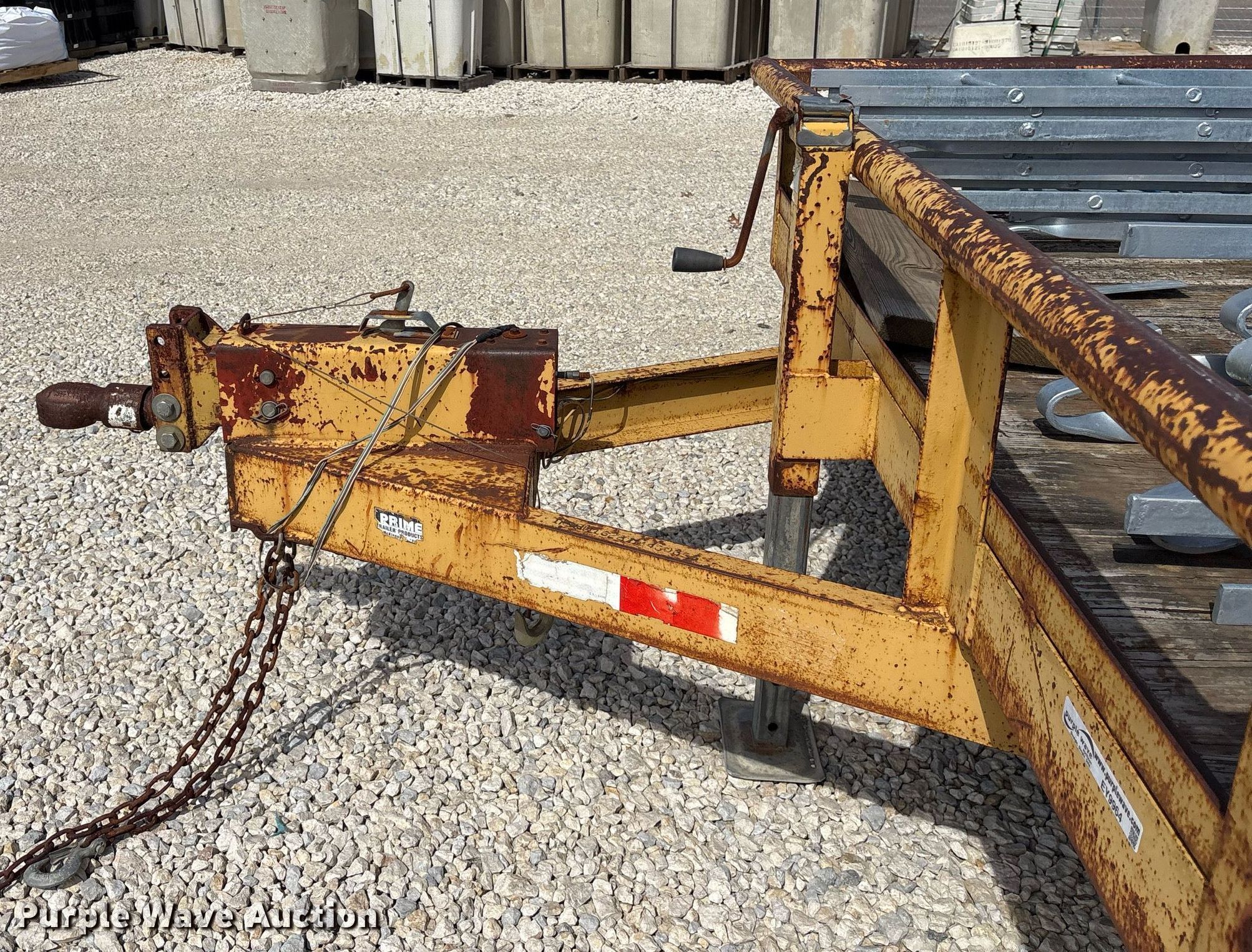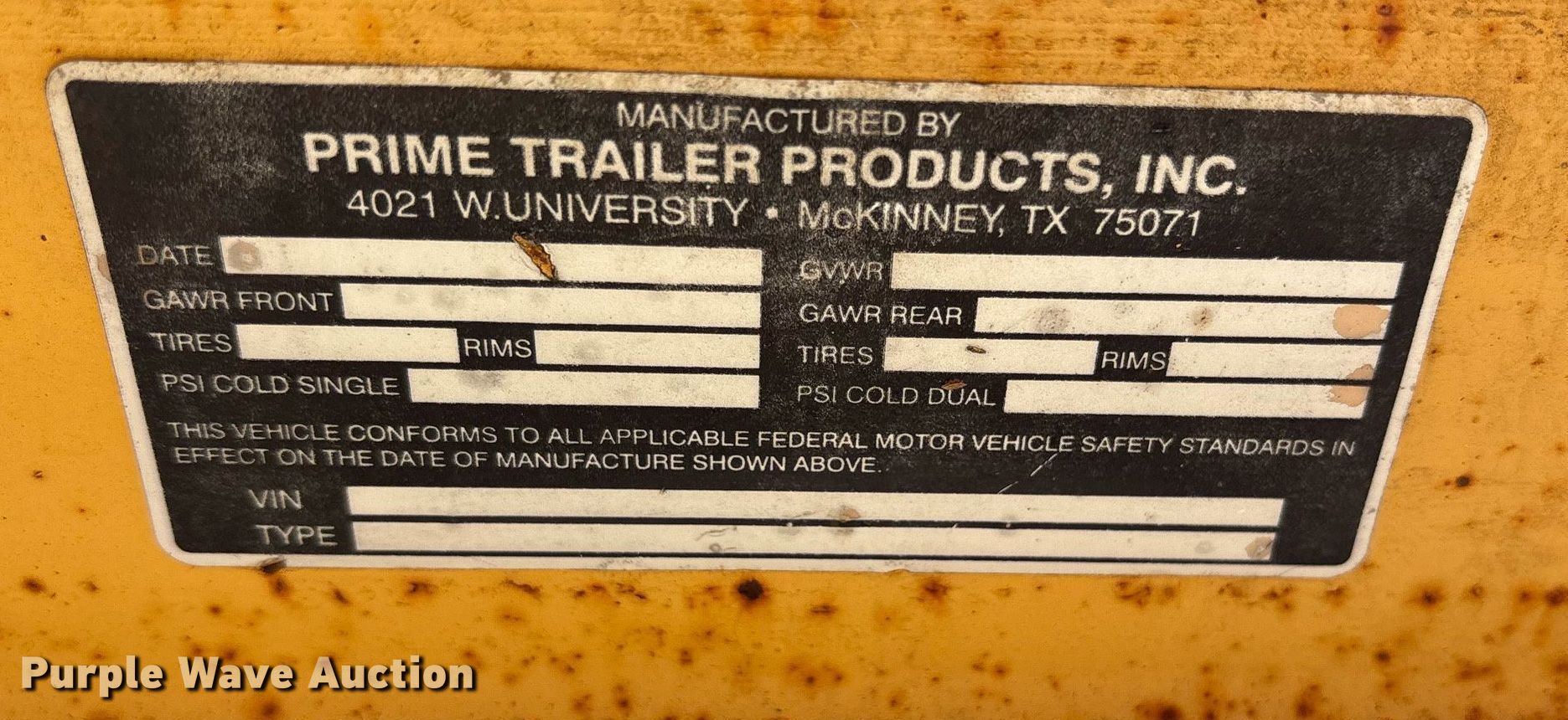 2007 Prime utility trailer. VIN: 1P9BU16287M460656. Dimensions Overall: 20' L x 8' 6" W, Deck: 16' L x 7' W, Side height: 13", Deck height: 2' 2", Ramps: Manual Length: 5'. Features Deck type: Wood. Chassis Ball hitch: 2 5/16", Landing gear: Single, Suspension: Spring, Brakes: Electric, Axles: Tandem. Tires Steel wheels, Size: ST225/90D16. Notes Contents not included. Texas title. Title distribution may be delayed up to 14 days from verification of funds. Silas White Construction. Garland, TX 75042
