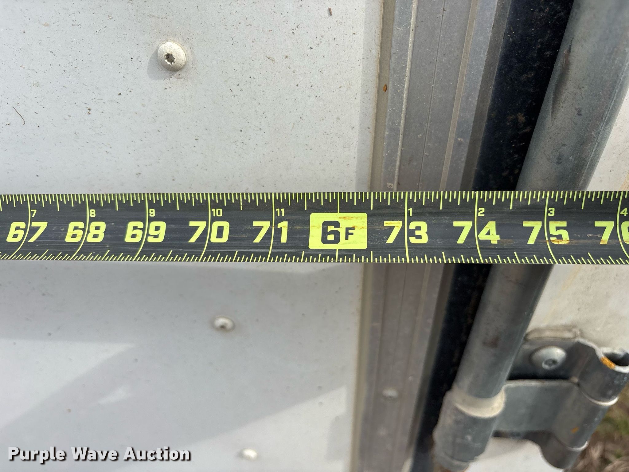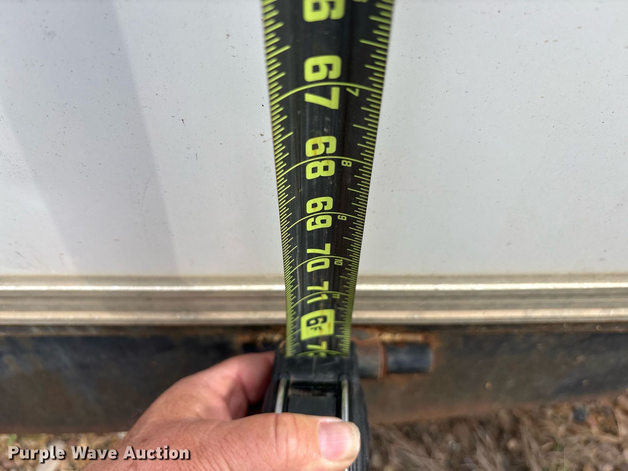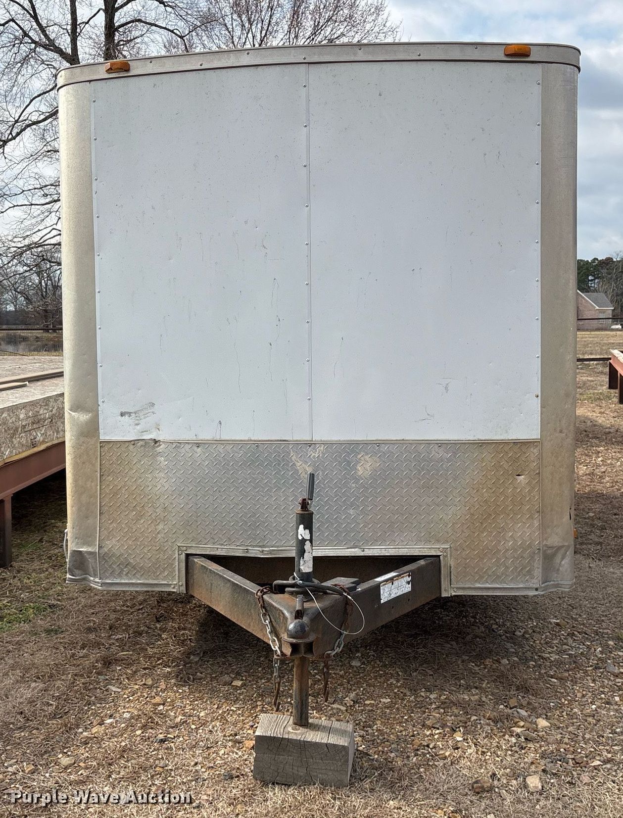 2014 Covered Wagon CW7X16TA2 enclosed cargo trailer. VIN: 53FBE1626EF012084. Dimensions Overall: 20' L x 8' 6" W, Body: 16' 6" L x 7' 1" W, Rear door / ramp 72" L x 74" W. Features Deck type: Wood, E-track rail system, Wall mounted toolbox. Chassis Ball hitch: 2 5/16", Landing gear: Single, Suspension: Spring, Brakes: Electric, Axles: Tandem, GVWR: 7,000 lbs, GAWR: 3,500 lbs. Tires Steel wheels, Size: ST205/75R15. Transfer of ownership documentation will be a bill of sale. Fitzgerald construction. Muse, OK 74949