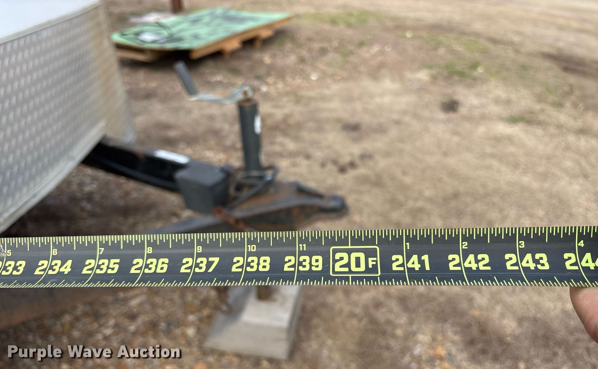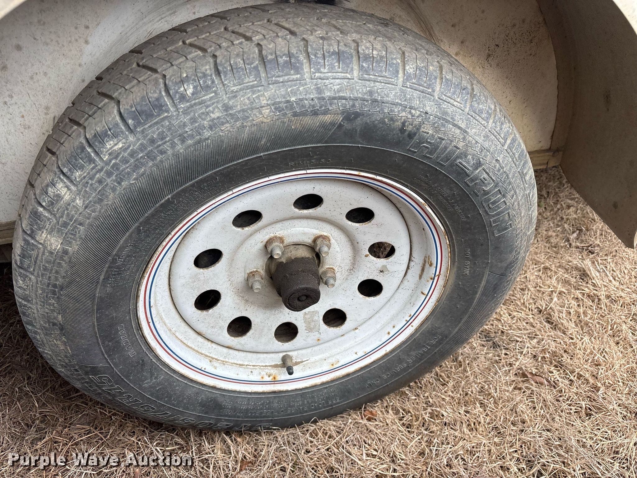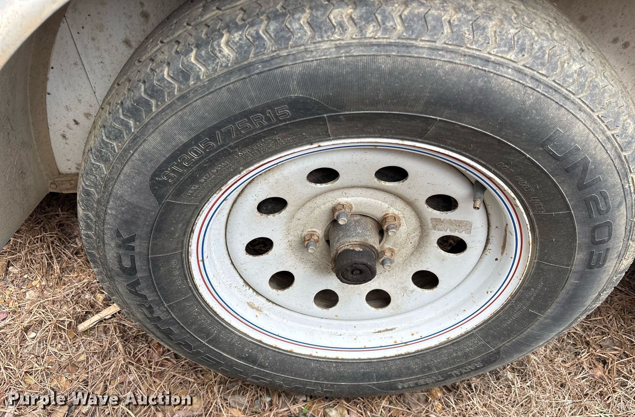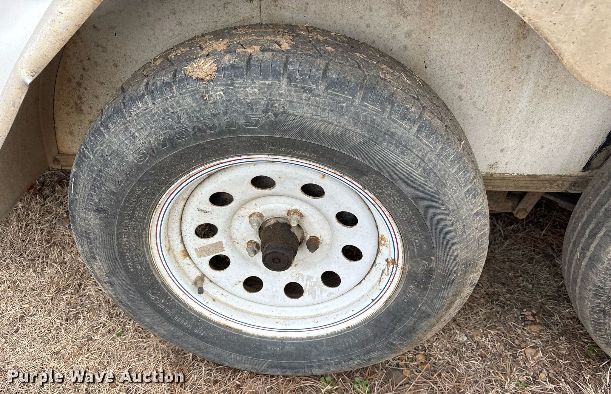 2014 Covered Wagon CW7X16TA2 enclosed cargo trailer. VIN: 53FBE1626EF012084. Dimensions Overall: 20' L x 8' 6" W, Body: 16' 6" L x 7' 1" W, Rear door / ramp 72" L x 74" W. Features Deck type: Wood, E-track rail system, Wall mounted toolbox. Chassis Ball hitch: 2 5/16", Landing gear: Single, Suspension: Spring, Brakes: Electric, Axles: Tandem, GVWR: 7,000 lbs, GAWR: 3,500 lbs. Tires Steel wheels, Size: ST205/75R15. Transfer of ownership documentation will be a bill of sale. Fitzgerald construction. Muse, OK 74949
