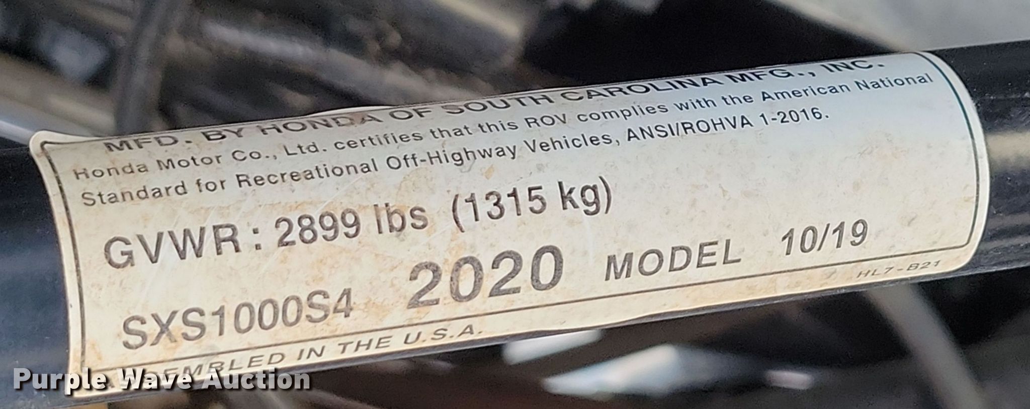 2020 Honda Talon 1000 X4 utility vehicle | SOLD! March 26 Vehicles and Equipment Auction