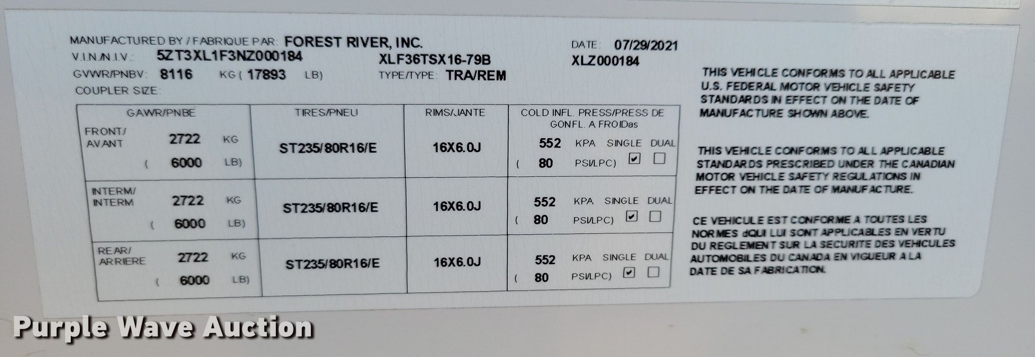Purple Wave is selling a used RV or Camper in South Dakota. This item is a 2022 Forest River XLR Boost 36TSX16 toy hauler camper with the following: Camper length: 45', VIN: 5ZT3XL1F3NZ000184