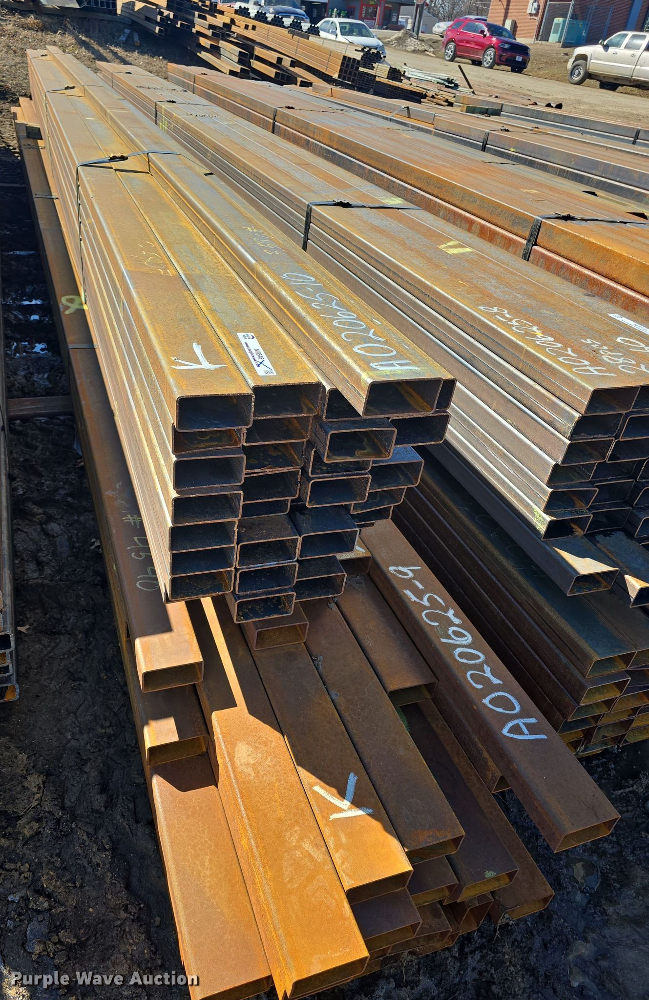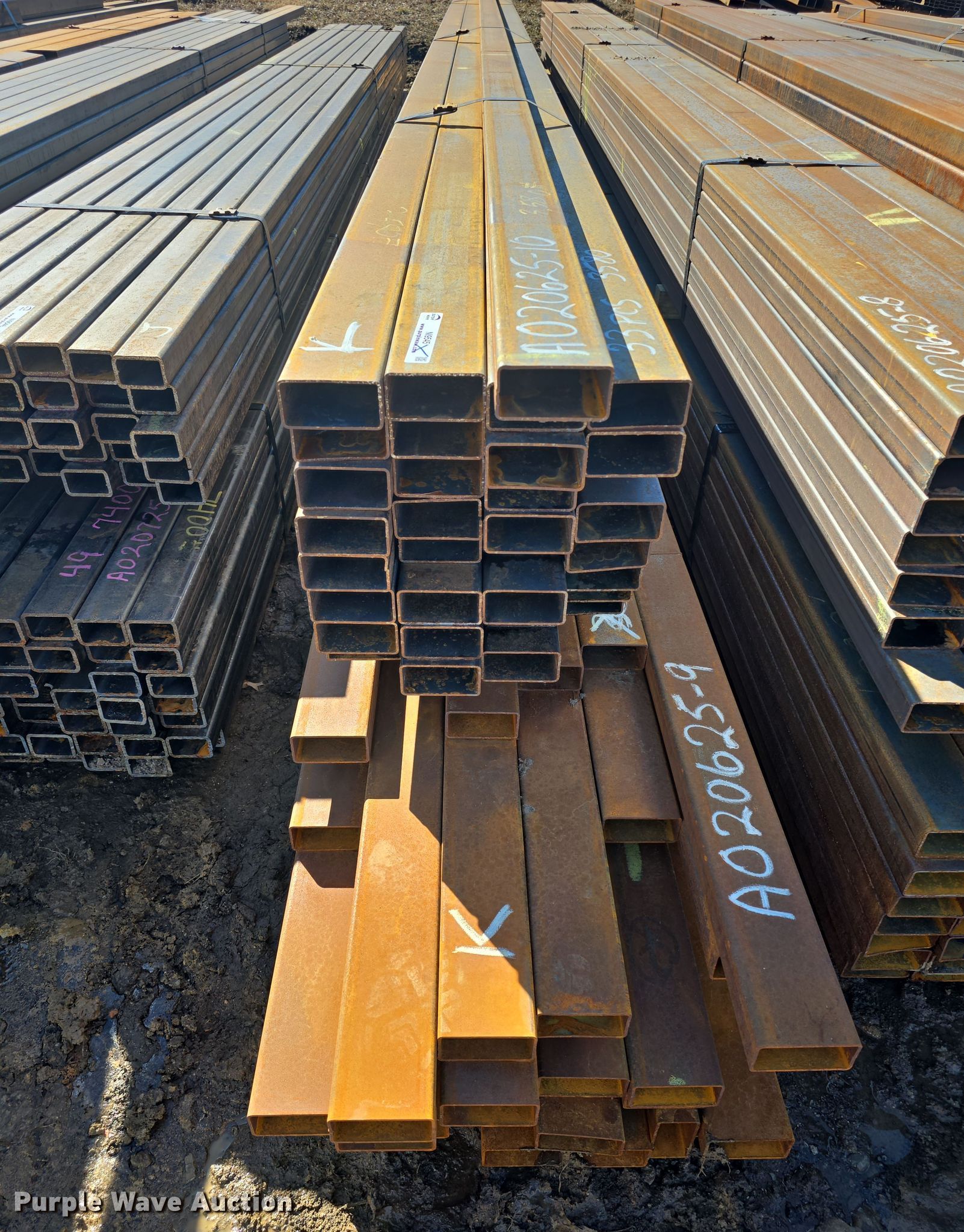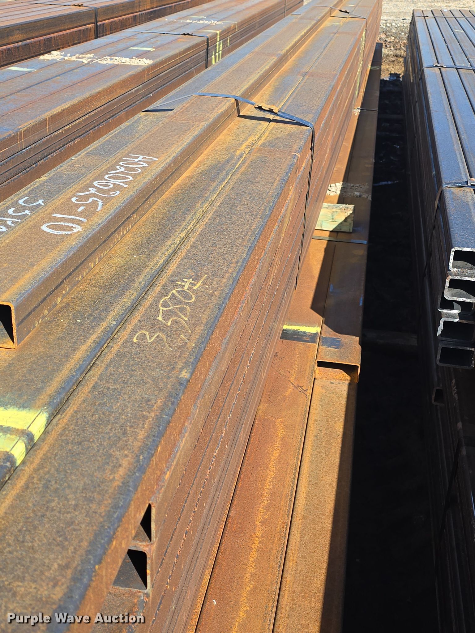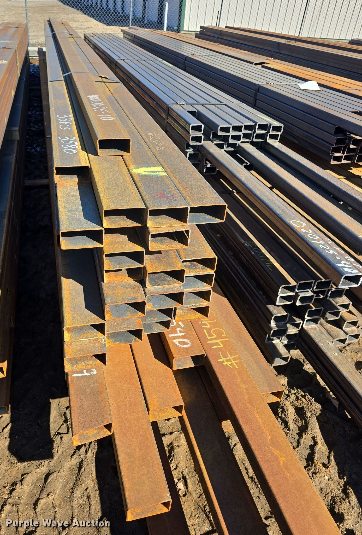 Purple Wave is selling a used Building Materials in Kansas. This item is a (75) pieces of metal with the following: (42) 4" x 2" x 11 gauge, Lengths: 20' to 27', Weight: 4,540 lbs, (33) 4" x 2" x 11 gauge, Lengths: 24' to 25', Weight: 3,580 lbs, Serial: 020625-9, 020625-10, Unit #: K