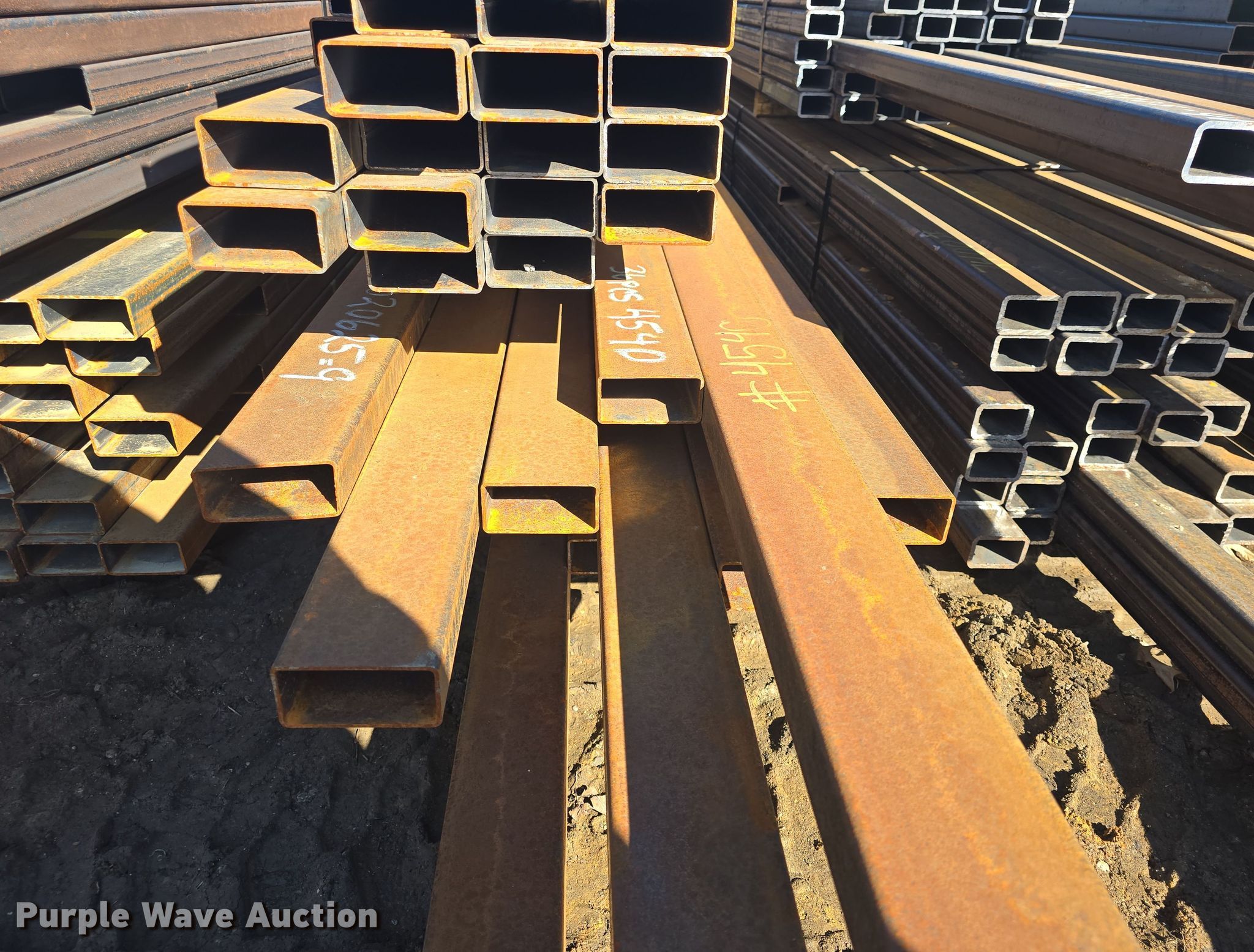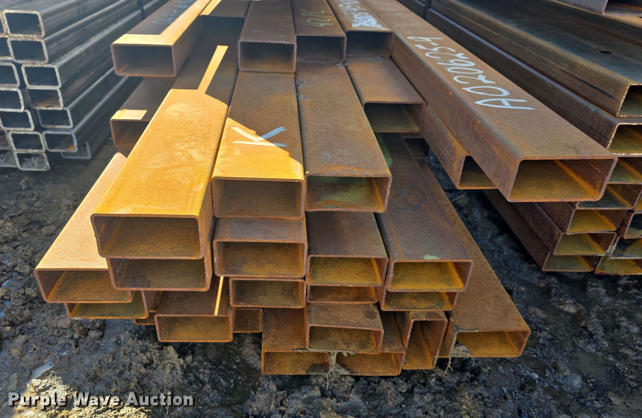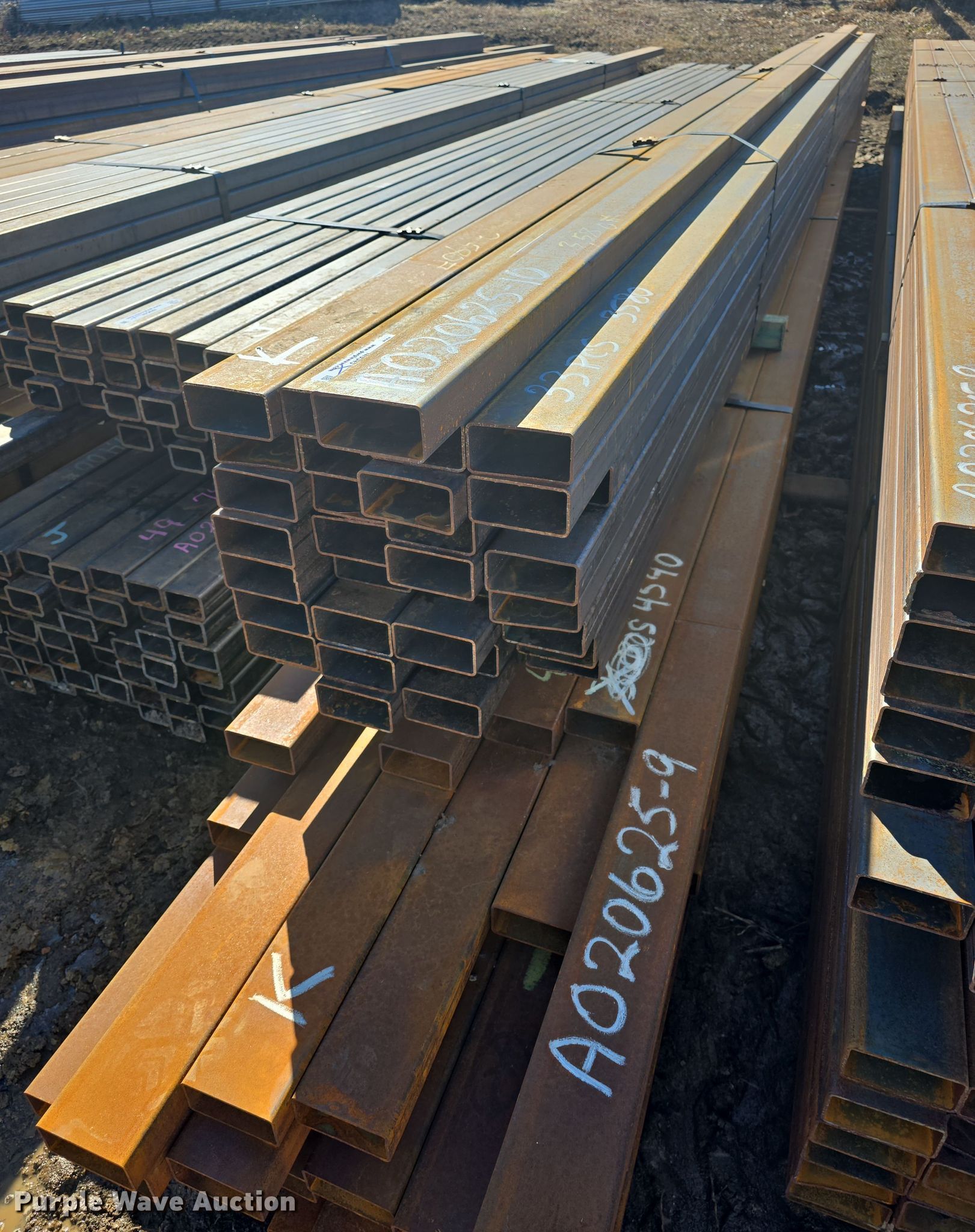Purple Wave is selling a used Building Materials in Kansas. This item is a (75) pieces of metal with the following: (42) 4" x 2" x 11 gauge, Lengths: 20' to 27', Weight: 4,540 lbs, (33) 4" x 2" x 11 gauge, Lengths: 24' to 25', Weight: 3,580 lbs, Serial: 020625-9, 020625-10, Unit #: K
