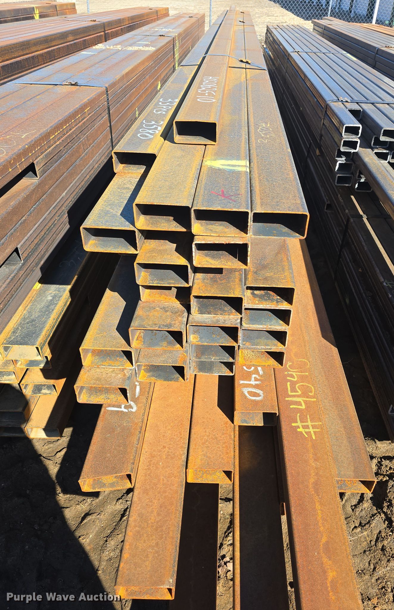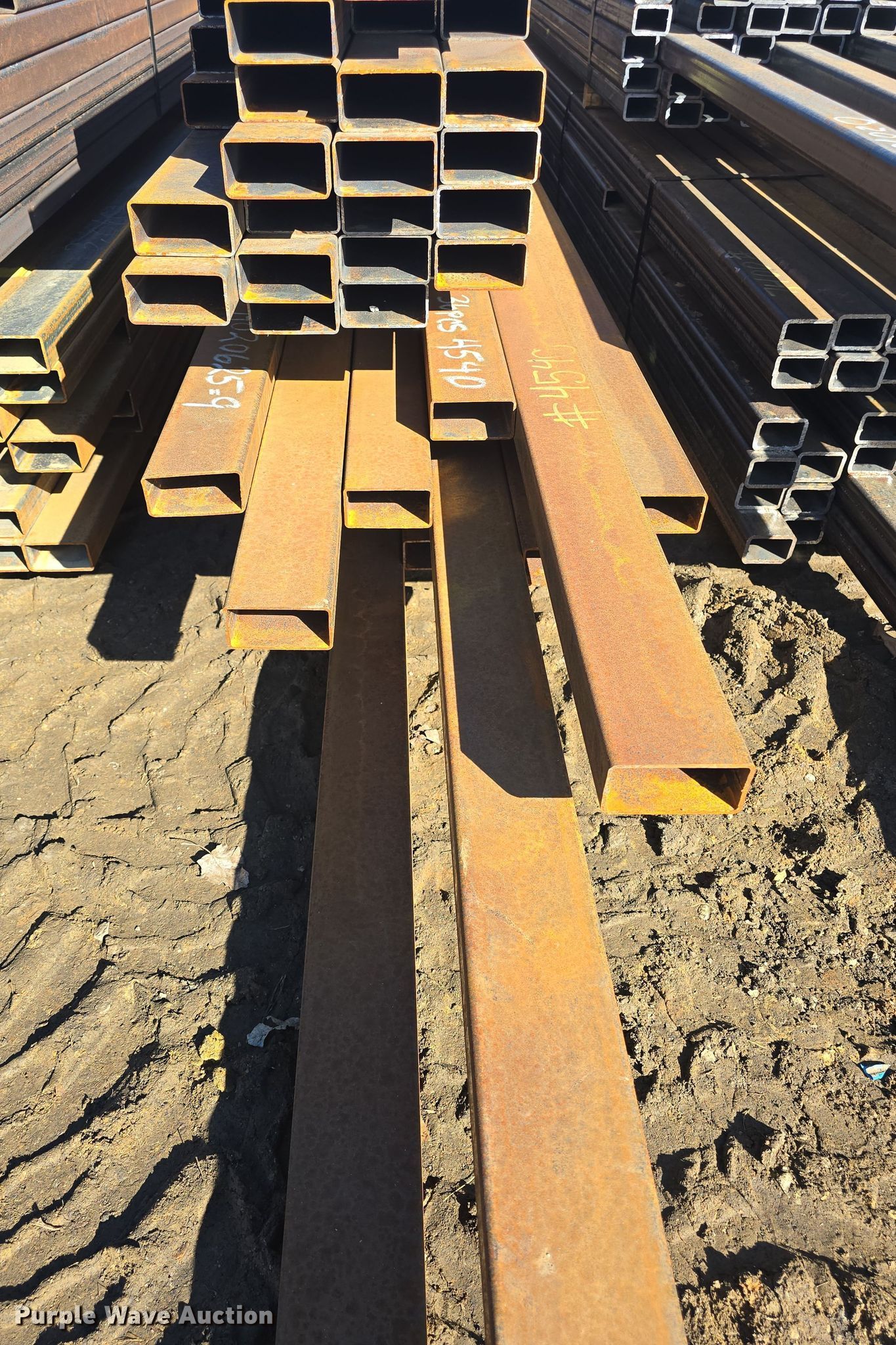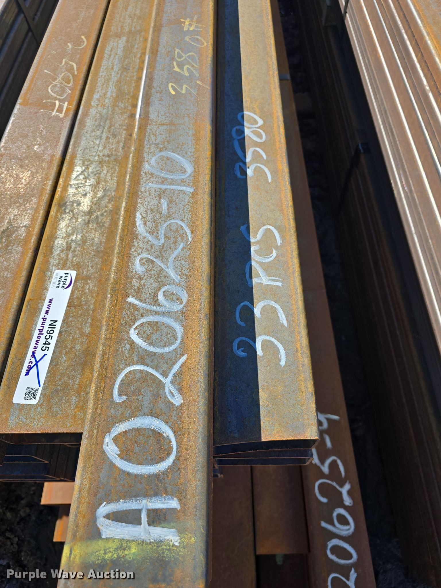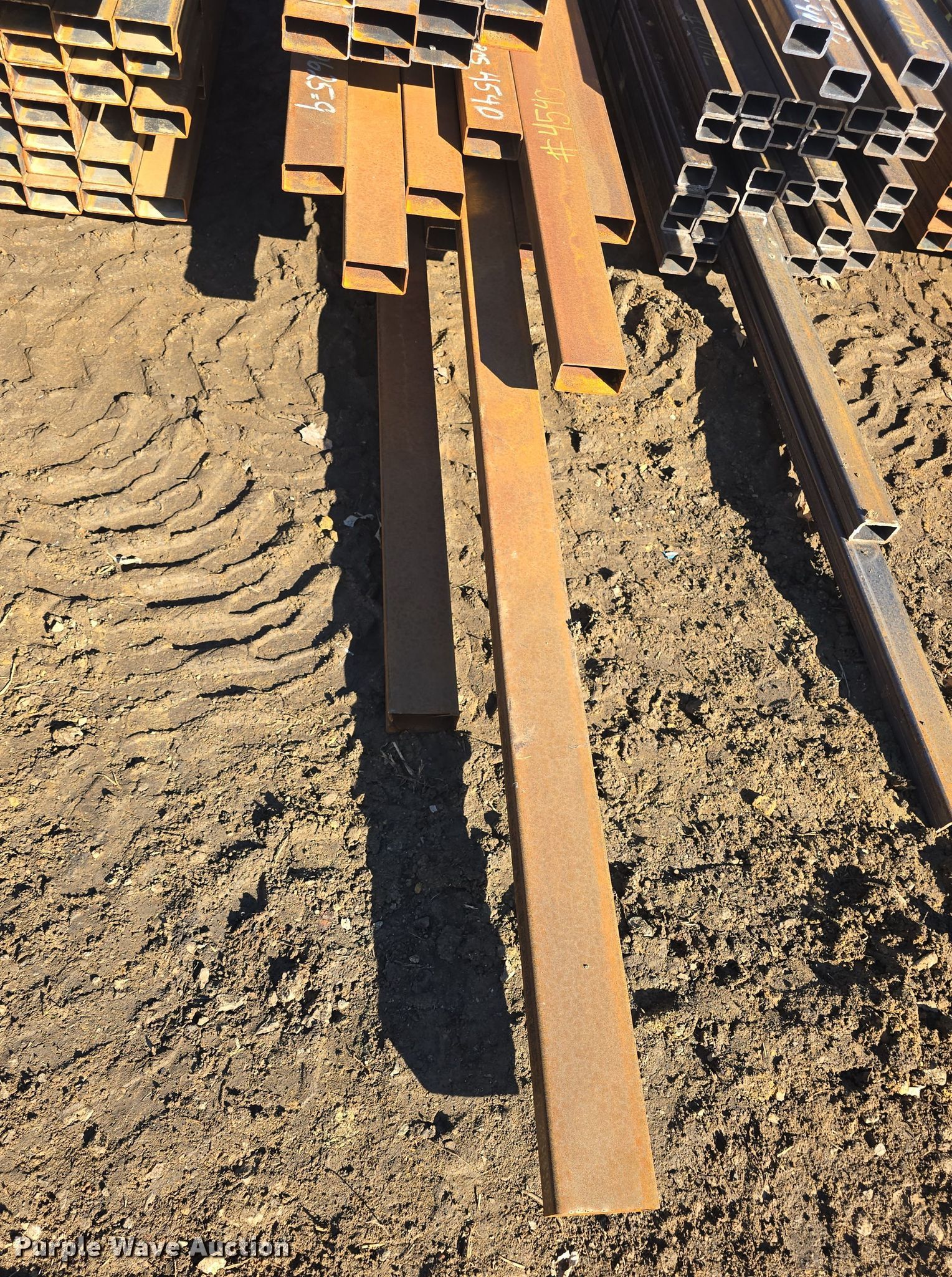 Purple Wave is selling a used Building Materials in Kansas. This item is a (75) pieces of metal with the following: (42) 4" x 2" x 11 gauge, Lengths: 20' to 27', Weight: 4,540 lbs, (33) 4" x 2" x 11 gauge, Lengths: 24' to 25', Weight: 3,580 lbs, Serial: 020625-9, 020625-10, Unit #: K