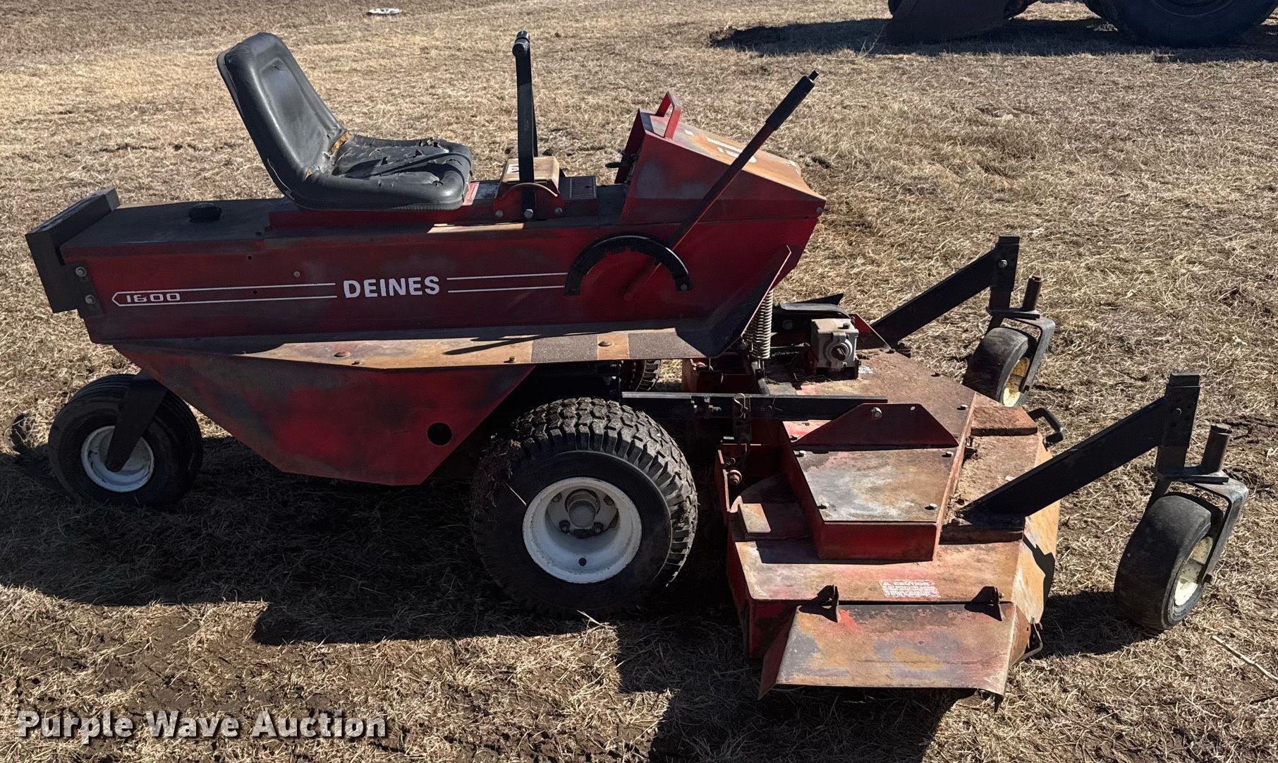 Purple Wave is selling a used Lawn Mower in Kansas. This item is a Deines 1800 ZTR lawn mower with the following: Hours: 846 on meter, Cutting width: 60", Serial: K1493