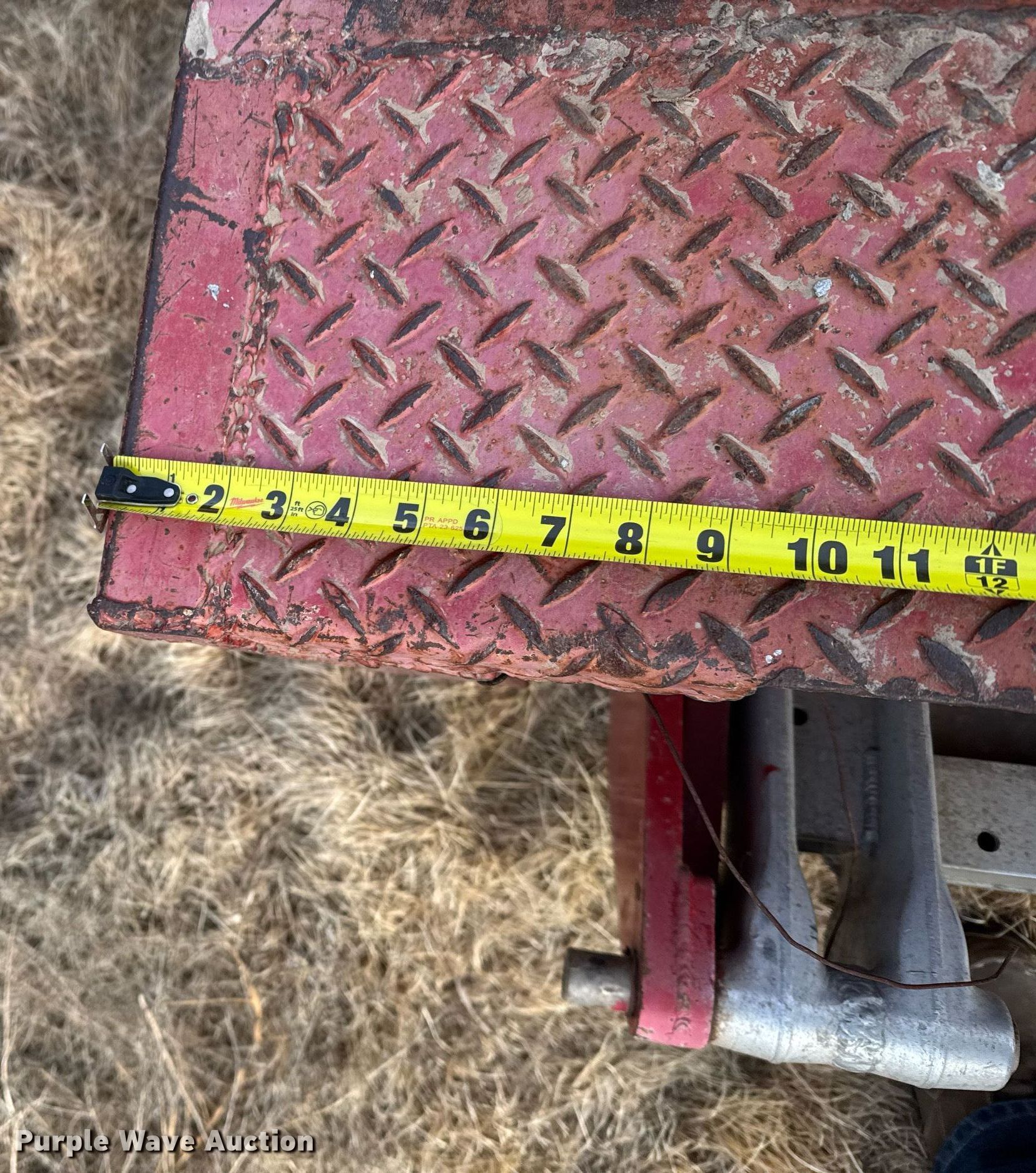 Flatbed. 14' 5" L x 94" W, End gate lift 28" L x 72" W. Notes Contents not included. Oakley, KS 67748