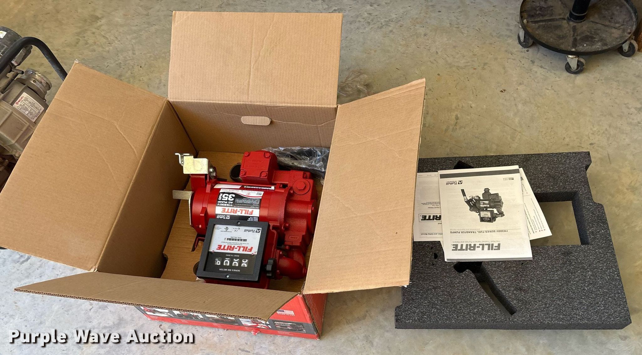 Purple Wave is selling a used Pump in Texas. This item is a Fill-Rite FR300V pump with the following: GPM: 35, Volts: 115/230