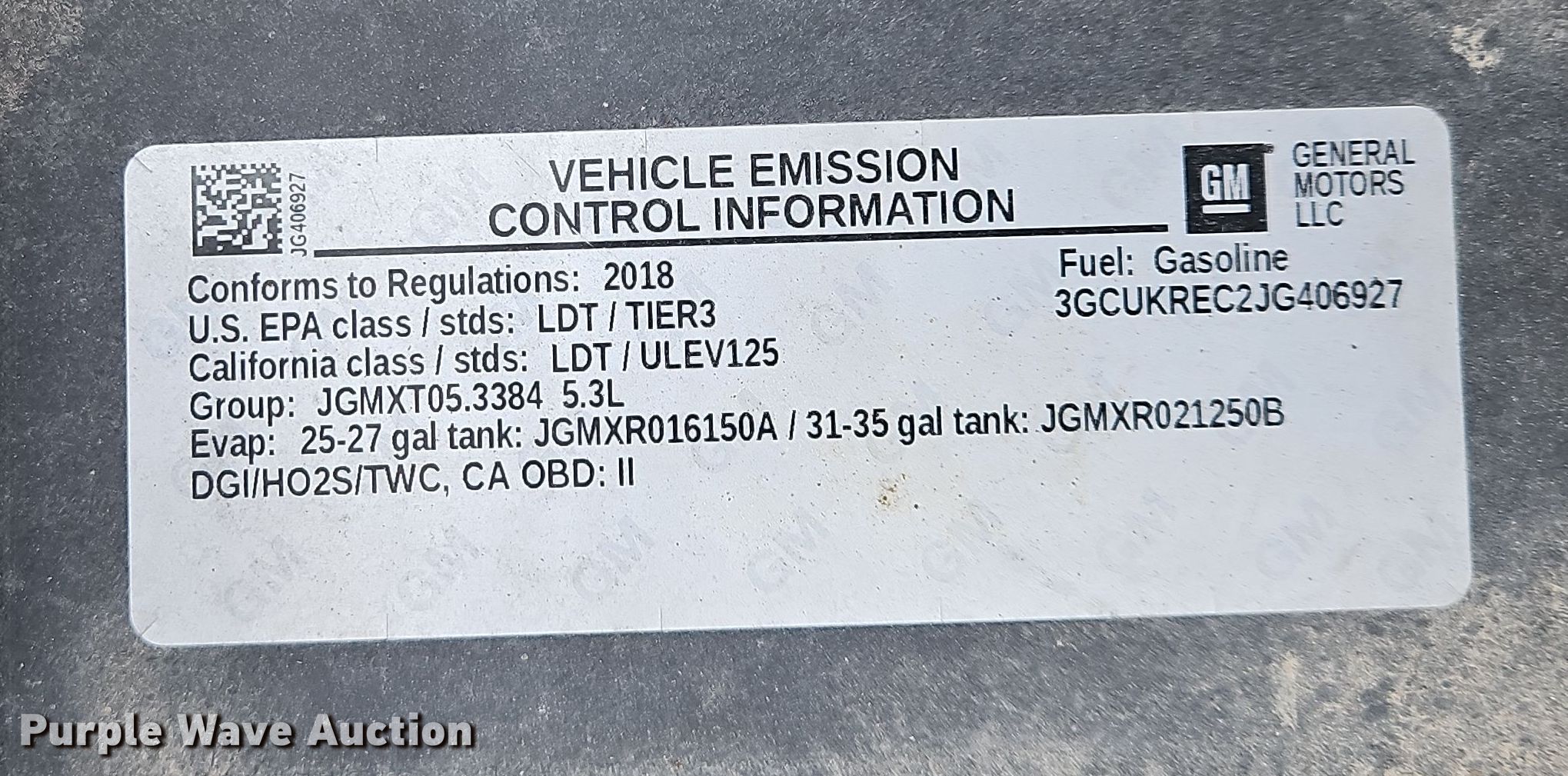 2018 Chevrolet Silverado 1500 Crew Cab pickup truck. Miles: 169,373 on odometer, VIN: 3GCUKREC2JG406927. Engine Displacement: 5.3L V8 OHV, Cylinders: 8, Fuel type: Gas. Transmission Automatic, Four wheel drive. Interior AC, Heat, Seat: Power driver, Heated mirrors, Power windows, Power locks, Cruise control, Backup camera. Tires Size: 265/70R17. Notes Dash warning indicator: TPMS. View repairs. Kansas title. Title distribution may be delayed up to 14 days from verification of funds. Manhattan, KS 66502