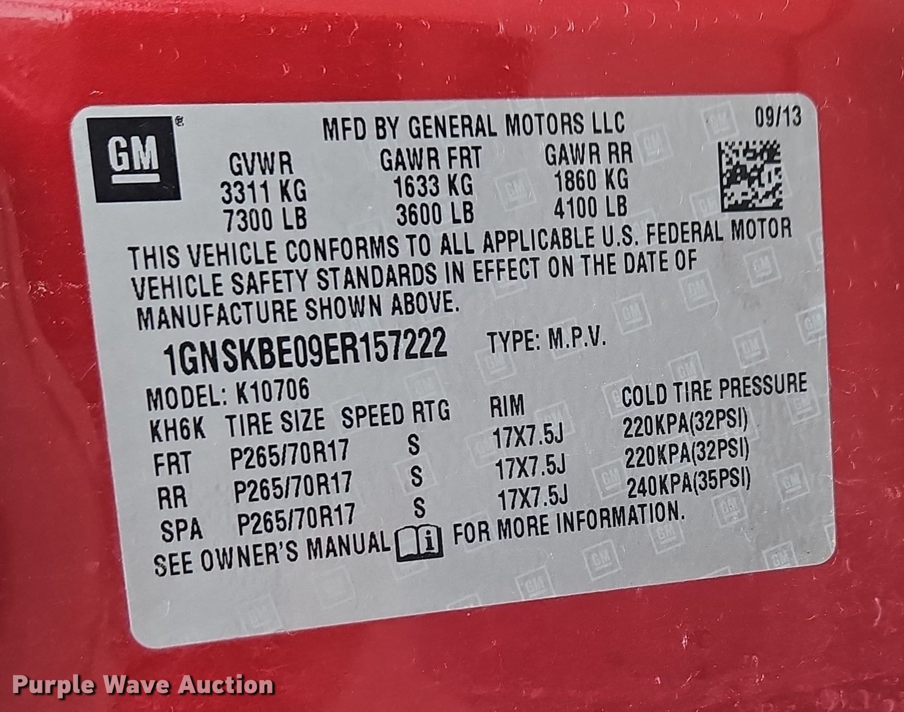 - VIN: 1GNSKBE09ER157222