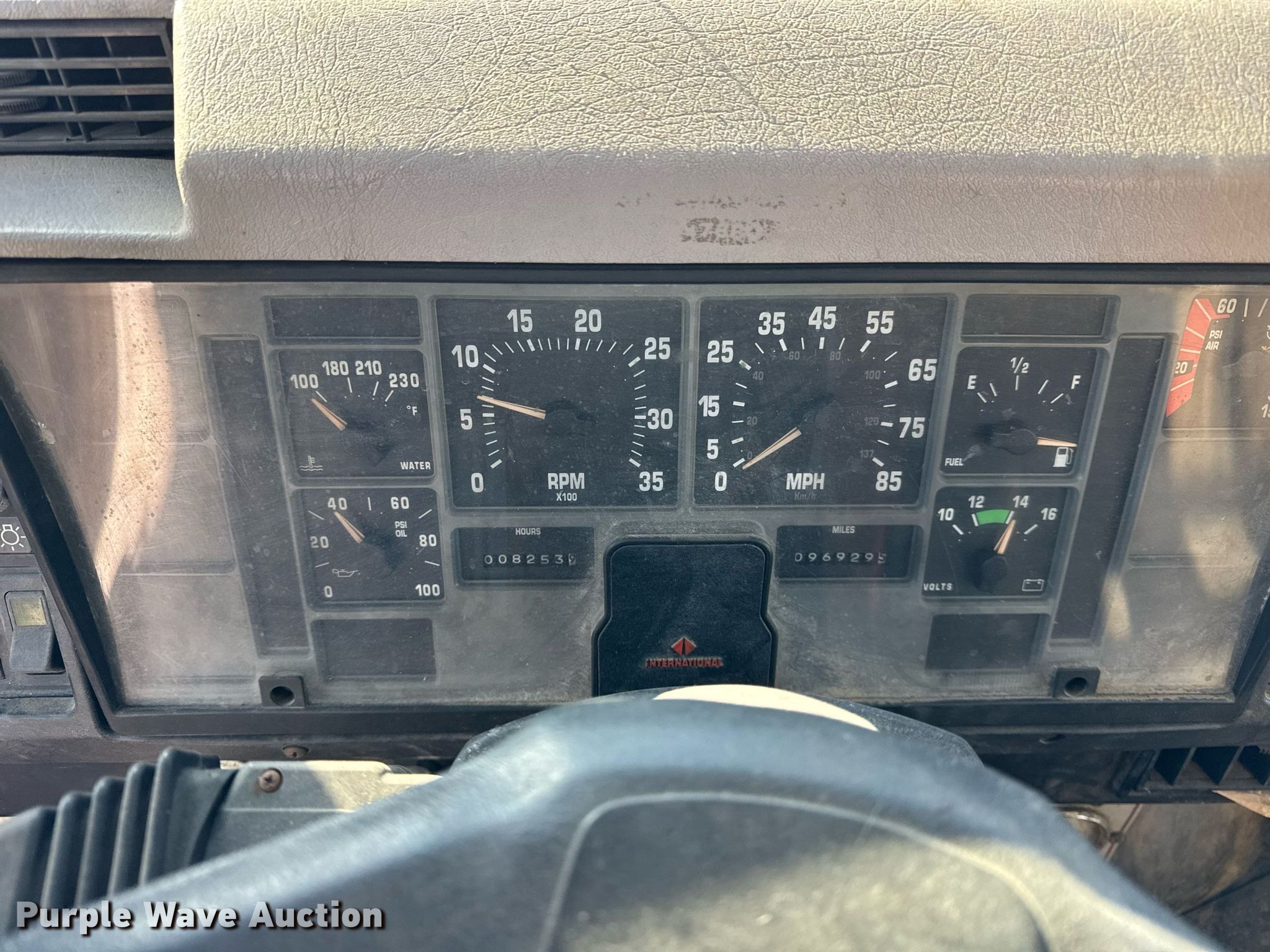 1991 International 7100 vacuum truck. Miles: 96,930 on odometer, Hours: 8,254 on meter, Miles or hours may vary, unit still in use, VIN: 1HSHANUN4MH377416. Engine International DT466, Displacement: 7.6L, Cylinders: 6, Fuel type: Diesel. Transmission Manual, Speed: 6. Chassis Axles: Single, Suspension: Spring, Brakes: Air, PTO. Interior Heat. Features Tank bed 1991 IME Inc M20-OD-PB8H-SH, Capacity: 2,500 gallons, Rear outlet: 4". Tires Size: 285/75R22.5. Notes Windshield chipped or cracked. Illinois title. Title distribution may be delayed up to 14 days from verification of funds. D&D Sewer. Lincoln, IL 62656