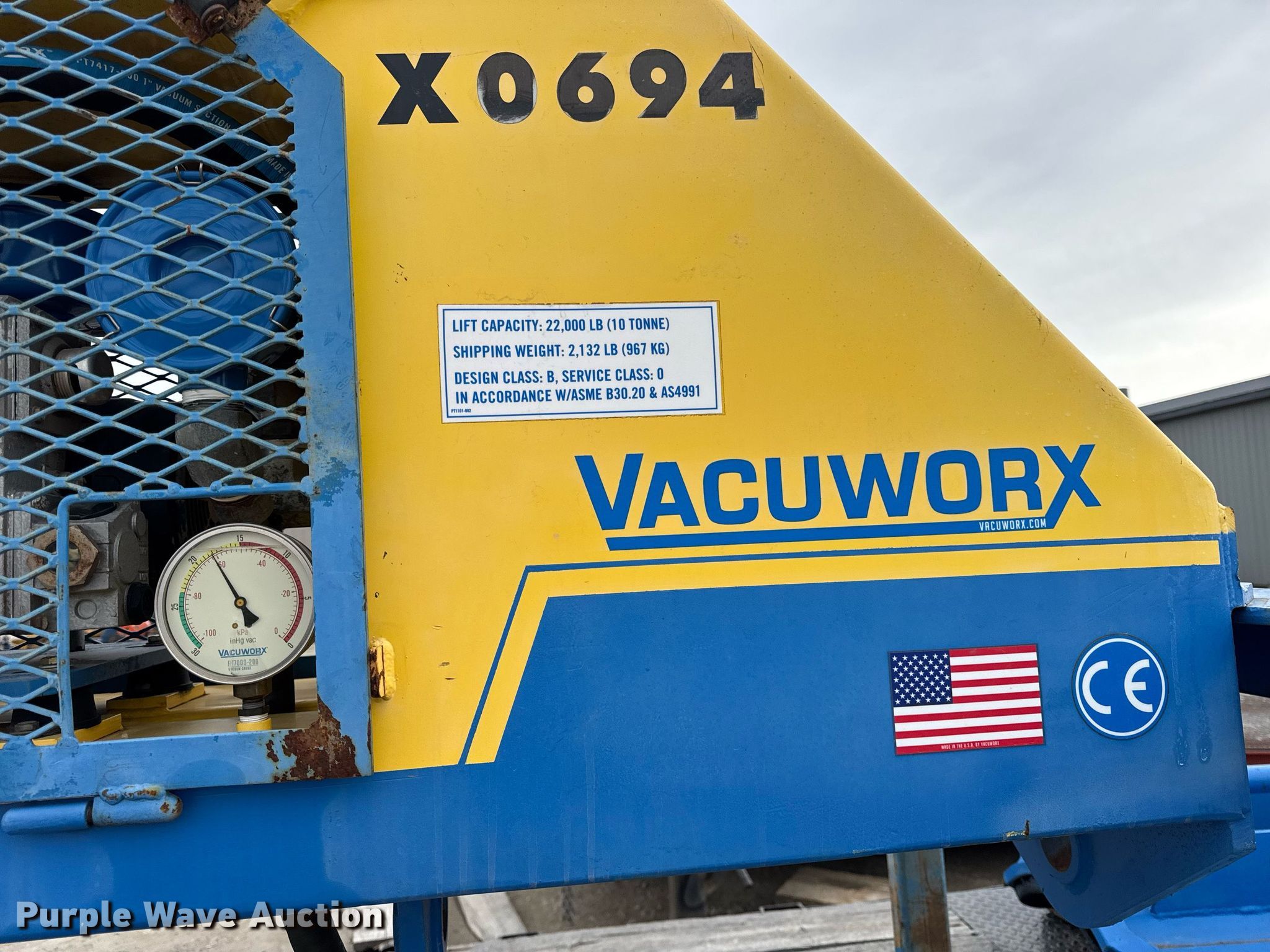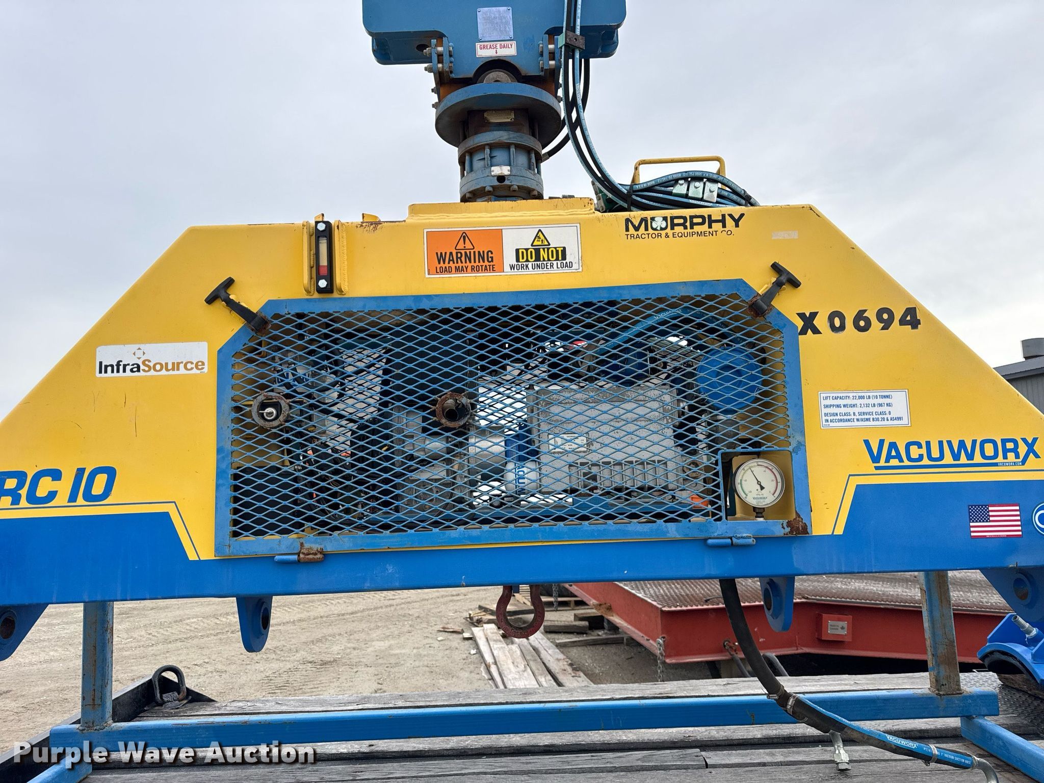 Purple Wave is selling a used Excavator Attach. in Illinois. This item is a Vacuworx RC10 vacuum pipe lifter with the following: Hours: 352 on meter