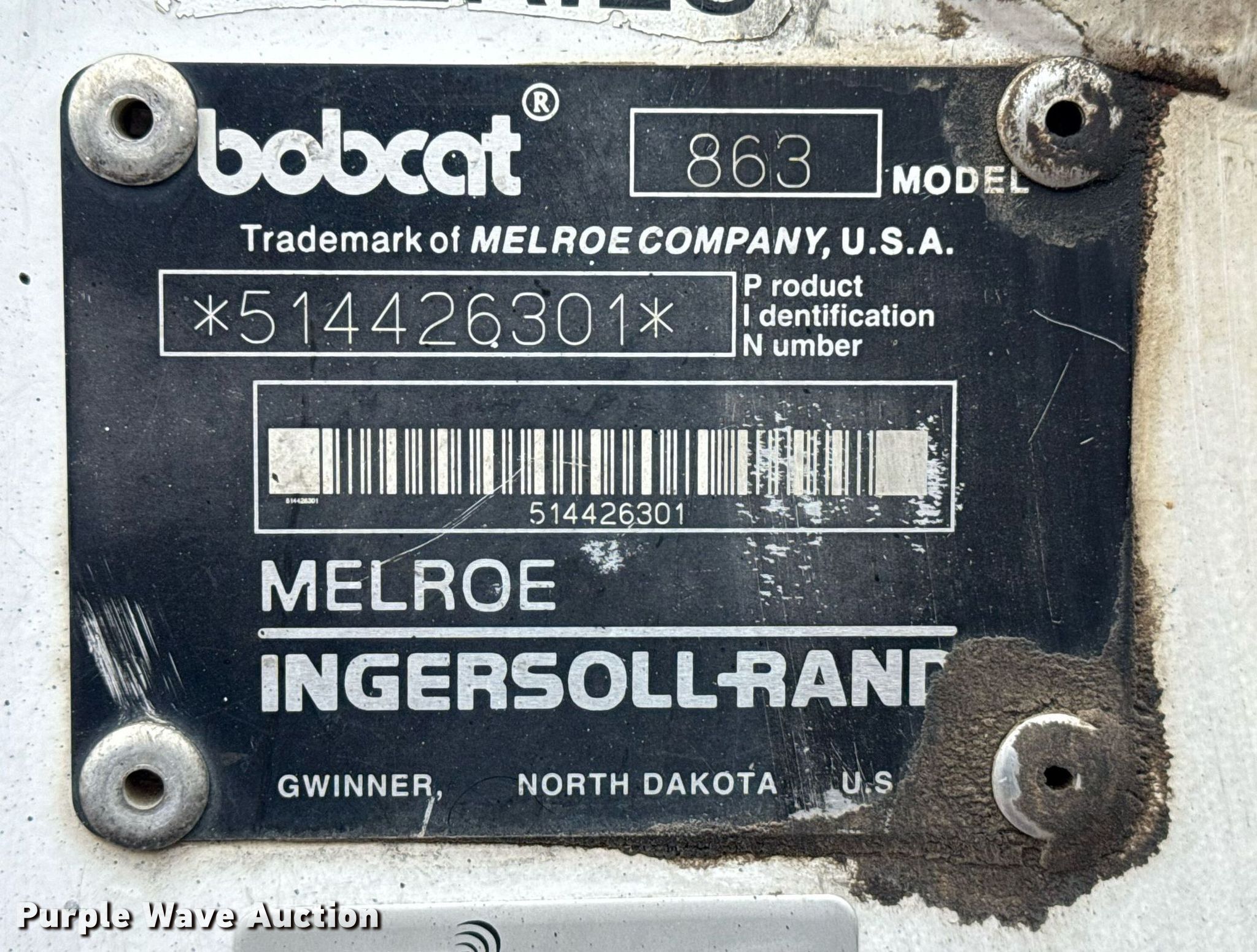 Purple Wave is selling a used Skid Steer Loader in Oklahoma. This item is a 1998 Bobcat 863 skid steer loader with the following: Hours: 2,066 on meter, Serial: 514426301