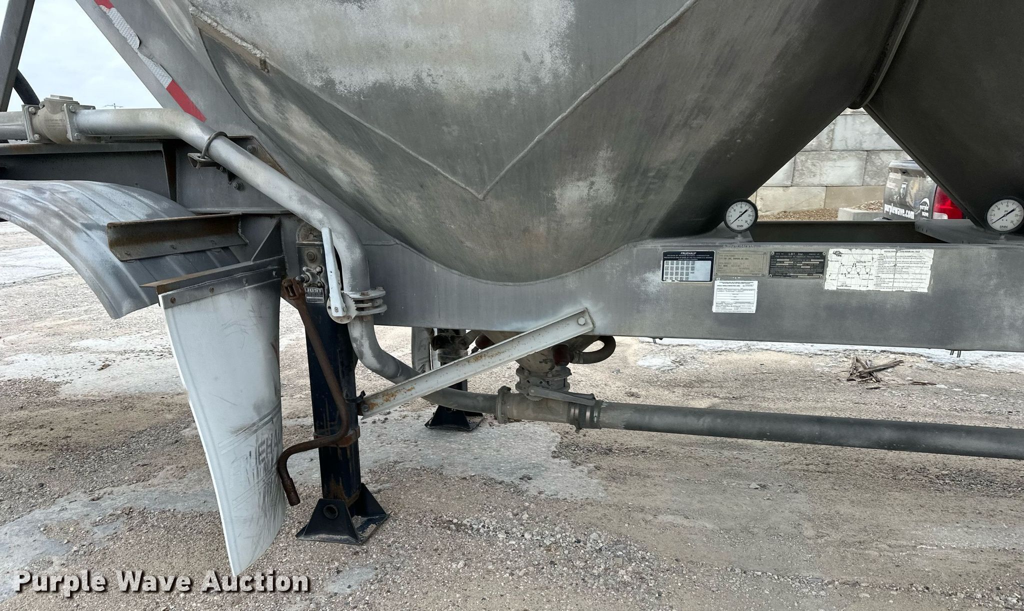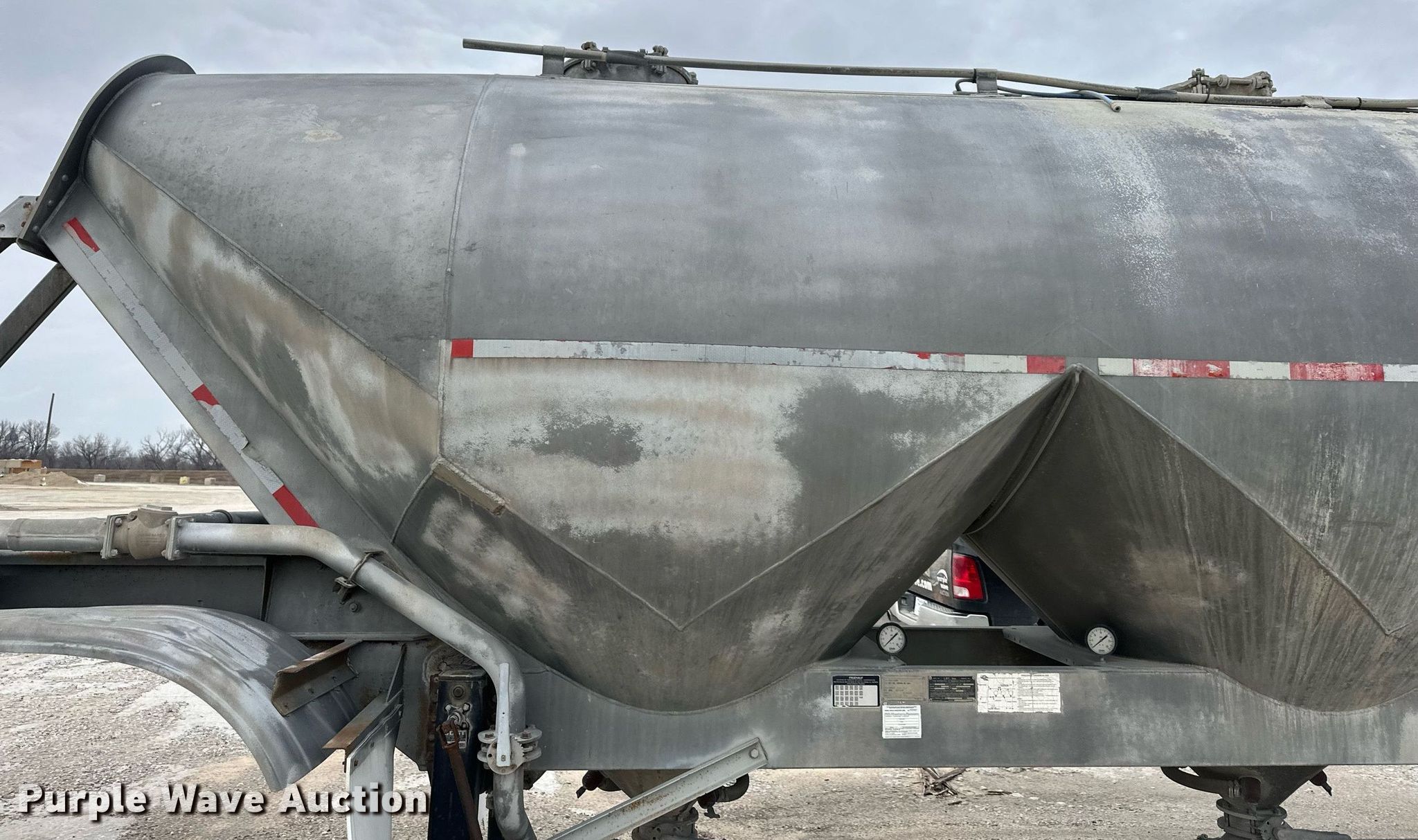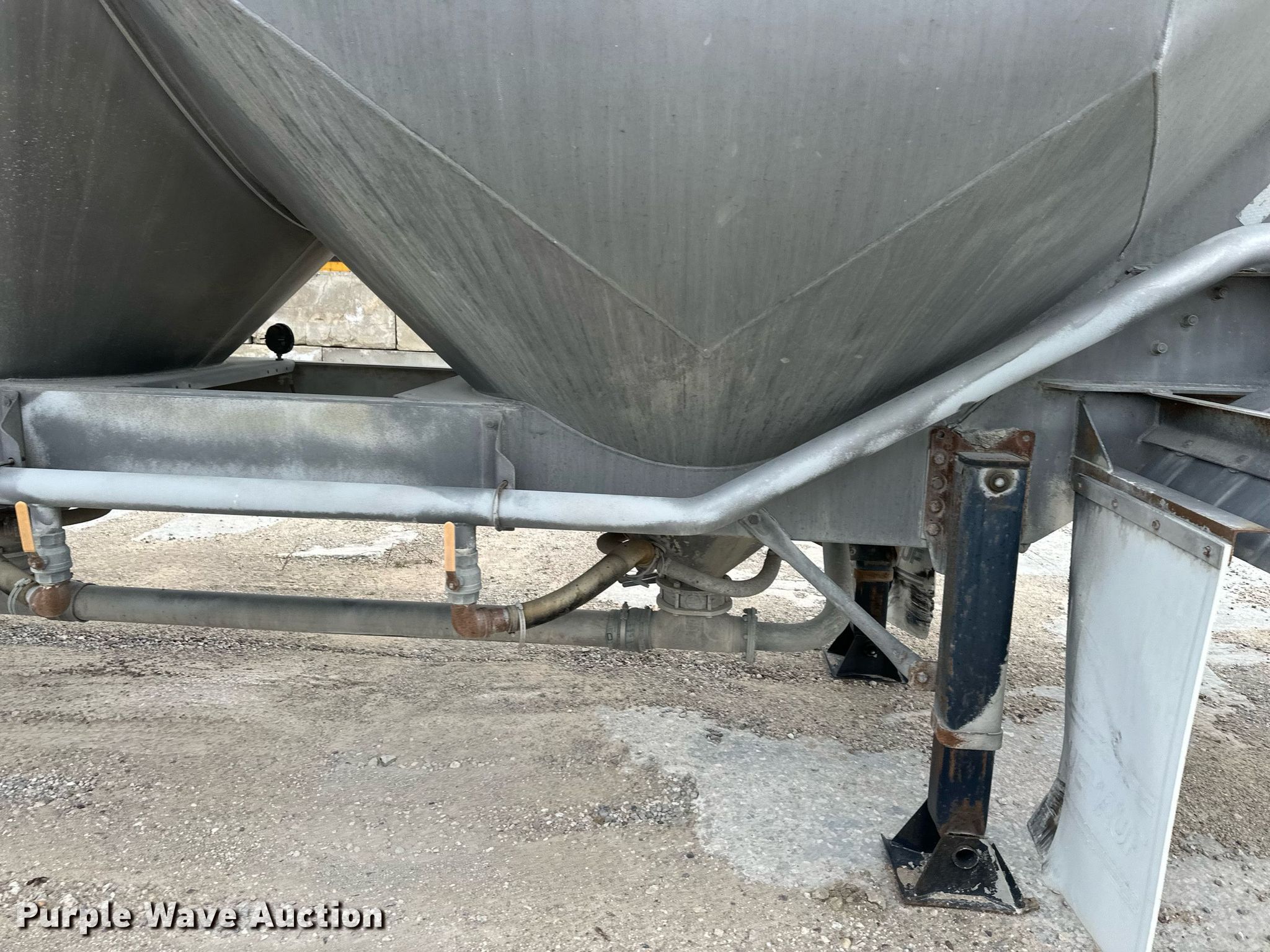 1998 Fruehauf HAB-HE2-J1000 pneumatic dry bulk trailer. VIN: 4J8B04221WT014003. Dimensions Overall: 42' L x 102" W. Features Tank type: Aluminum, Compartments: 3, Outlet valves: 1 Size: 4", No. of manways/manholes: 3. Chassis Landing gear: Dual, Suspension: Air, Brakes: Air, Axles: Tandem, GVWR: 68,000 lbs, GAWR: 20,000 lbs. Tires Steel wheels, Size: 11R22.5. Kansas title. Title distribution may be delayed up to 14 days from verification of funds. The Monarch Cement Company (Kansas Sand & Concrete). Topeka, KS 66608