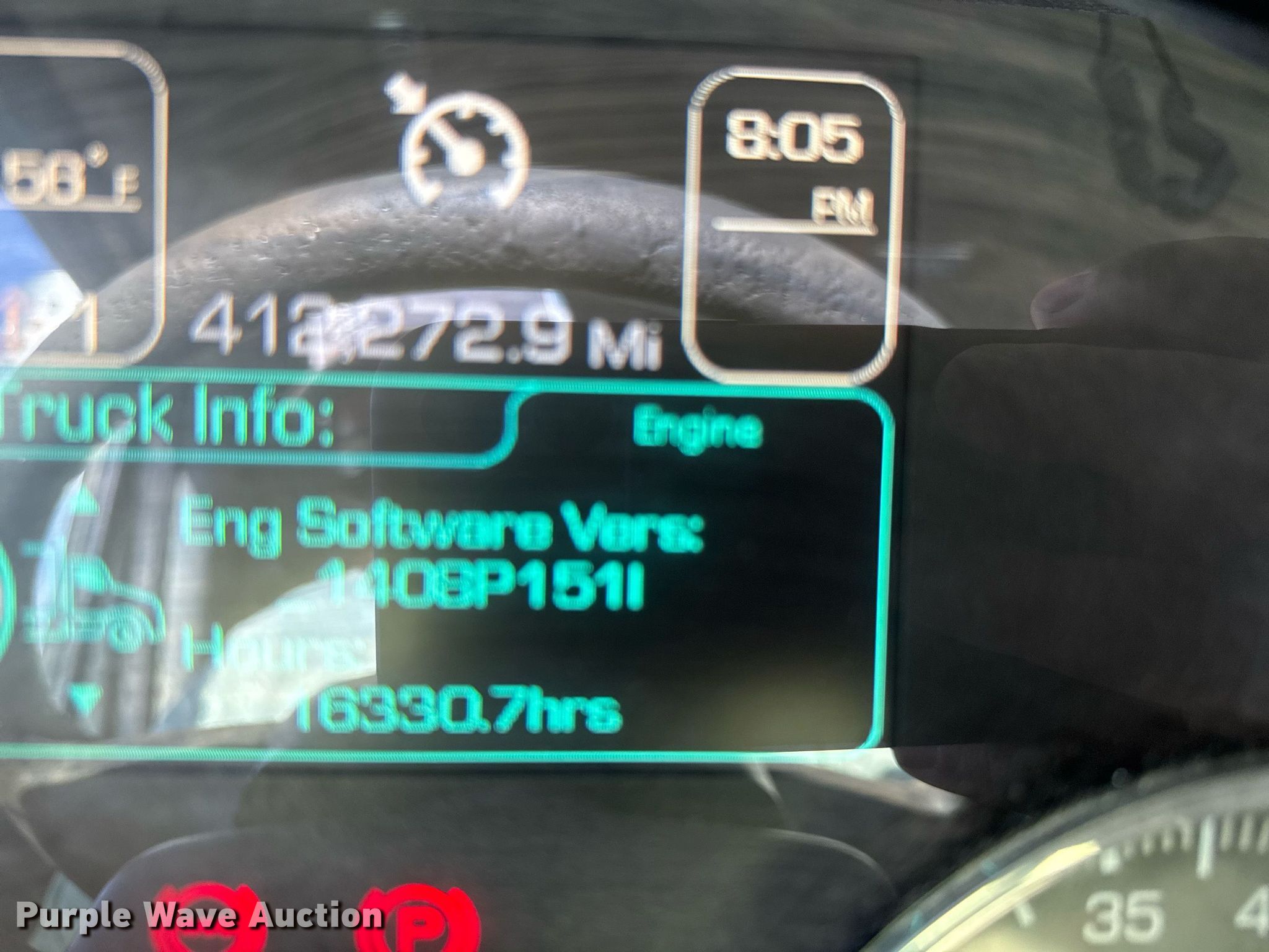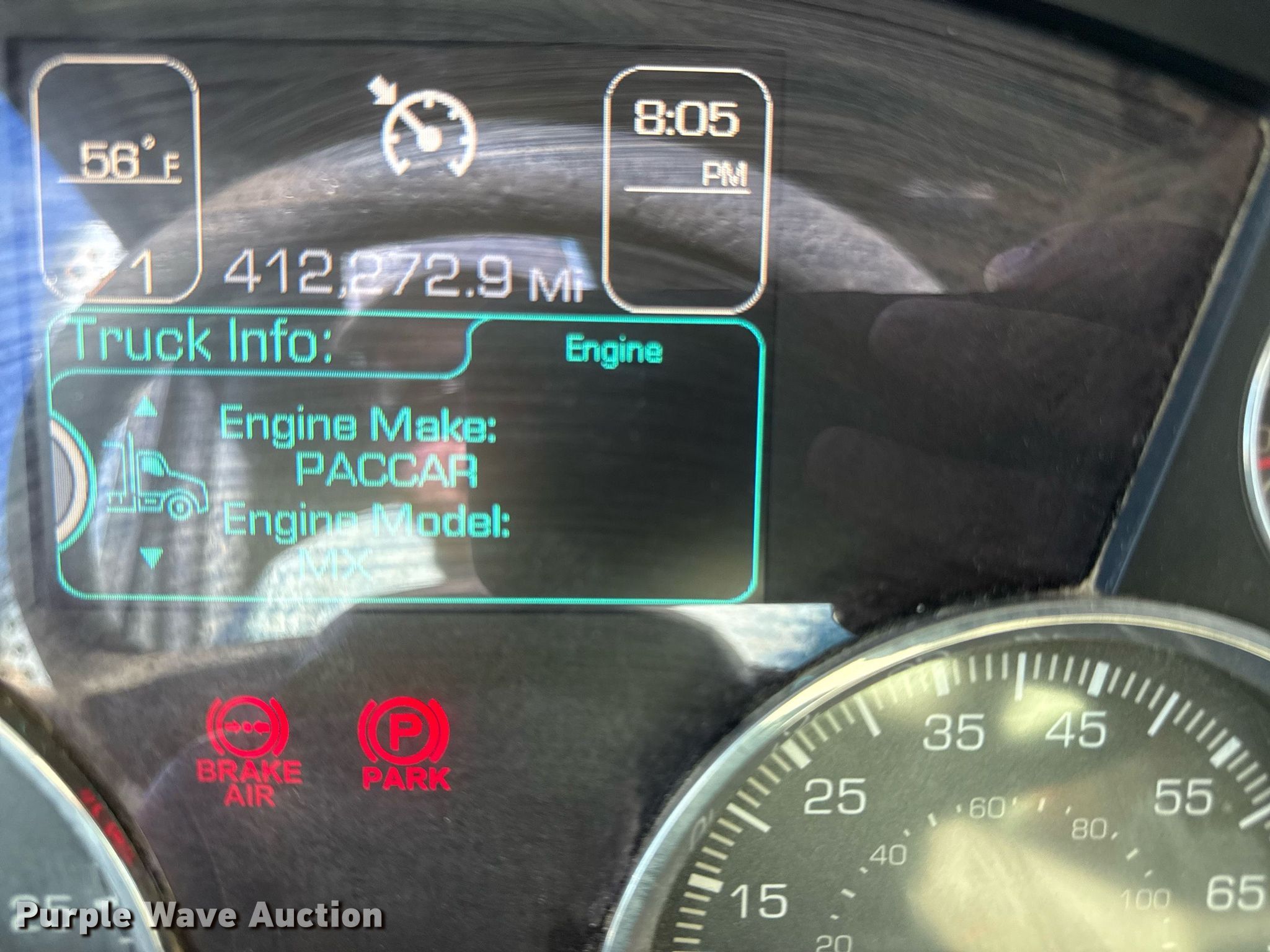 2014 Kenworth T680 semi truck. Miles: 412,273 on odometer, Hours: 16,331 on meter, VIN: 1XKYDP9X6EJ409559. Engine Paccar MX-13, Serial: Y042229, Displacement: 12.9L, Cylinders: 6, Fuel type: Diesel, Engine brake. Transmission Eaton Fuller, Manual, Speed: 13. Chassis Axles: Tandem, Gear ratio: 3.36, Differential lock: Inter-axle, Suspension: Air Dump valves, Brakes: Air, PTO, Wet kit, GVWR: 50,000 lbs FAWR: 12,000 lbs, IAWR: 19,000 lbs, RAWR: 19,000 lbs. Interior AC, Heat, Power windows, Power locks, Cruise control, Air ride cab. Features Deck plate: Aluminum, Fifth wheel type: Air operated, Sliding, Fuel tank: Dual. Tires Size: 11R24.5. Kansas title. Title distribution may be delayed up to 14 days from verification of funds. Shilling Construction, Inc. Manhattan, KS 66502