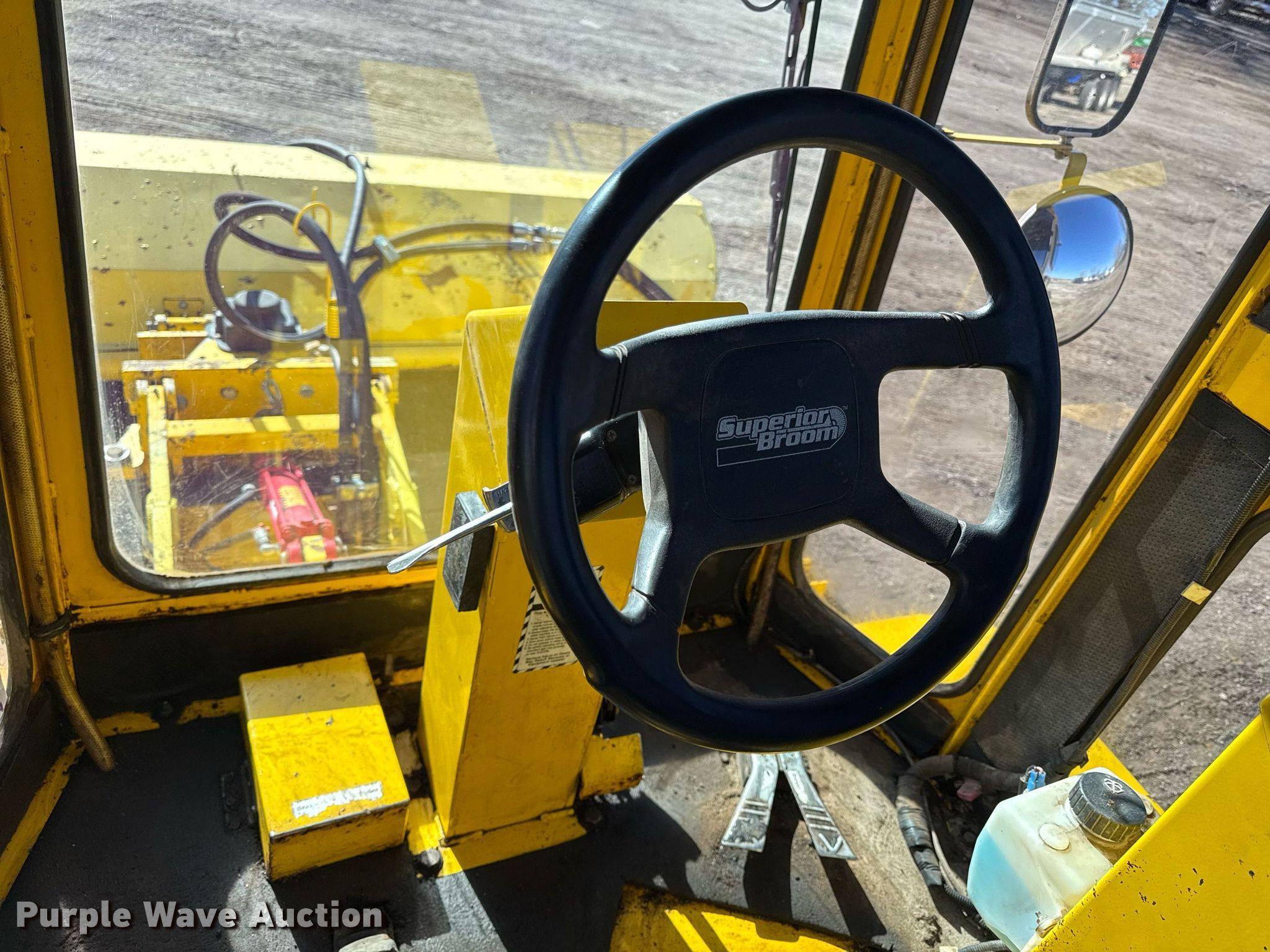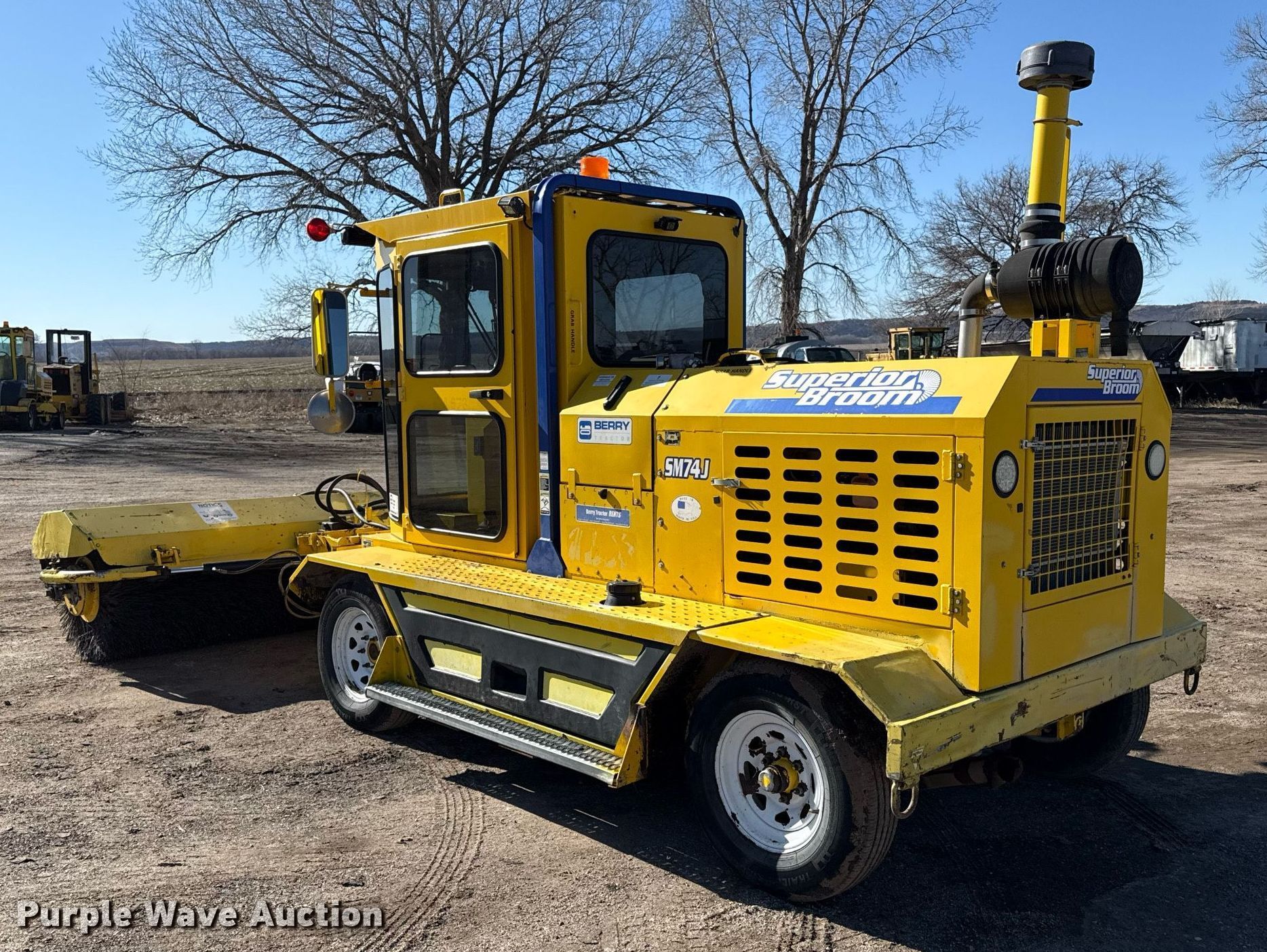 2018 Superior Broom SM74-J broom. Hours: 3,604 on meter, Serial: 918450. Engine John Deere 4045TFC03, Serial: PE4045U068627, Displacement: 4.5L, Cylinders: 4, Fuel type: Diesel. Transmission Hydrostatic. Chassis Brakes: Hydraulic. Operators station Enclosed cab, AC, Heat, Backup camera. Features Broom Width: 96", Water spray system Capacity: 150 gallons. Tires Size: 225/75R15. This is worksite support equipment and will not come with a title. Transfer of ownership documentation will be a bill of sale. Shilling Construction, Inc. Manhattan, KS 66502