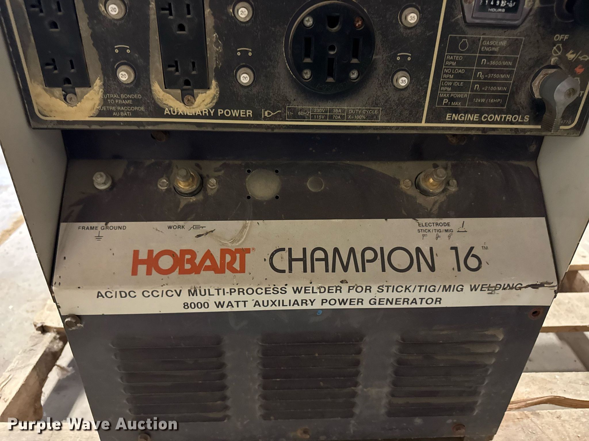 Purple Wave is selling a used Welder (Manual) in Iowa. This item is a Hobart Champion 16 welder with the following: Hours: 2,149 on meter, Serial: 296WR03258