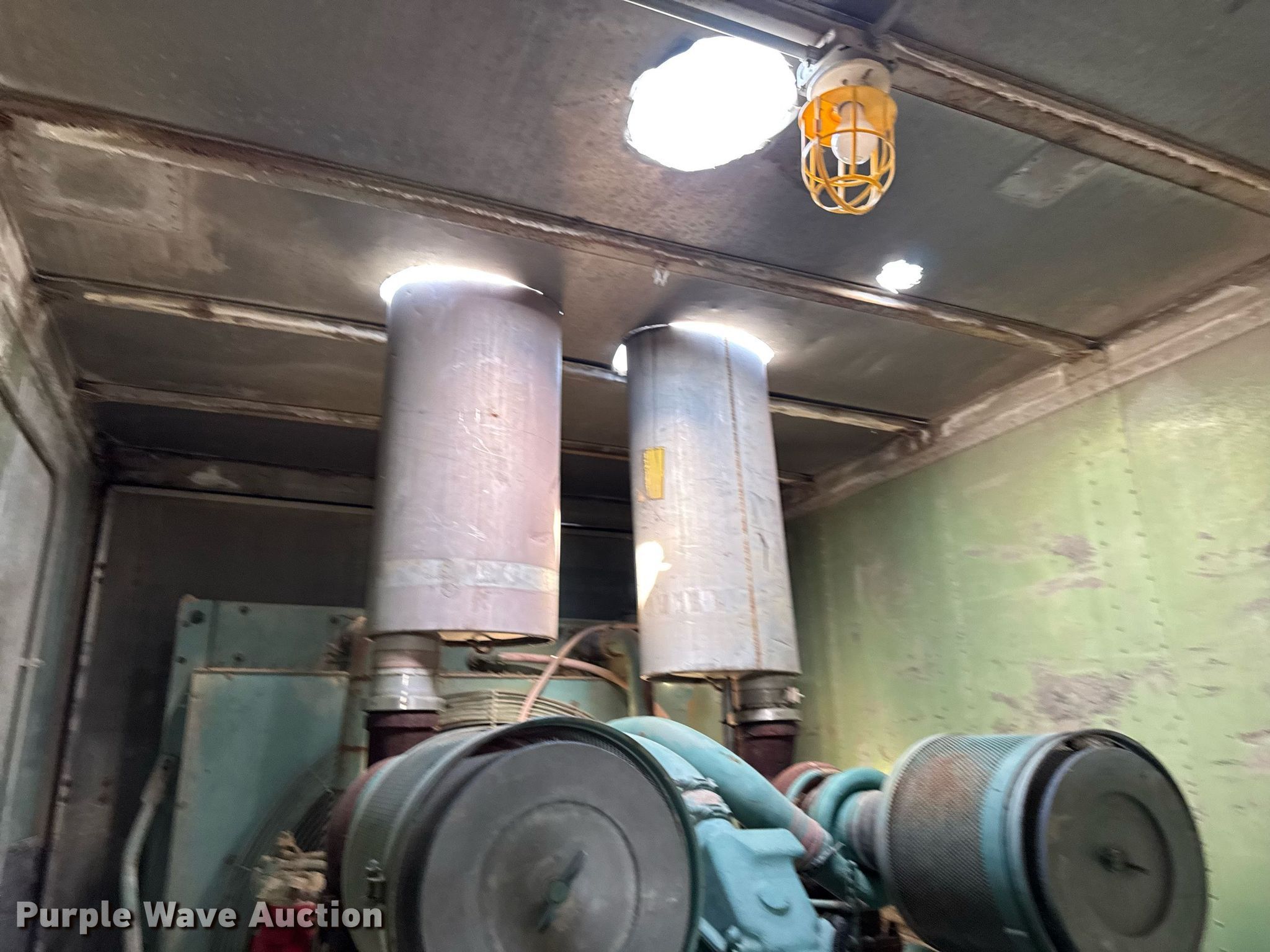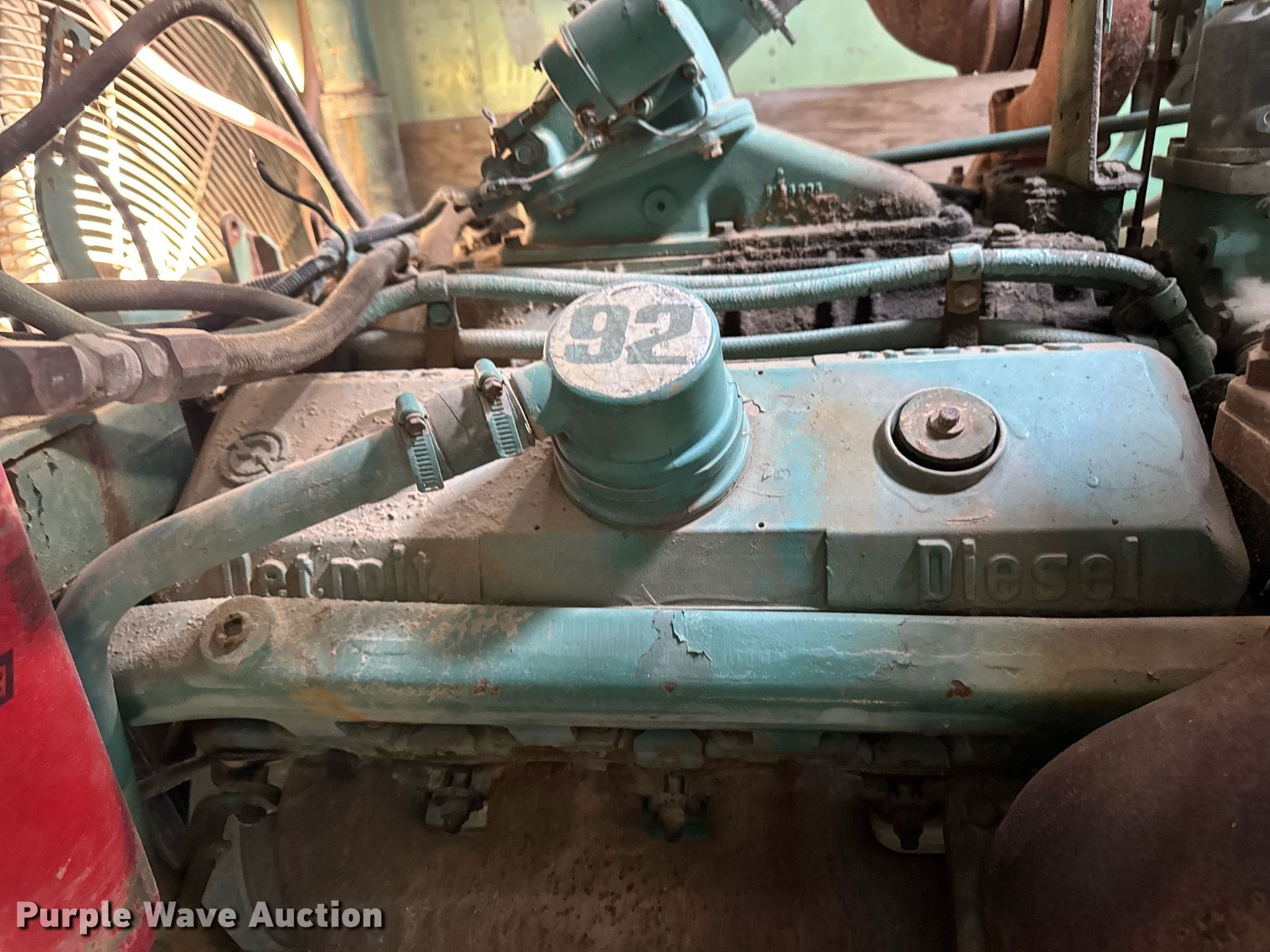 Marathon Electric generator trailer. Hours: 1,106 on meter, Serial: 109242 E. Engine Detroit Diesel 81637305, Serial: 16VF005938, Cylinders: 16, Fuel type: Diesel. Features Generator kVA: 750, kW: 600, Phase: Three, Electric start, Fuel tank. 1974 Gindy Manufacturing ES2S400A61 trailer 40' L x 96" W, Suspension: Spring, Brakes: Air, Axles: Tandem, Tire size: 10.00-20, GVWR: 66,000 lbs, GAWR: 19,040 lbs. Notes Alternator missing, Dead battery, Unknown operating condition. BMC Aggregates. Mason City, IA 50401