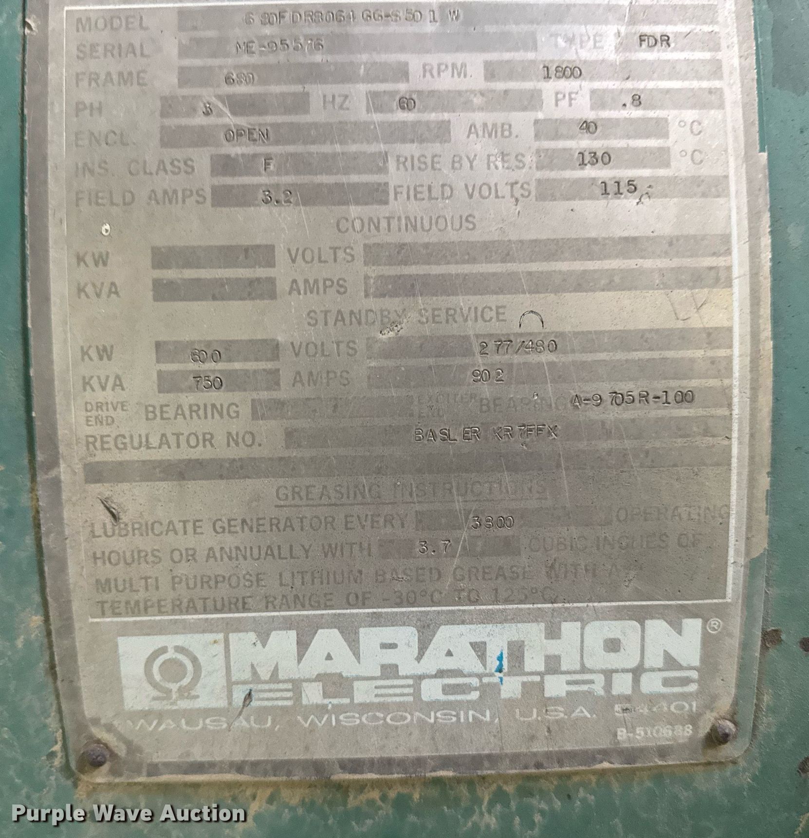 Purple Wave is selling a used Generator Set in Iowa. This item is a Marathon Electric generator trailer with the following: Hours: 1,106 on meter, Serial: 109242 E