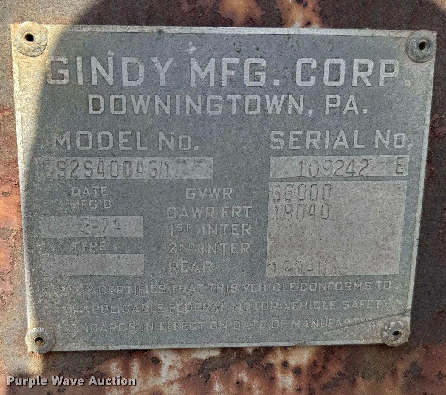 1974 Gindy Manufacturing ES2S400A61 trailer