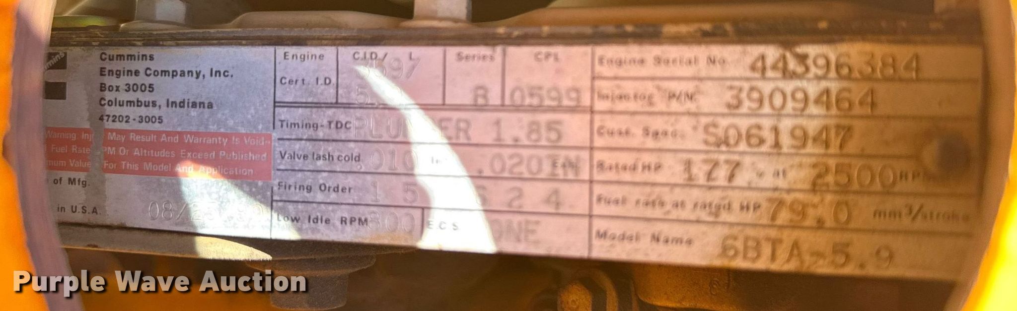 1990 Bandit wood chipper. Hours: 1,230 on meter, Serial: 003387. Engine Cummins, Displacement: 5.9L, Cylinders: 6, Fuel type: Diesel. Features Throat opening: 16" x 12". Trailer 16' L x 88" W, Suspension: Spring, Brakes: Electric, Axles: Single, Tire size: 12-16.5. This is worksite support equipment and will not come with a title. Transfer of ownership documentation will be a bill of sale. N.E. Finch Co.. Peoria, IL 61607