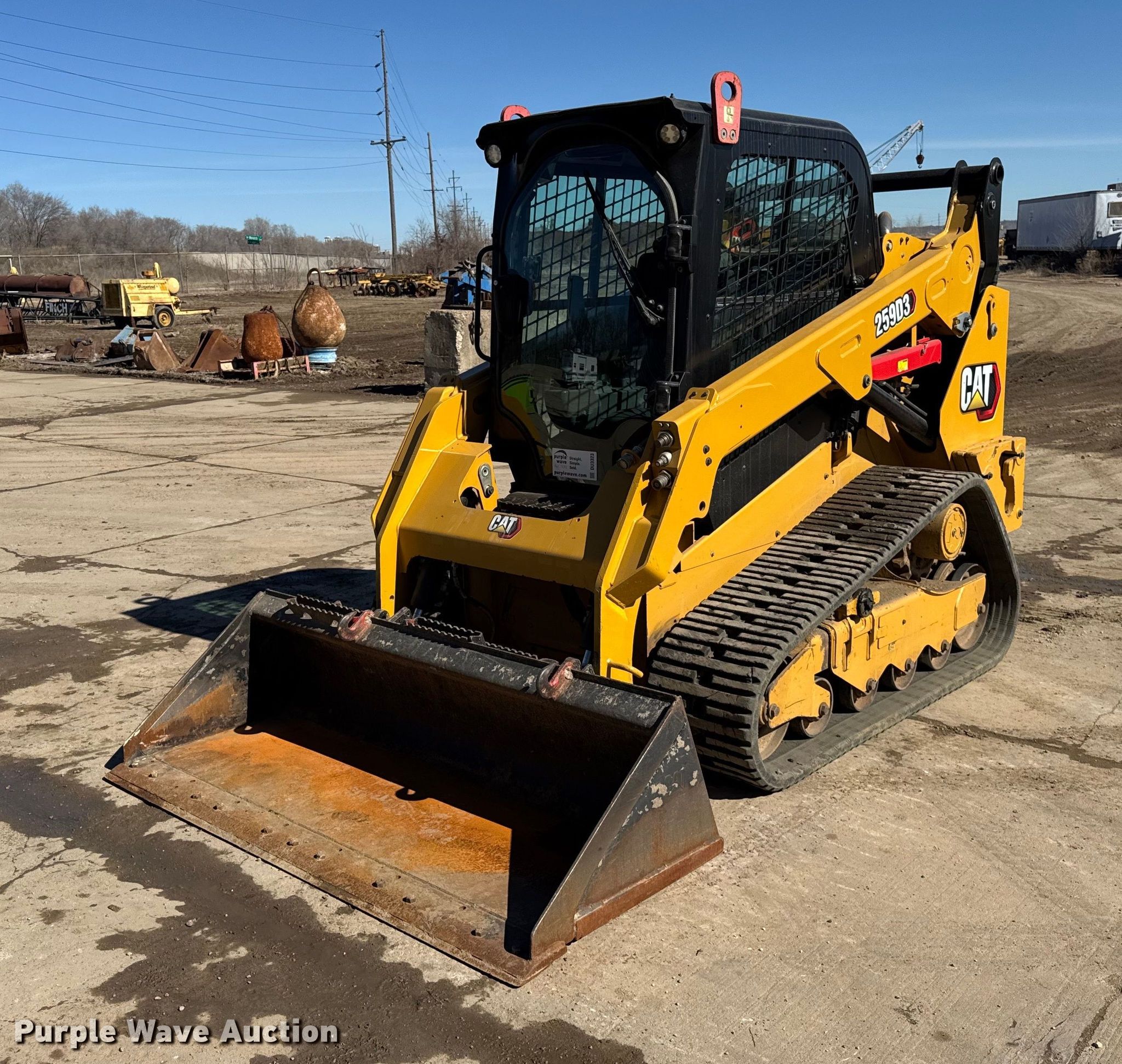 Purple Wave is selling a used Tracked Skid Steer Loader in Illinois. This item is a 2022 Caterpillar 259D3 tracked skid steer loader with the following: Hours: 1,921 on meter, Serial: CAT0259DLCW921186