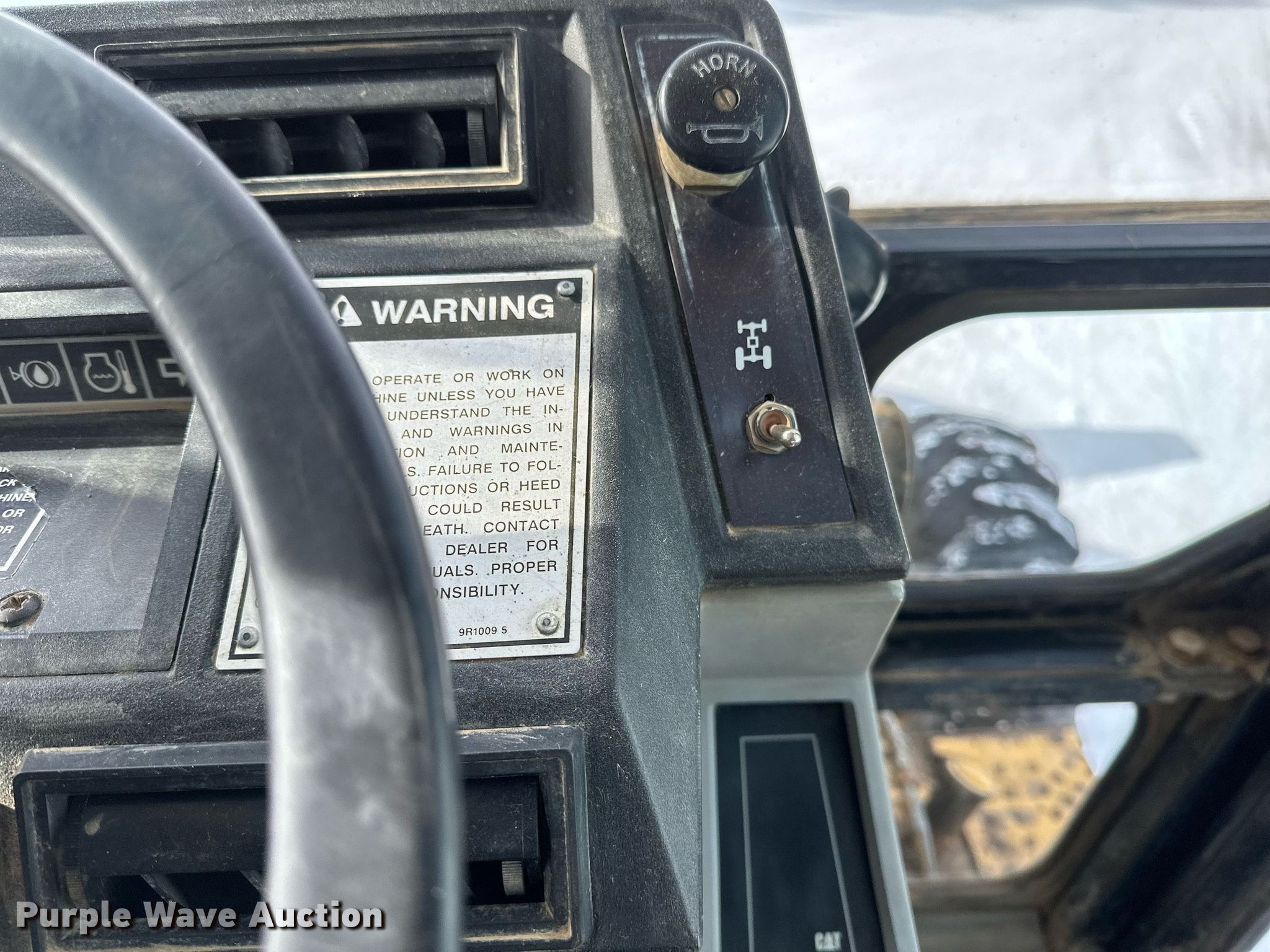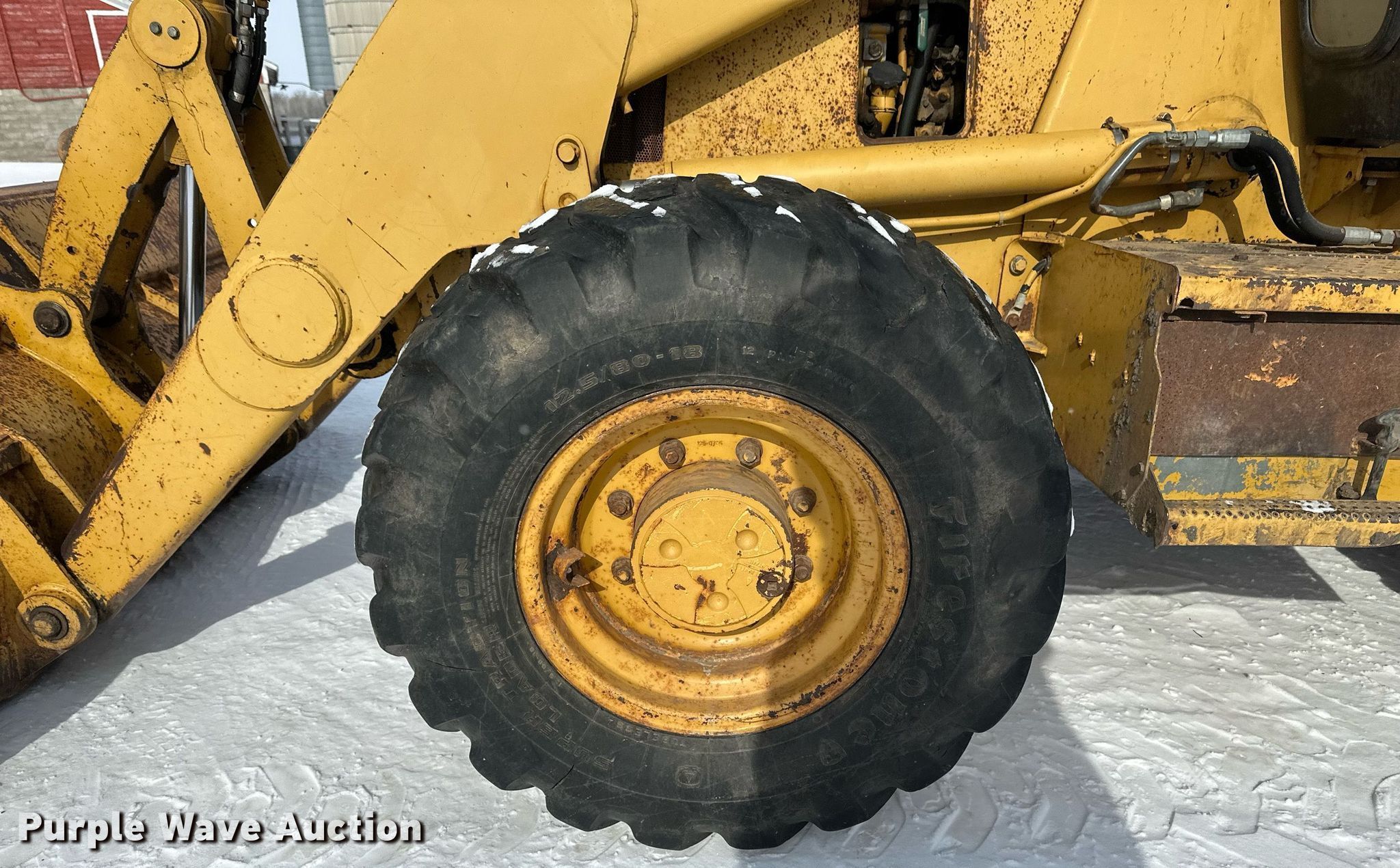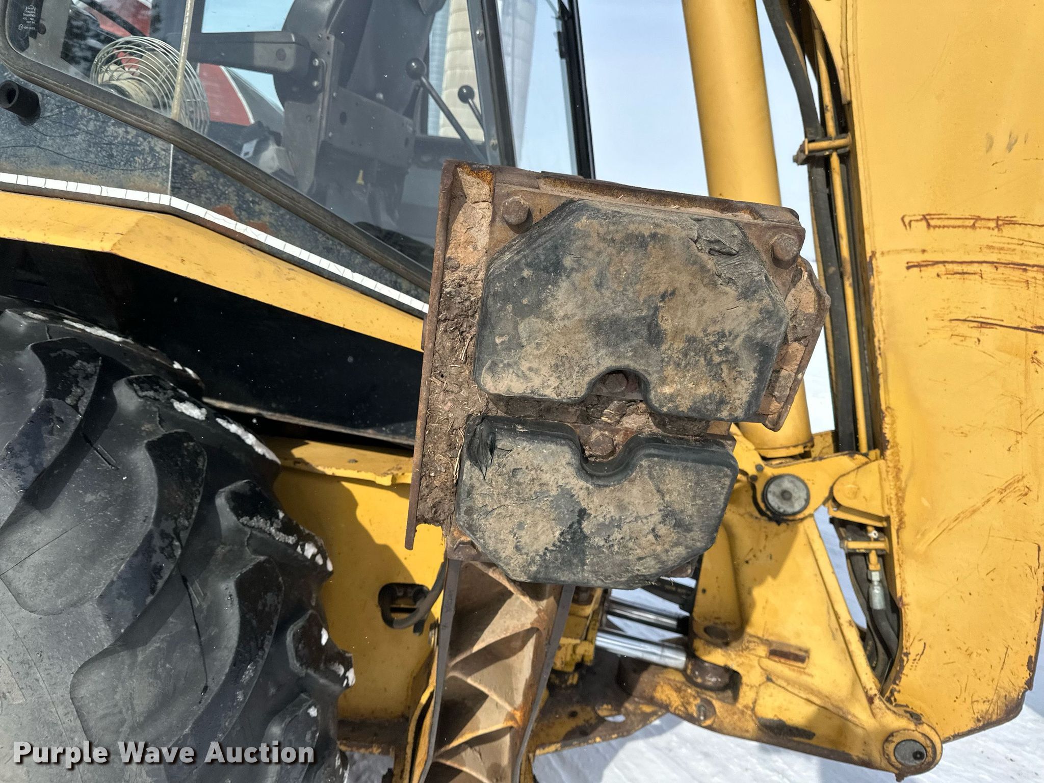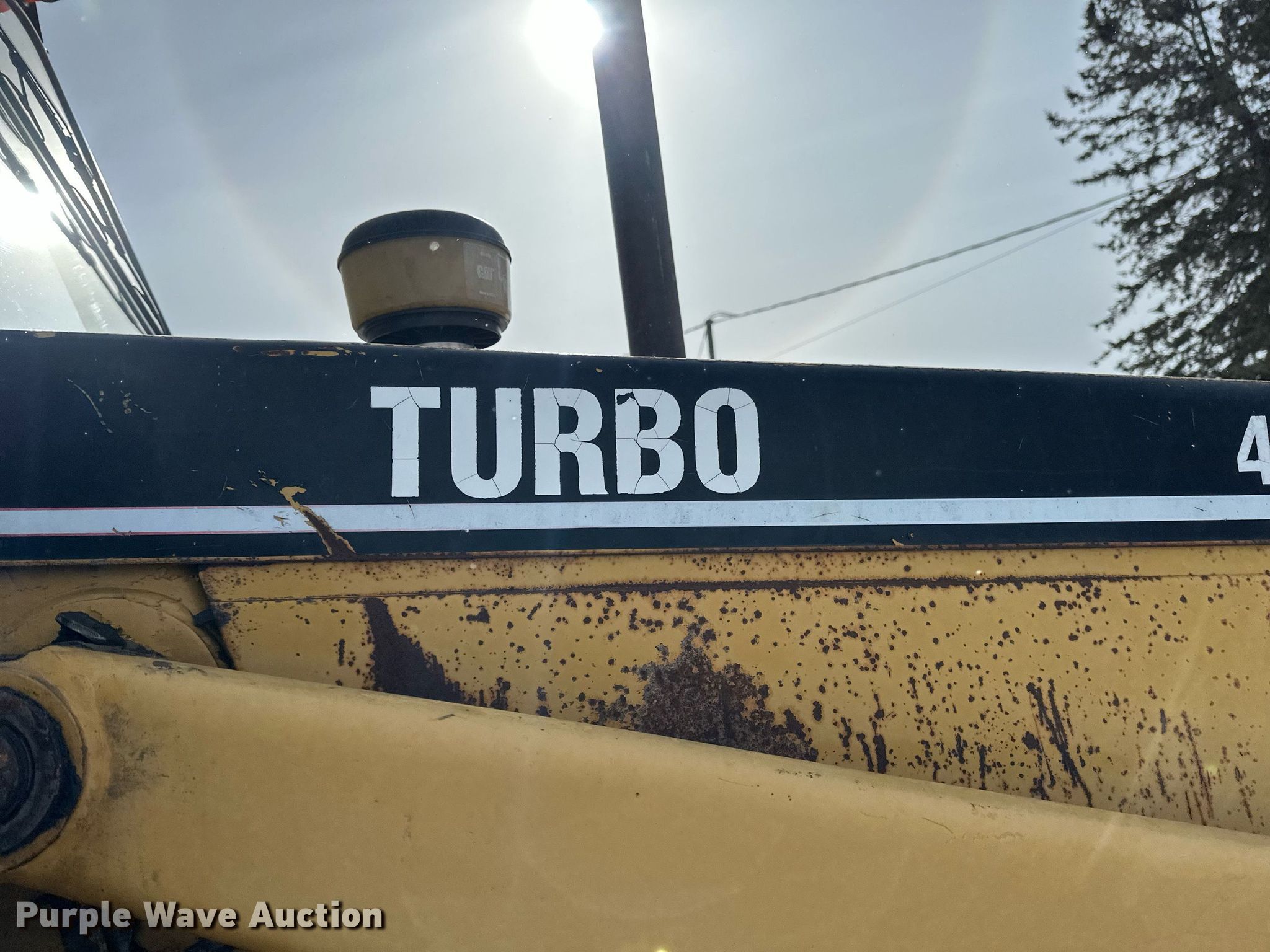 1994 Caterpillar 426B backhoe. Hours: 11,052 on meter, Serial: 5YJ01506. Engine Caterpillar, Cylinders: 4, Fuel type: Diesel. Transmission Shuttle shift, 4F - 4R. Chassis Four wheel drive, Differential lock. Operators station Enclosed cab, Heat, Backhoe controls: Wobble stick / two stick. Features Loader Bucket Width: 86", Cutting edge: Bolt-on, Forks Length: 46", Backhoe Extendable stick, Bucket Width: 30", Cutting edge: Weld-on, Teeth: 5.. Tires Front: 12.5/80-18, Rear: 19.5L-24. Kern & Tabery, Inc.. Sebeka, MN 56477